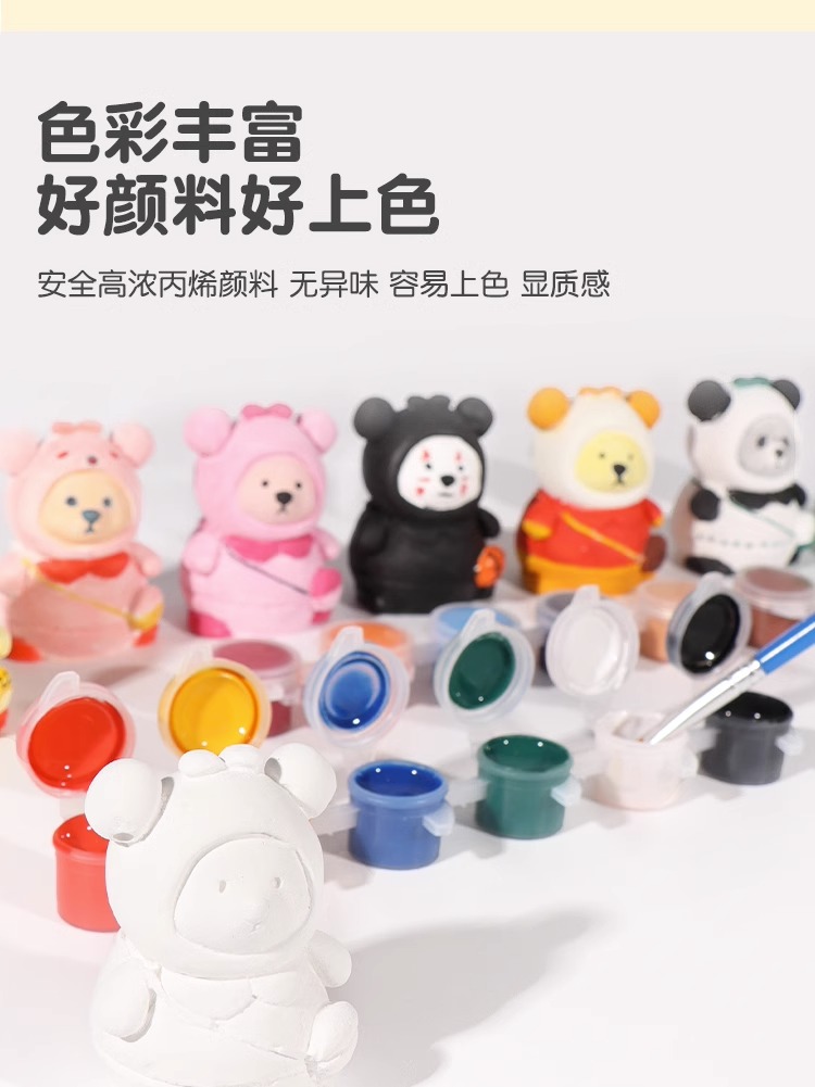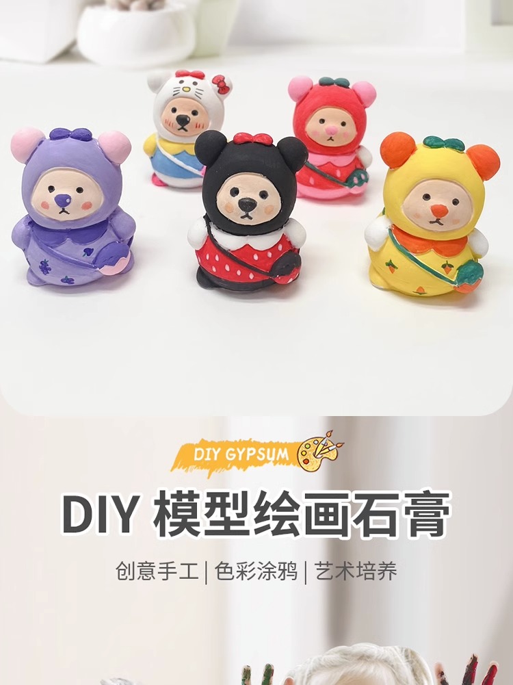 开学季福利!涂色小熊石膏娃娃手工涂鸦画画彩绘背包熊公仔儿童玩具男女孩