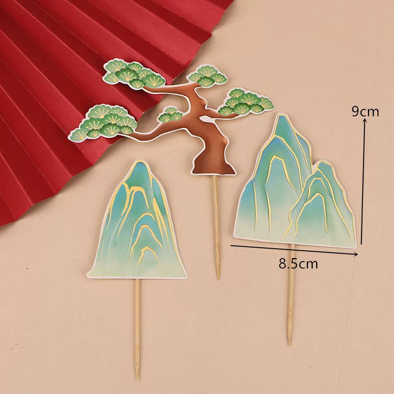 3支装 松树南山竹签插件 纸质插卡 松树1山2 祝寿生日装饰插件
