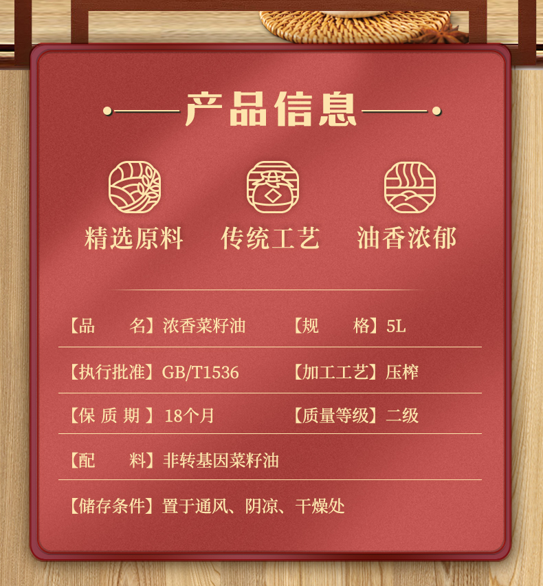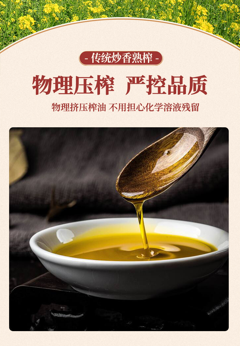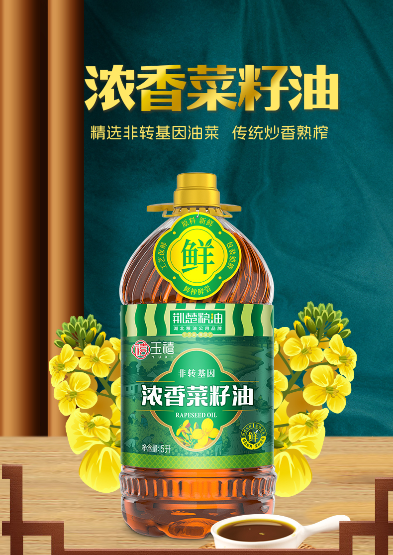 【严选】荆楚好粮油玉禧 鲜榨菜籽油5升煎炒烹炸好味道食用油 浓香菜籽油5L/桶(厂家直发)