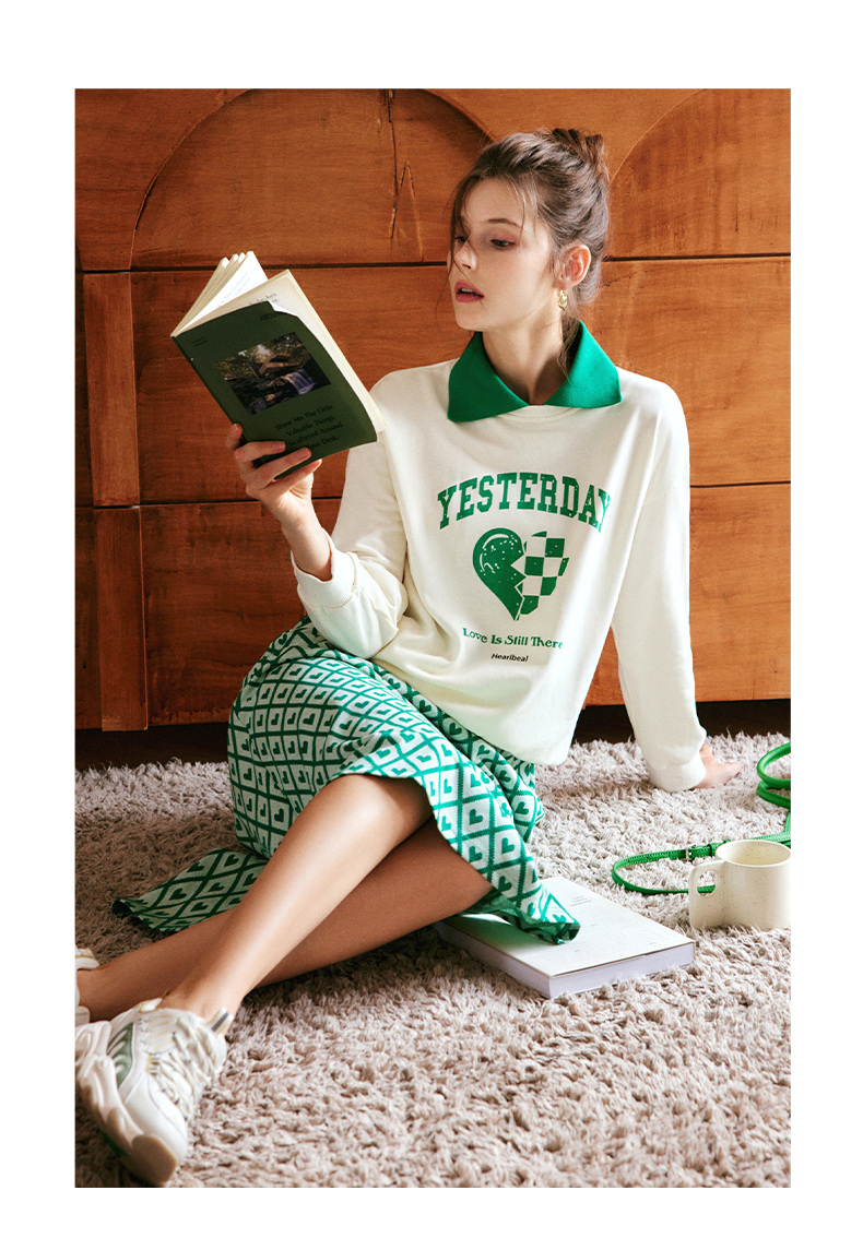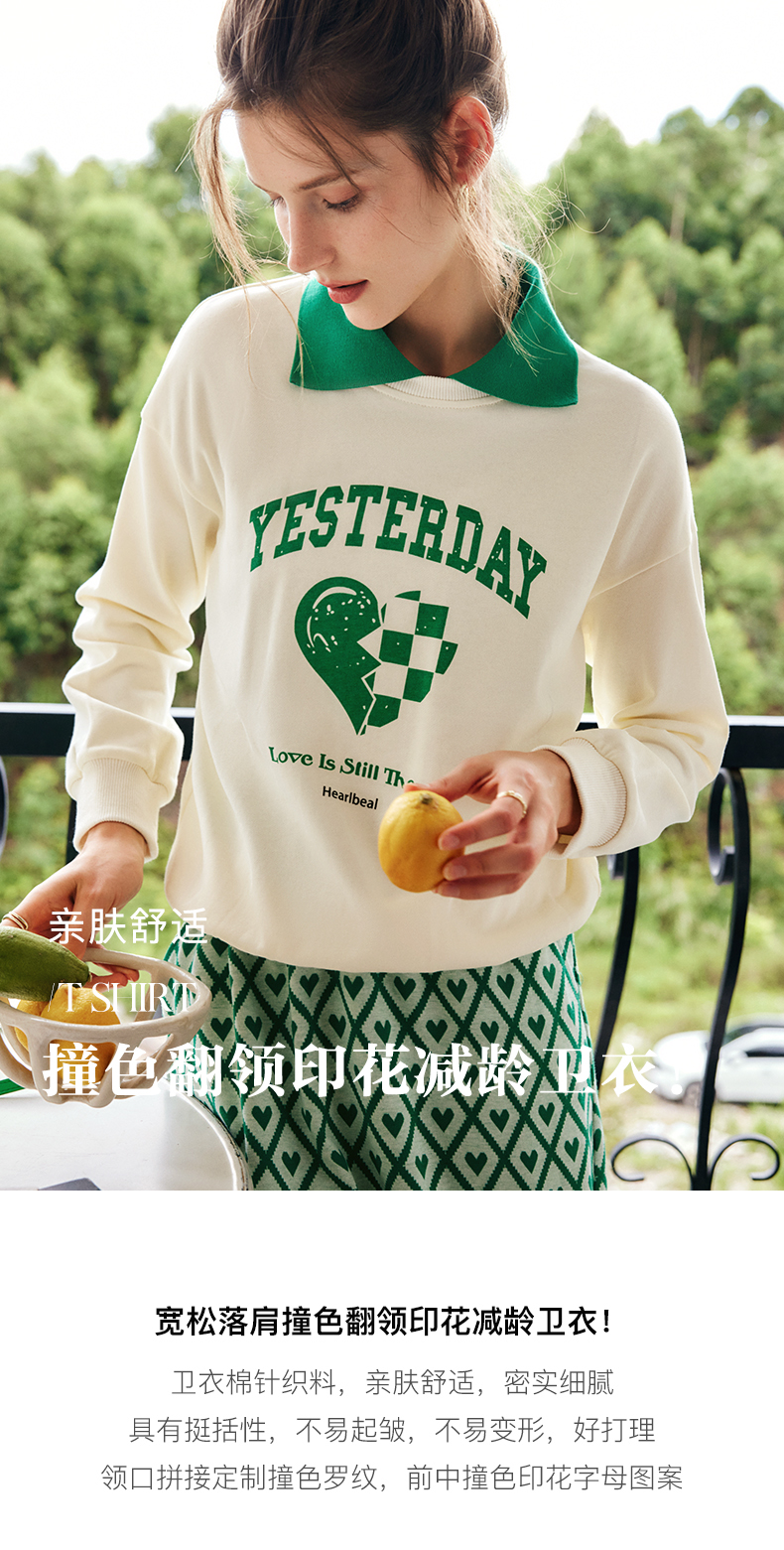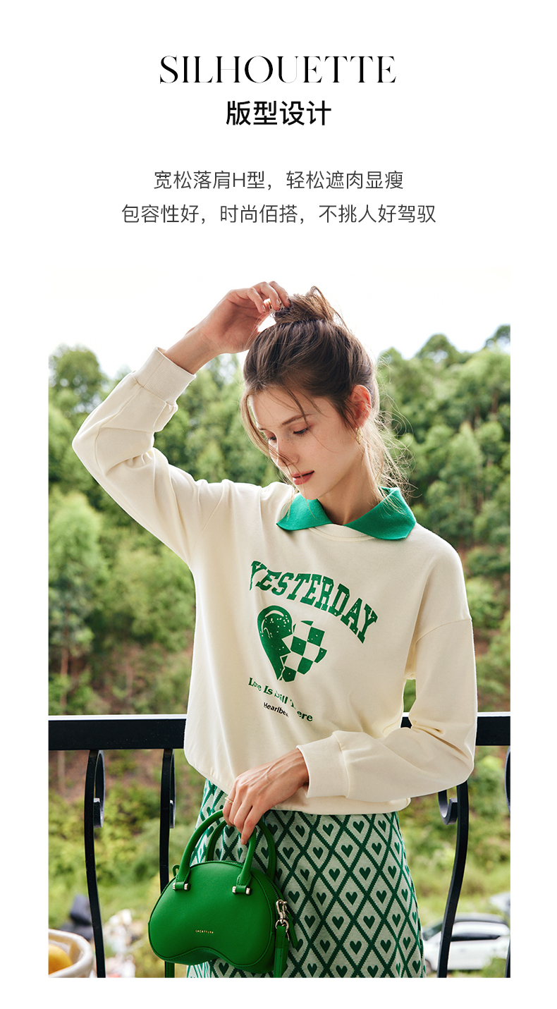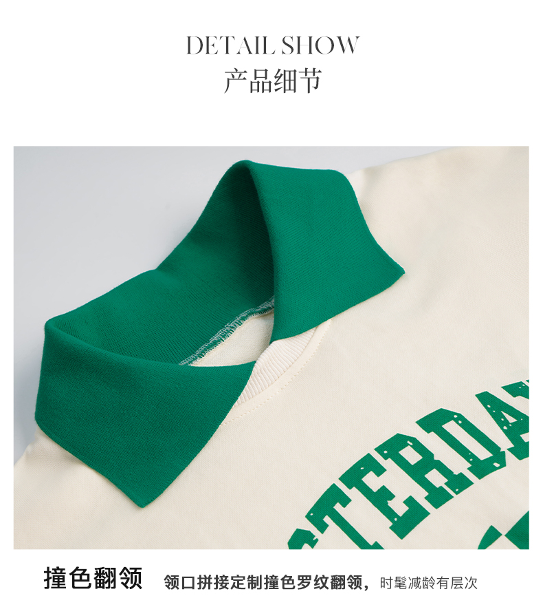 OLrain法式杏色卫衣女早秋2022年新款宽松百搭撞色翻领polo领上衣