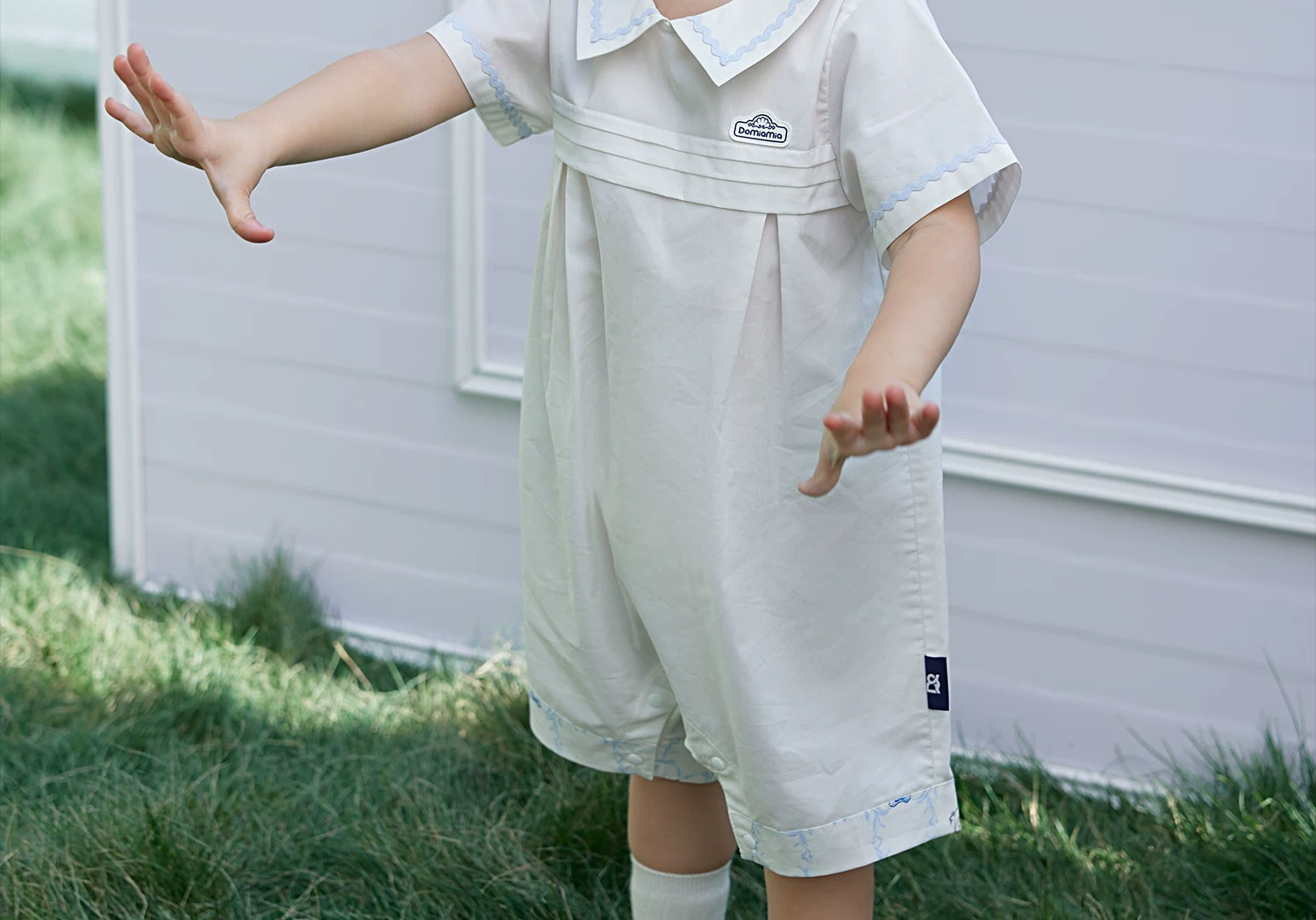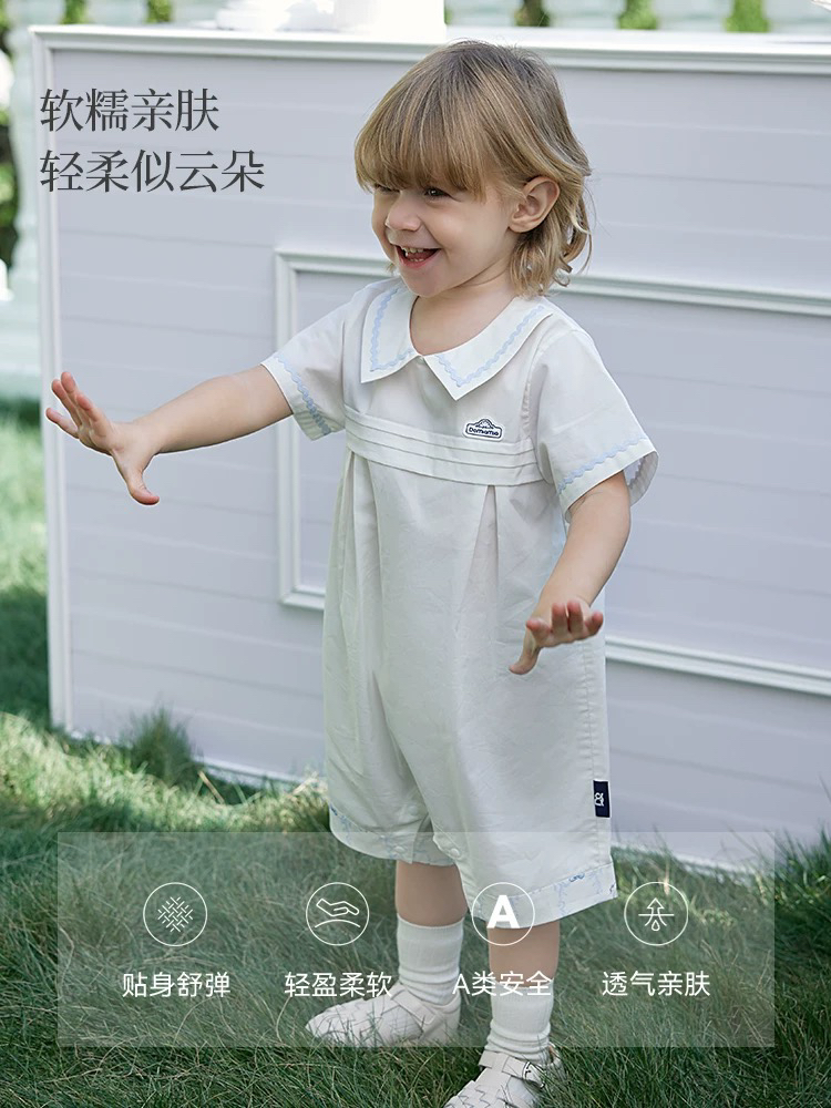 Domiamia 婴幼儿梭织短袖翻领爬服 男女宝宝春夏百搭薄款连体衣