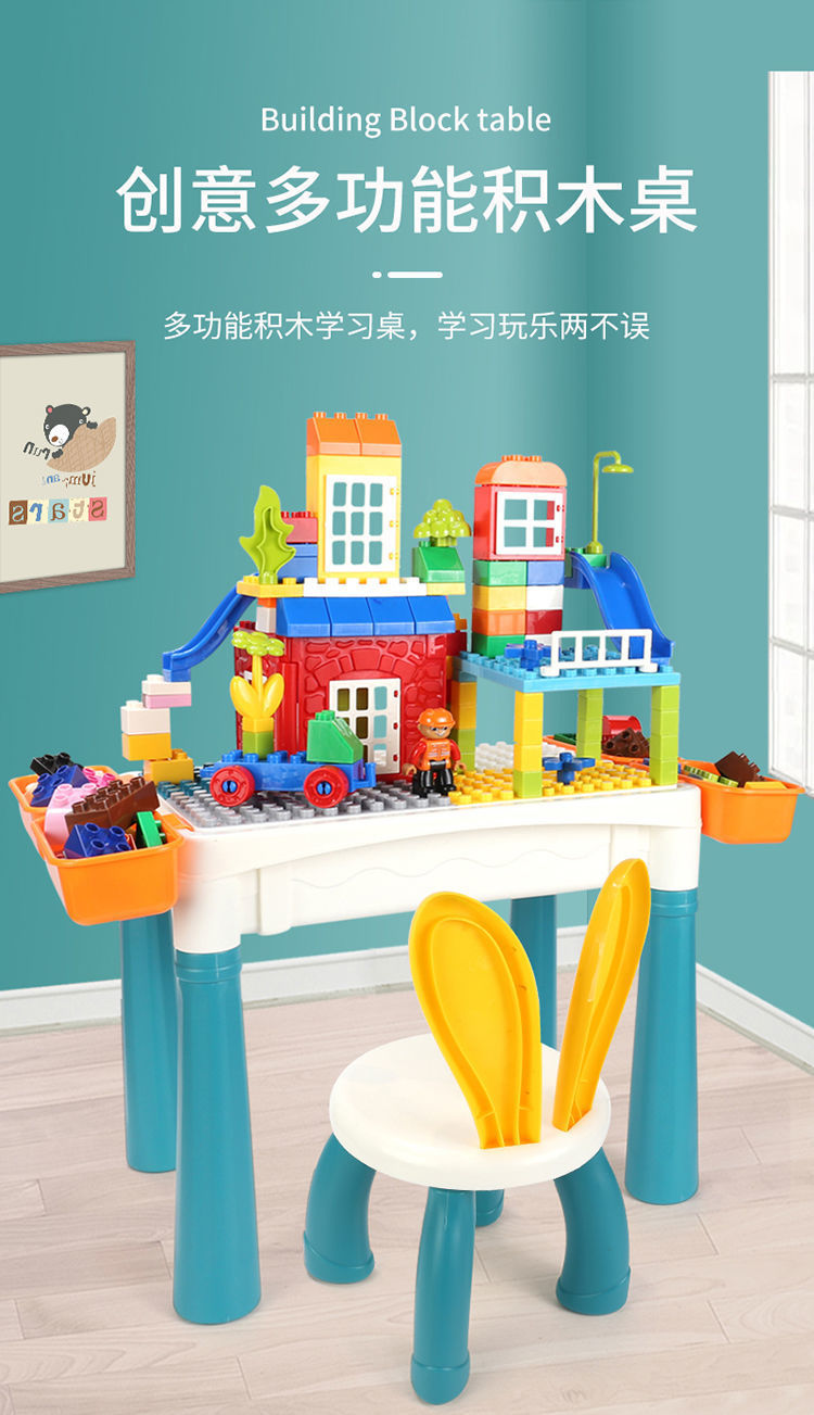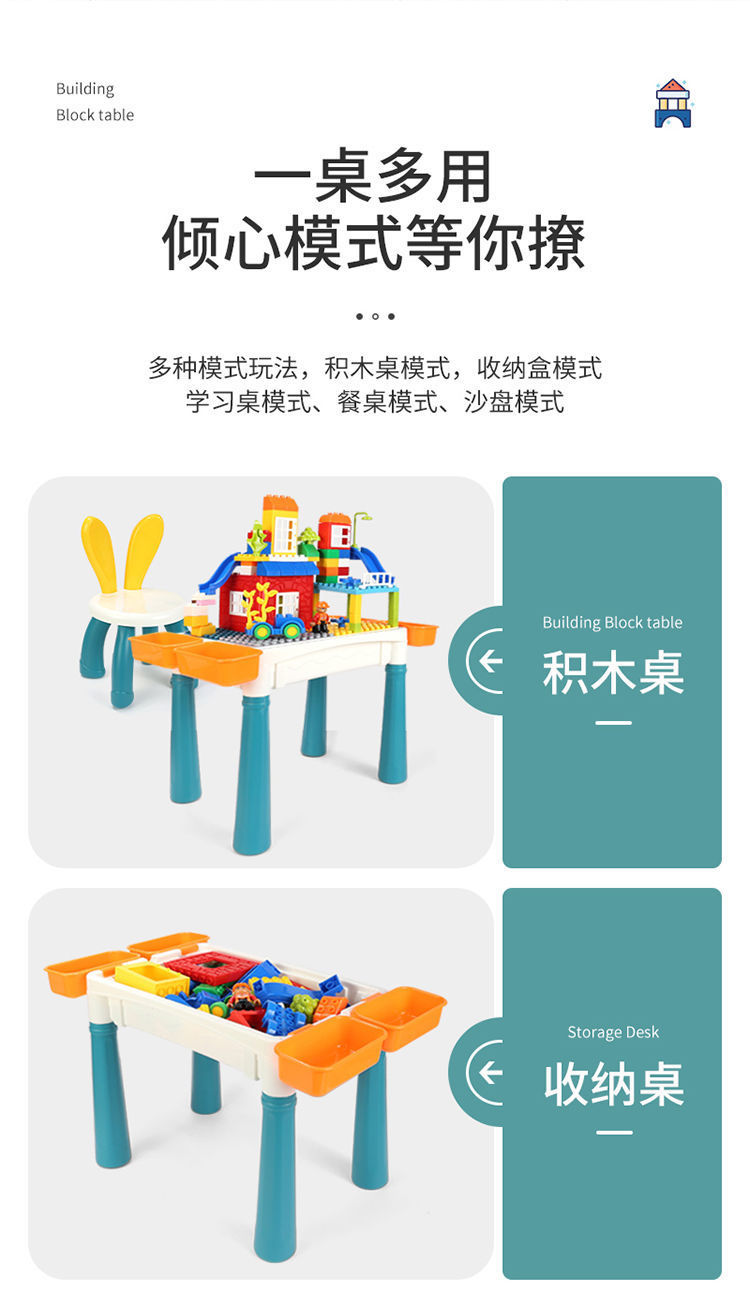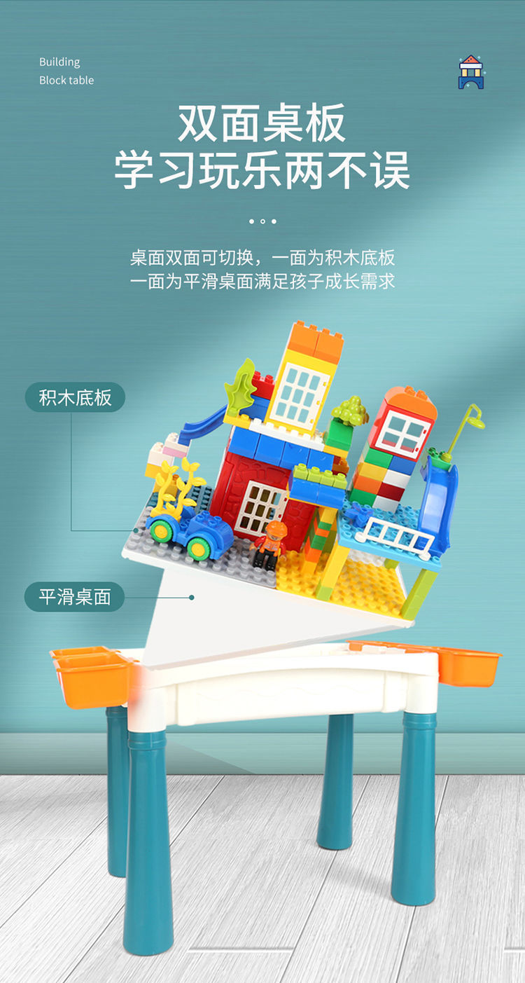 【低至¥42.9】儿童多功能积木桌大颗粒兼容乐高拼装益智男女孩学习游戏桌玩具台