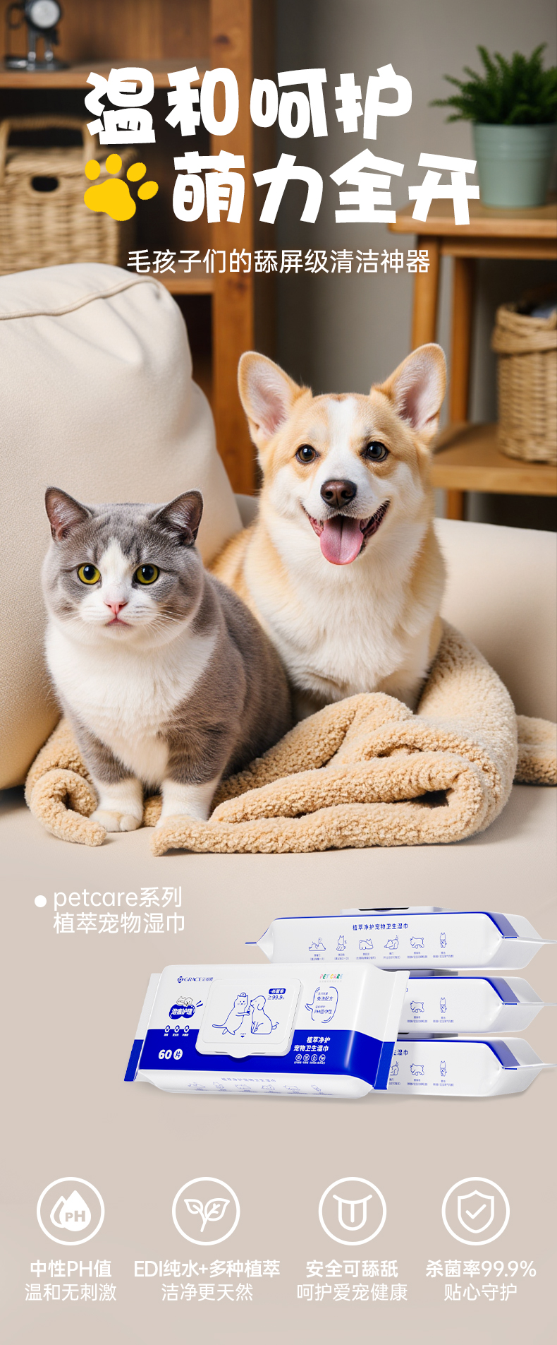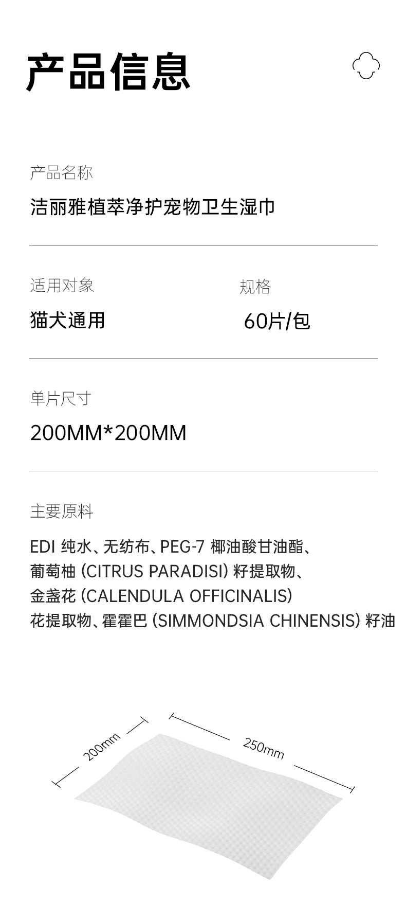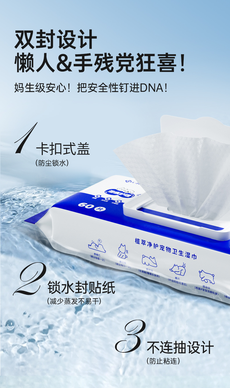 洁丽雅宠物湿巾猫咪狗狗专用湿纸巾擦脚清洁免洗澡猫用纯水抑菌