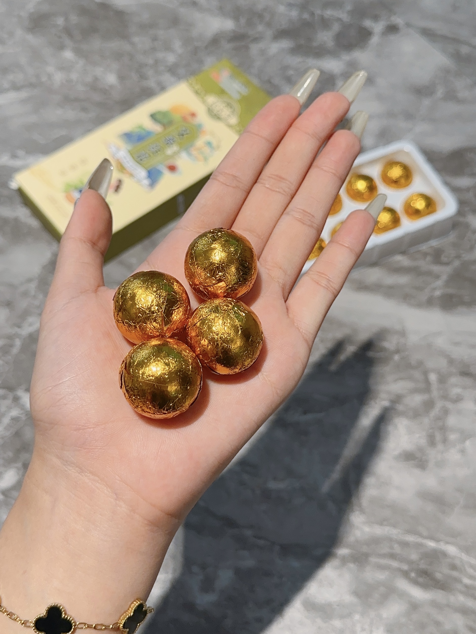 打开外包装,就能看到十二颗闪亮的金色小球~