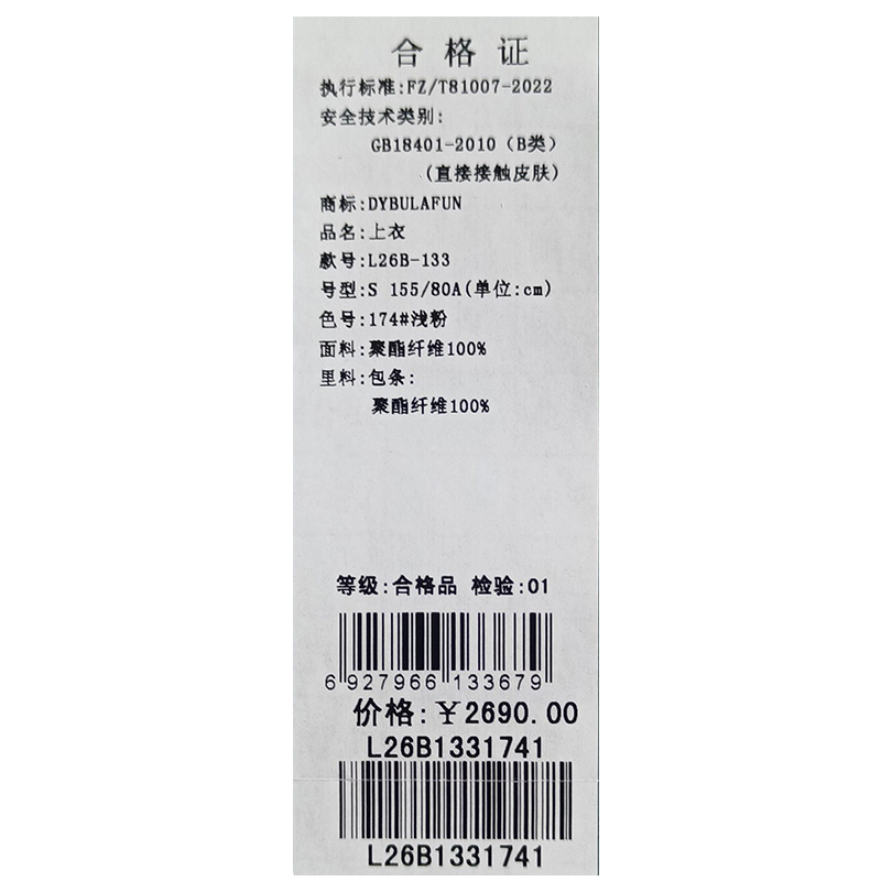 戴布拉芬上衣L26B133