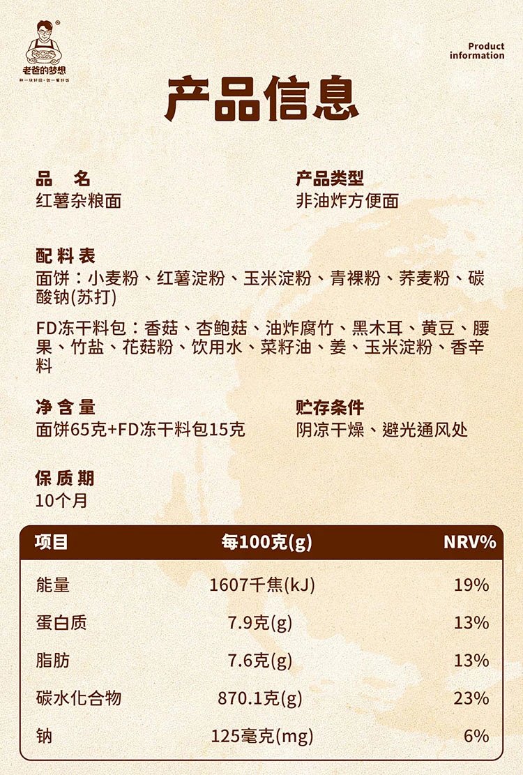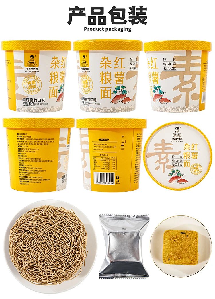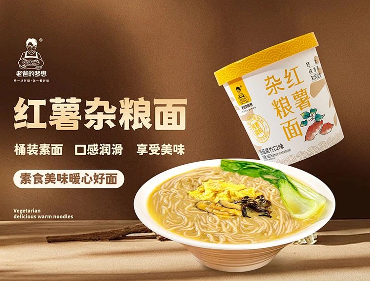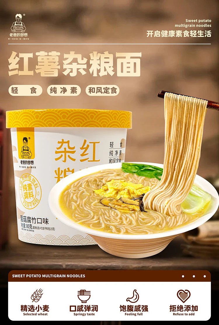 红薯杂粮面80g*4桶 菌菇腐竹口味 非油炸方便面 简单食材用心制造 营养又好吃 老爸的梦想[漳州仓]
