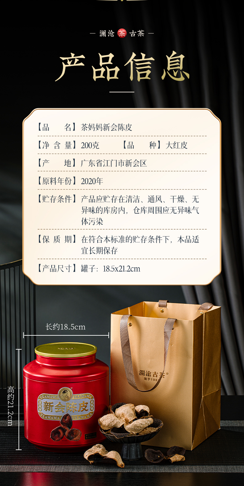 澜沧古茶2020年茶妈妈正宗新会陈皮4年陈礼盒罐装200g