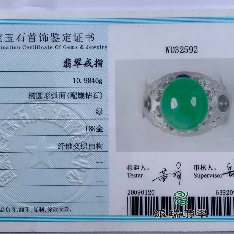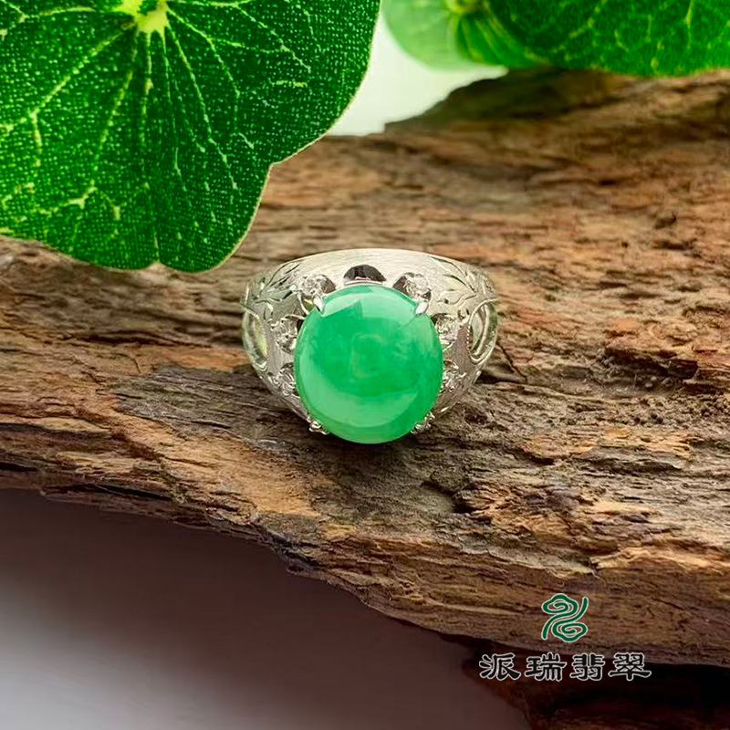 派瑞翡翠 18k金翡翠戒指 糯种 满绿