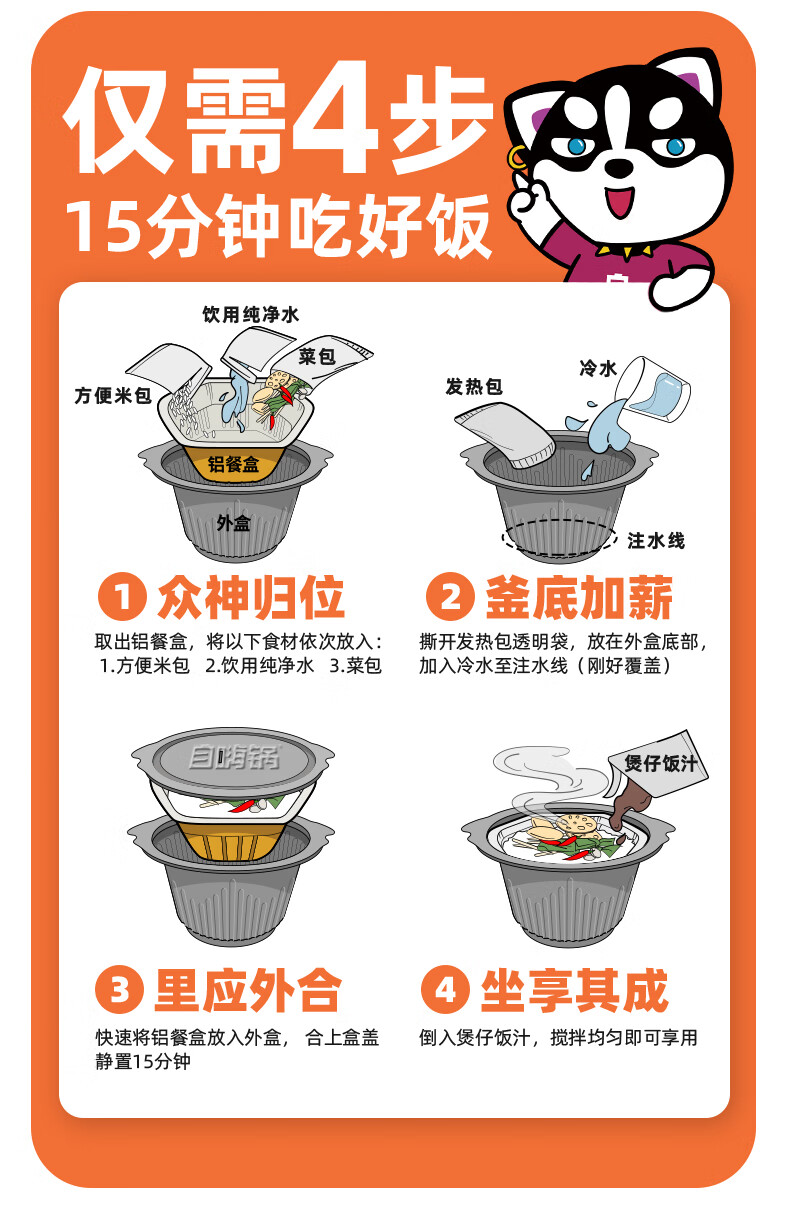 【分仓直发包邮】自嗨锅自热米饭速食广式香肠263g*4盒
