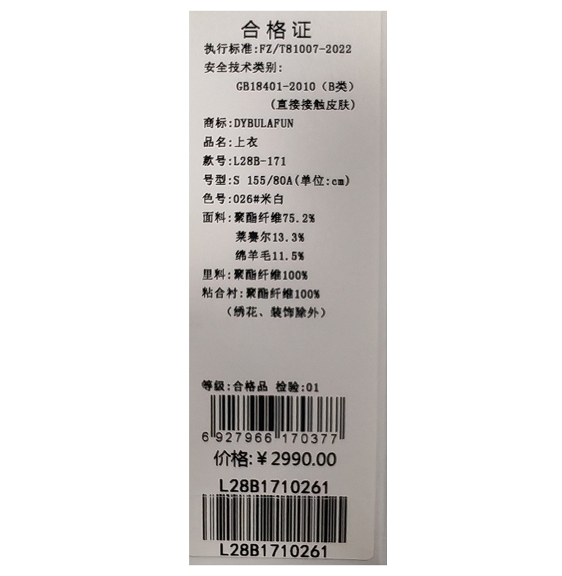 戴布拉芬上衣L28B171