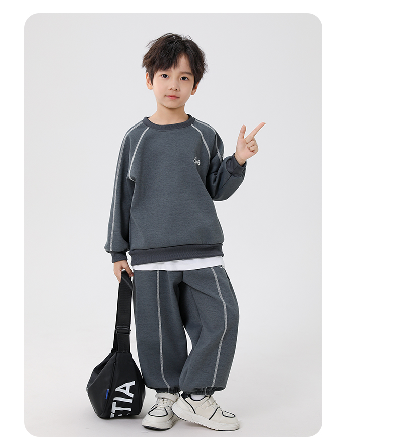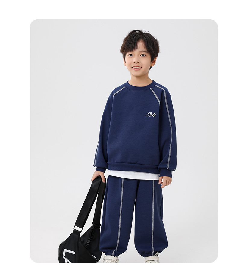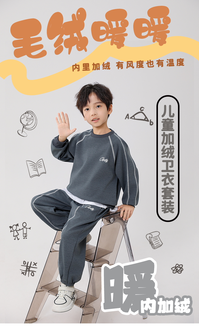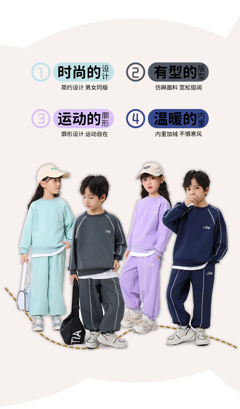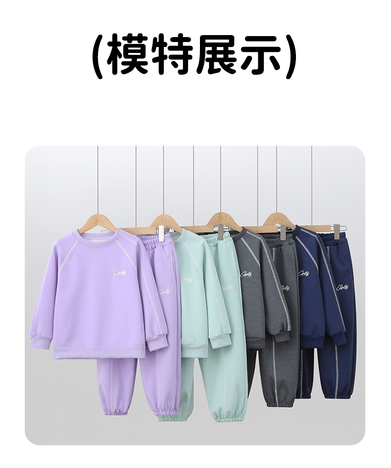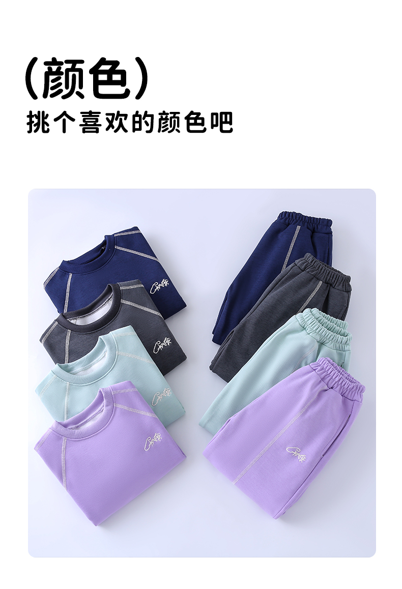 *【A类品质,暖糯舒适】【加绒保暖,户外运动】秋冬新款儿童四色加绒卫衣套装中大男女童运动休闲卫衣长裤加绒套装