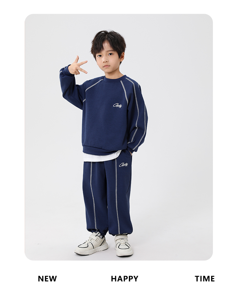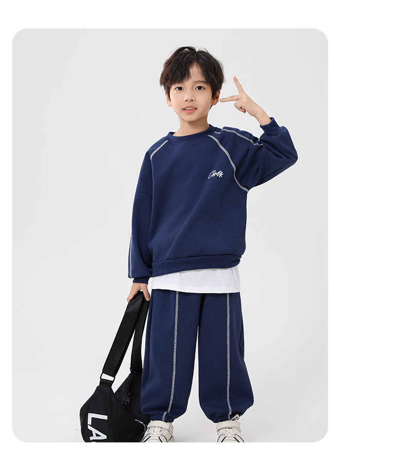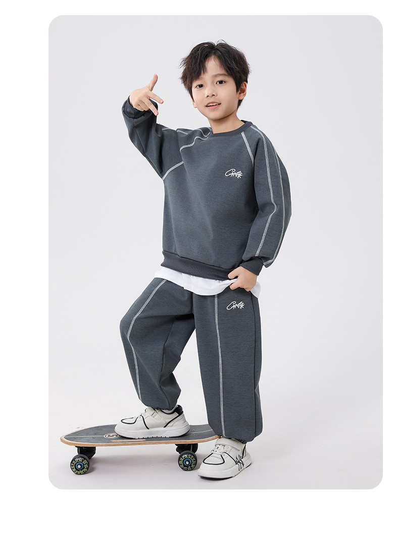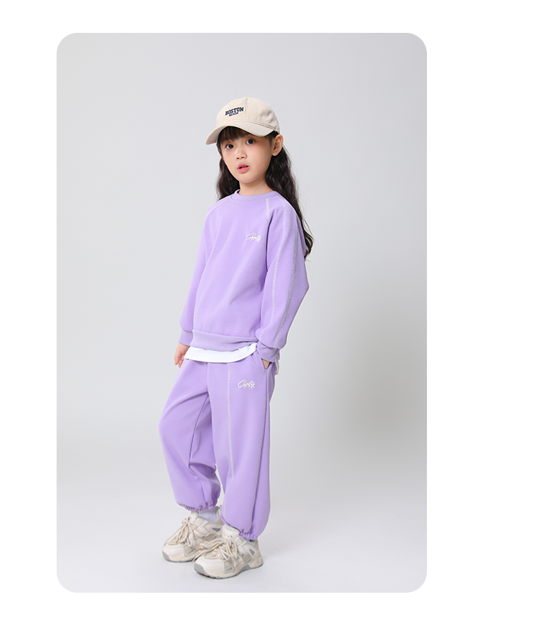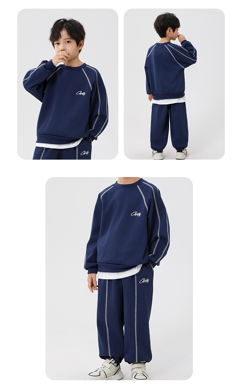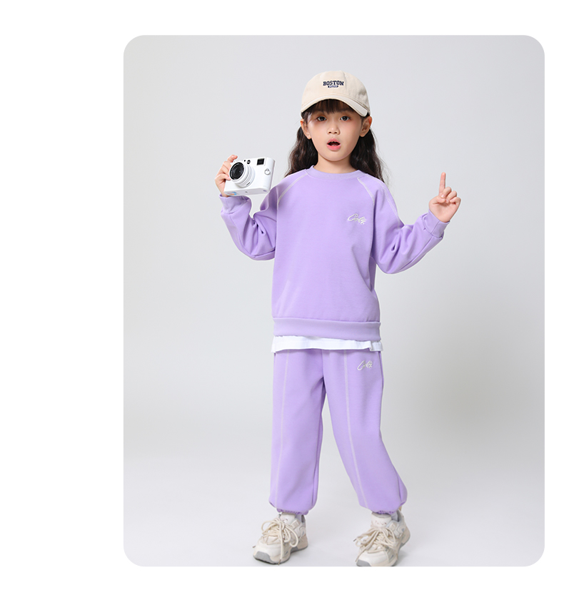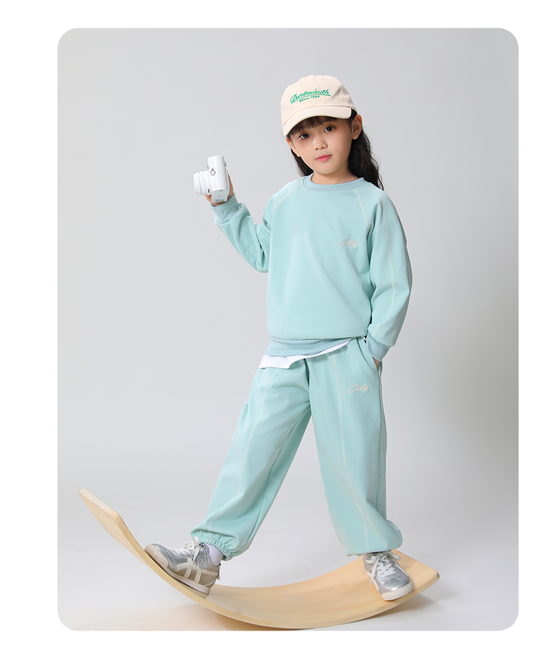 *【A类品质,暖糯舒适】【加绒保暖,户外运动】秋冬新款儿童四色加绒卫衣套装中大男女童运动休闲卫衣长裤加绒套装