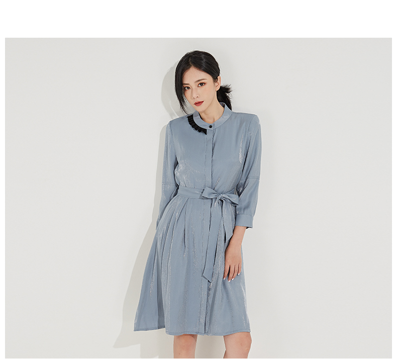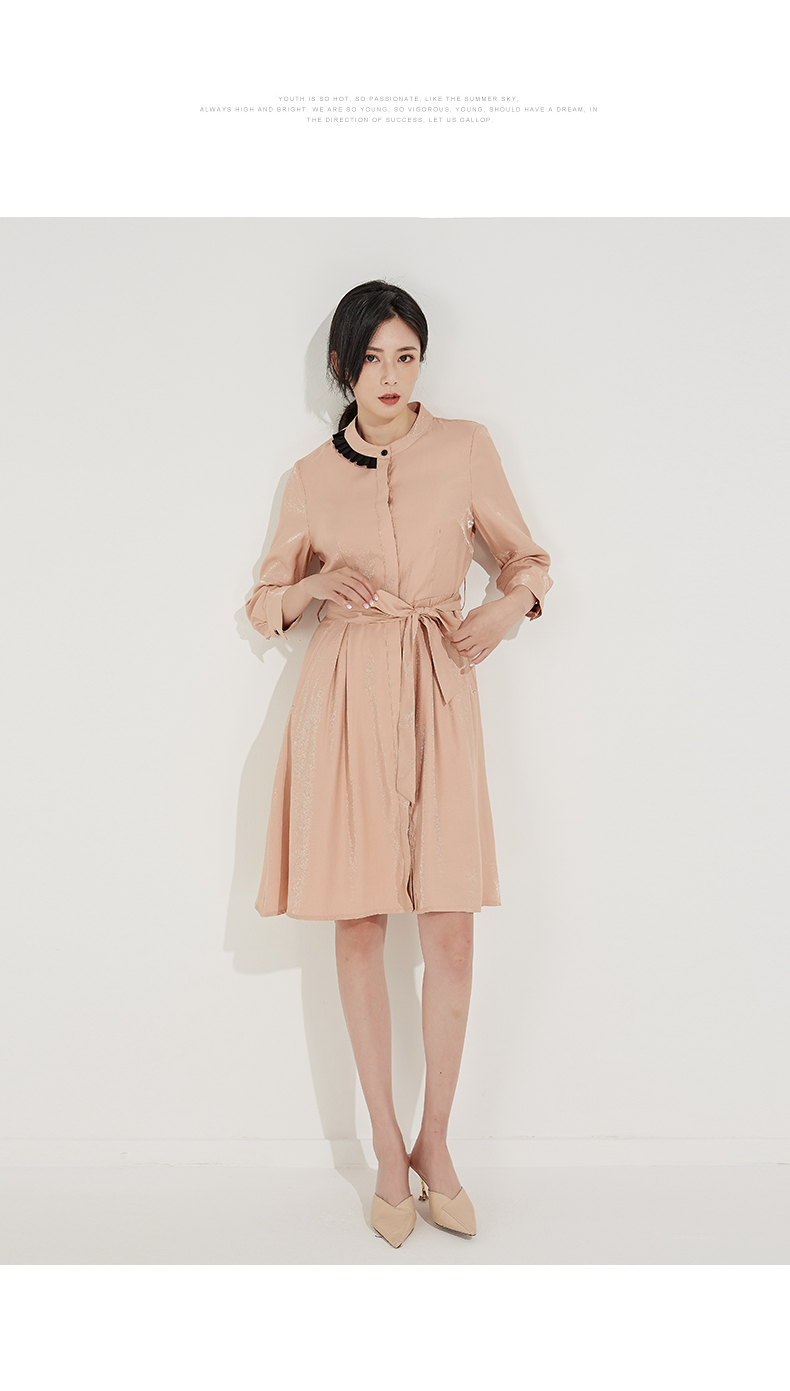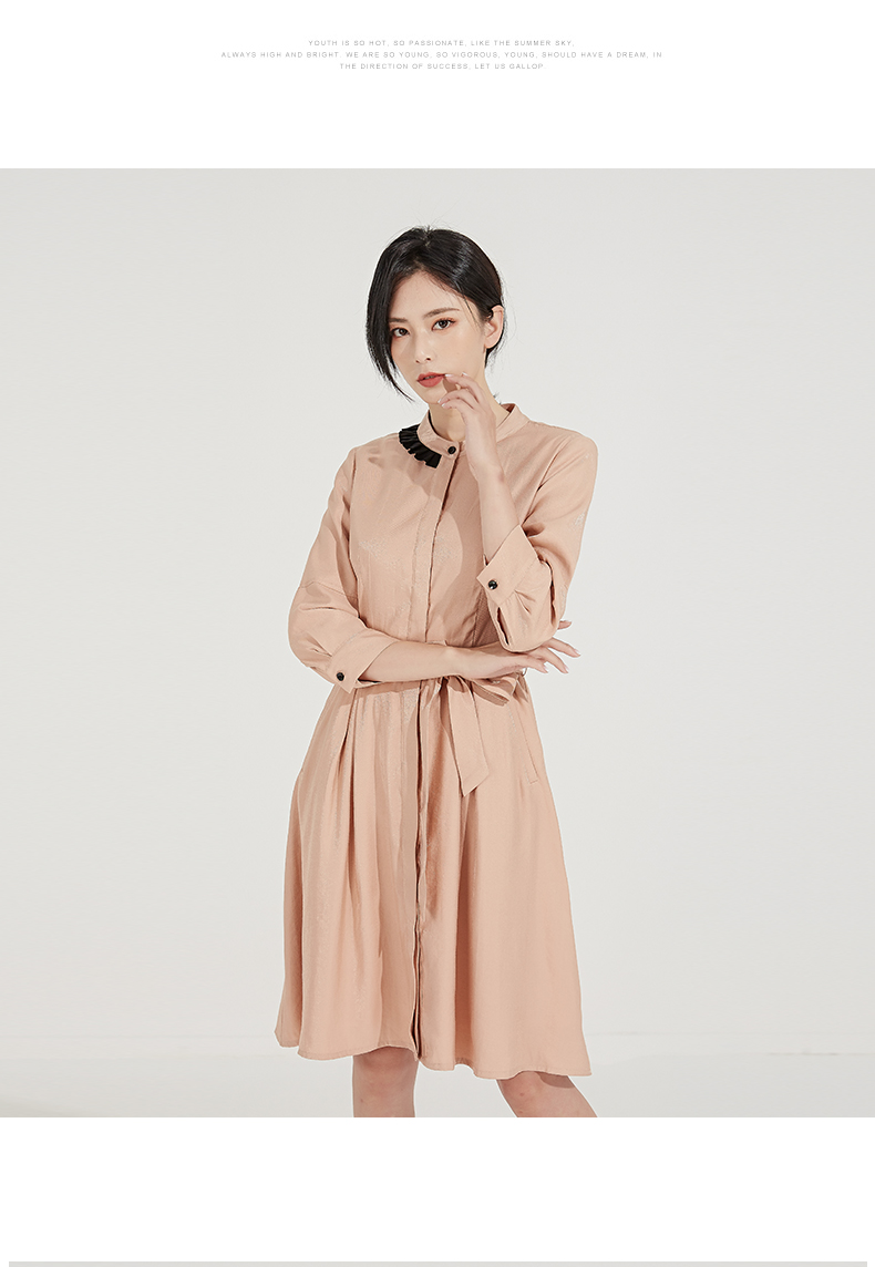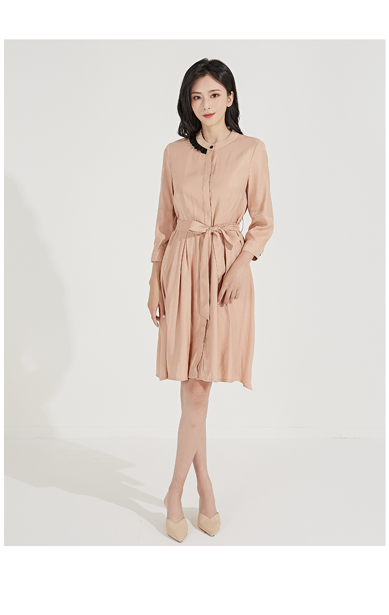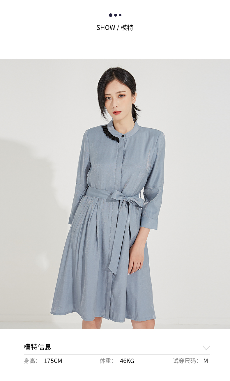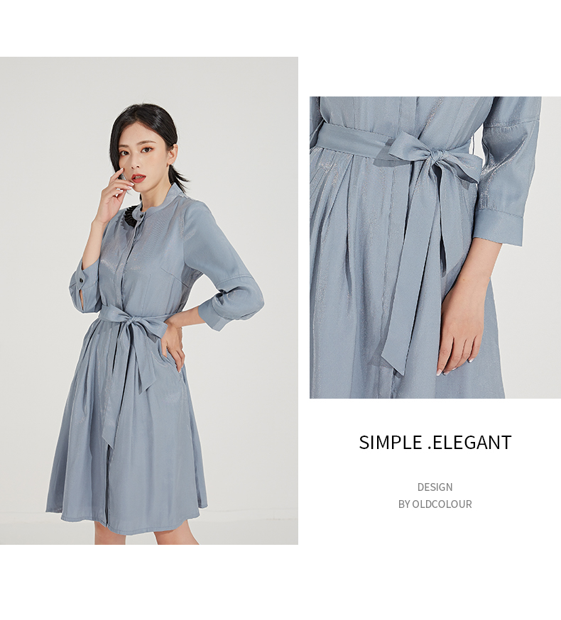 oldcolour春秋季新款圆领收腰收腰显瘦时尚纯色连衣裙GL32103820J