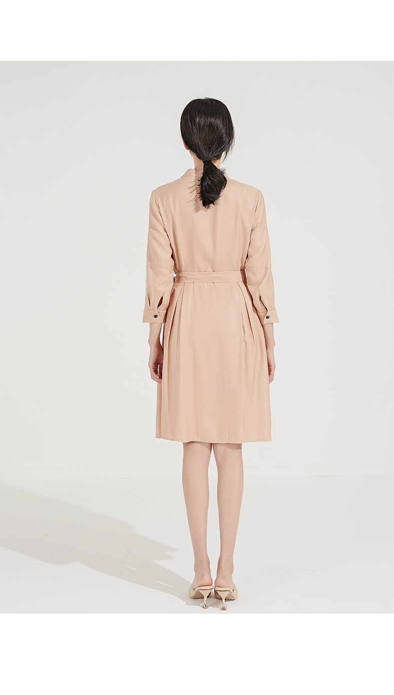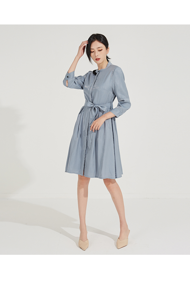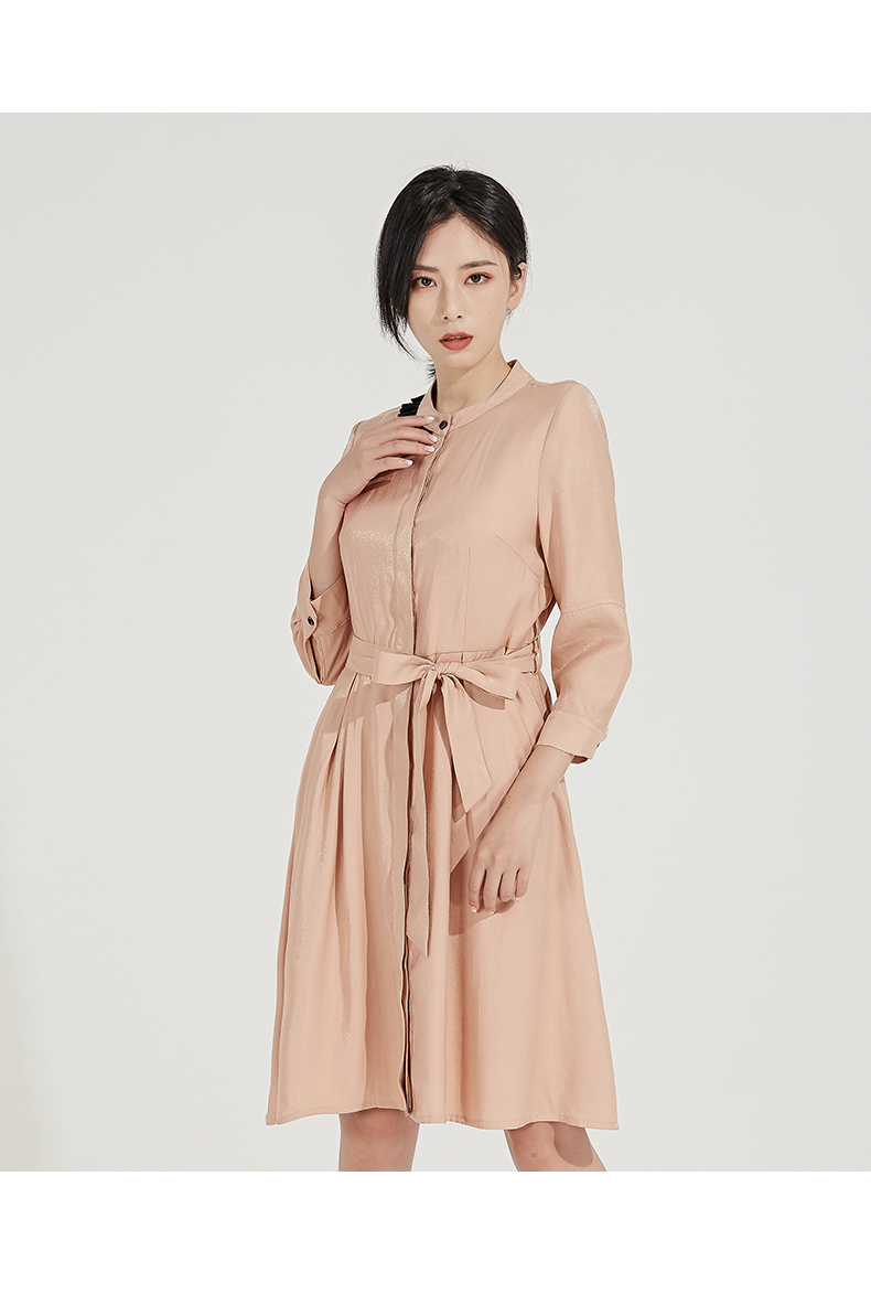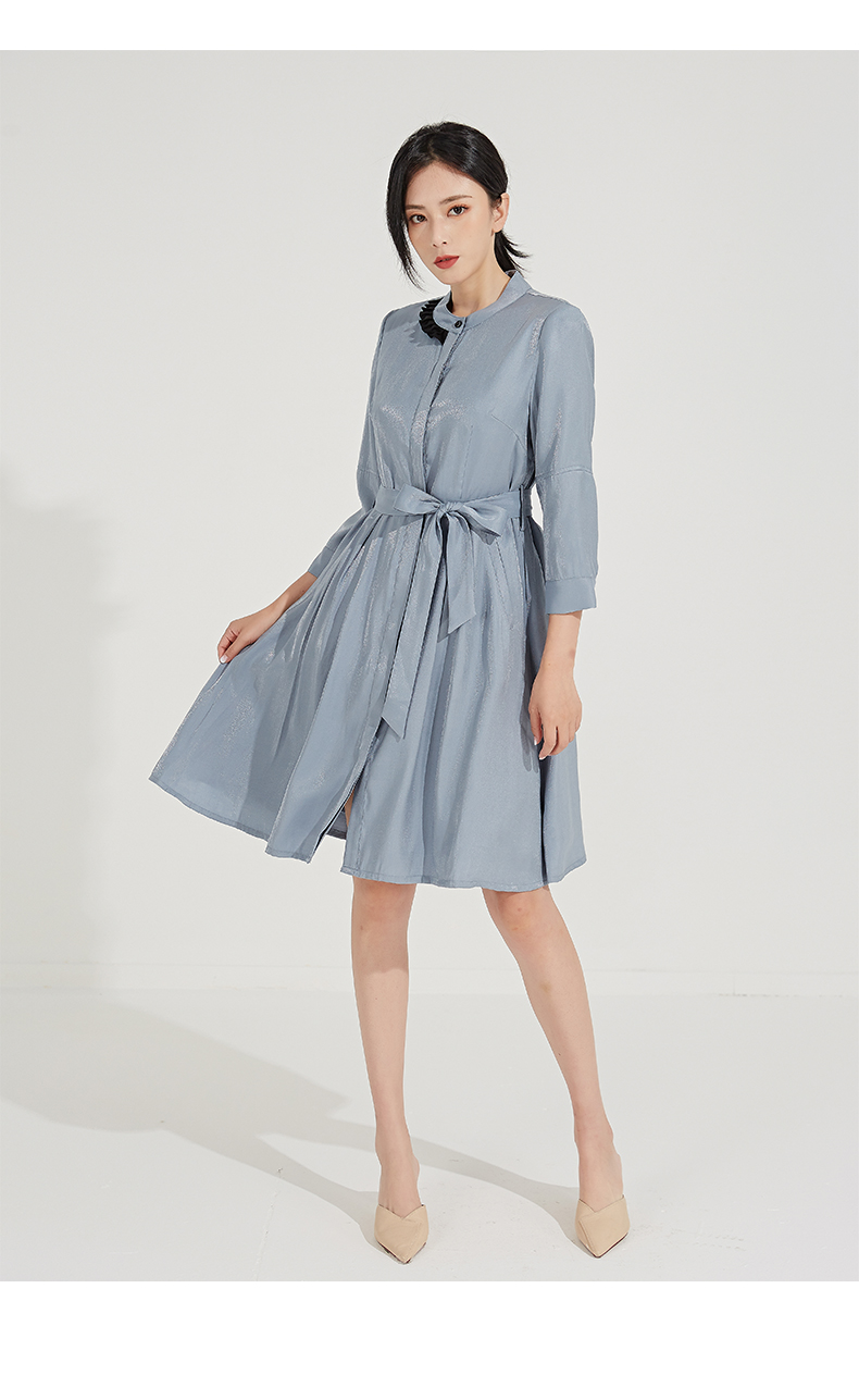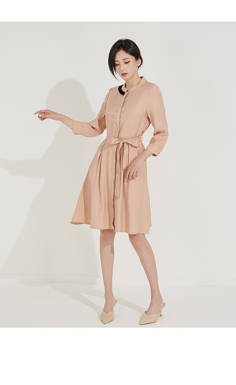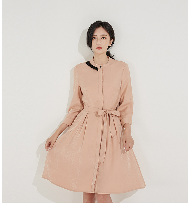 oldcolour春秋季新款圆领收腰收腰显瘦时尚纯色连衣裙GL32103820J