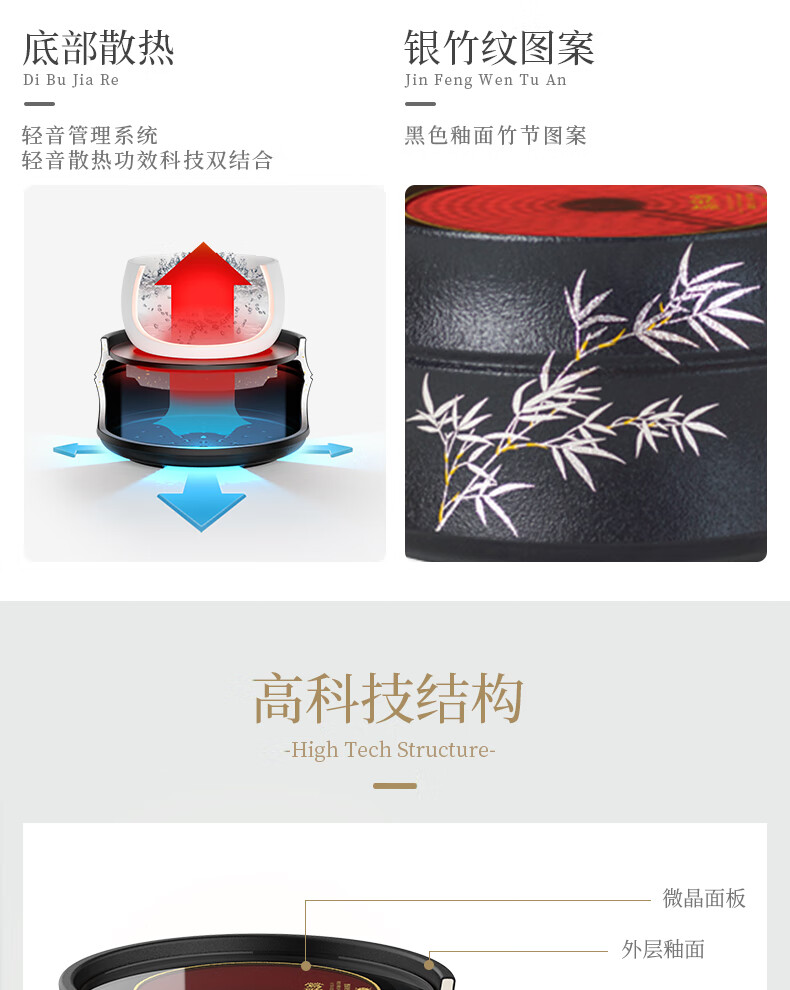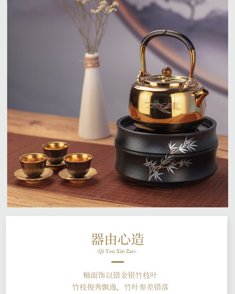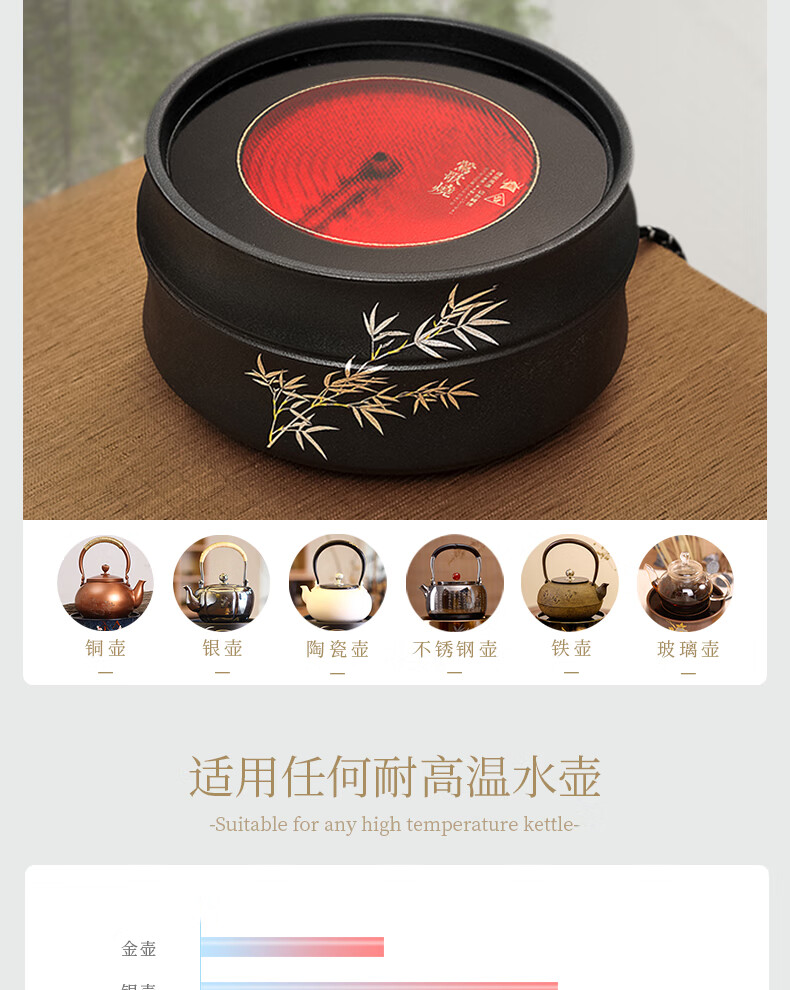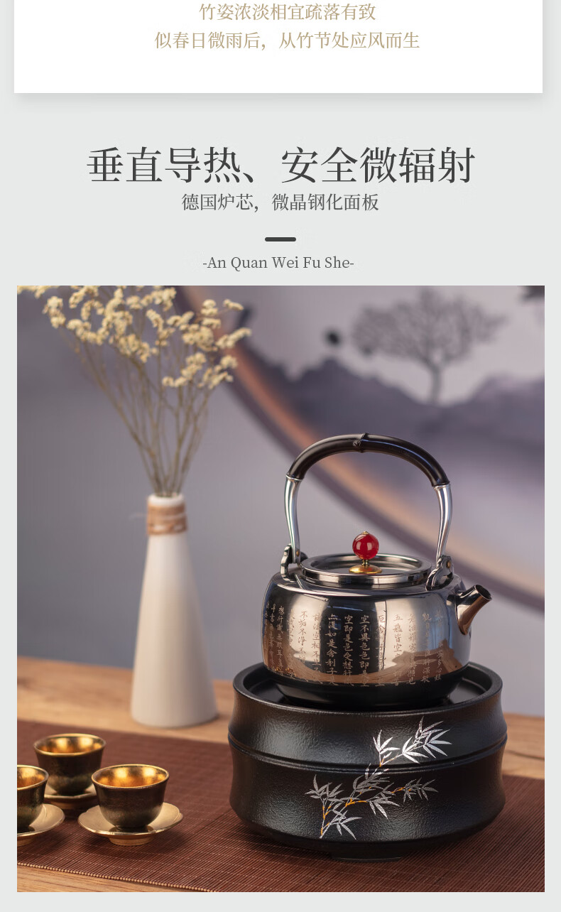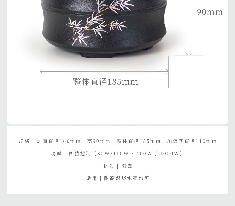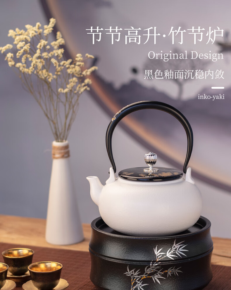 莺歌烧黑底竹节电陶炉轻音家用遥控器烧水煮茶器围炉煮茶小型台式茶炉 竹节【厂家直发】