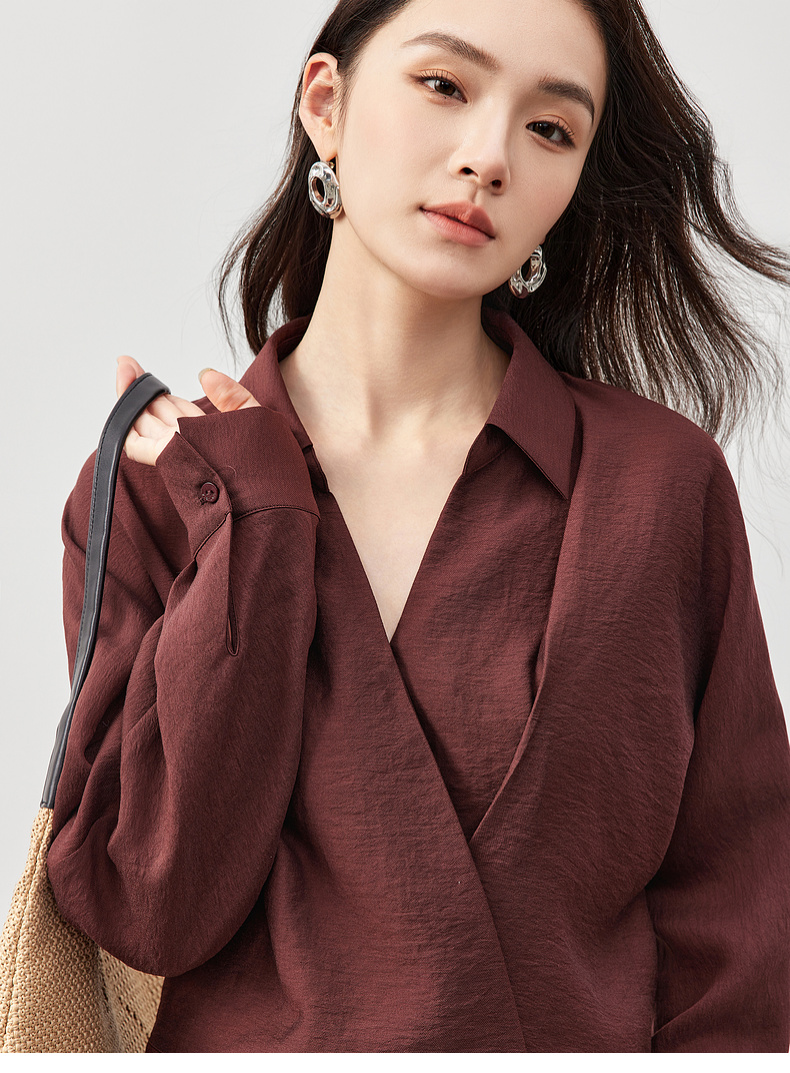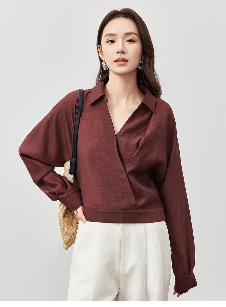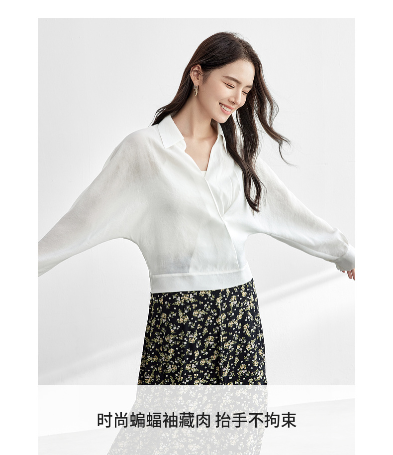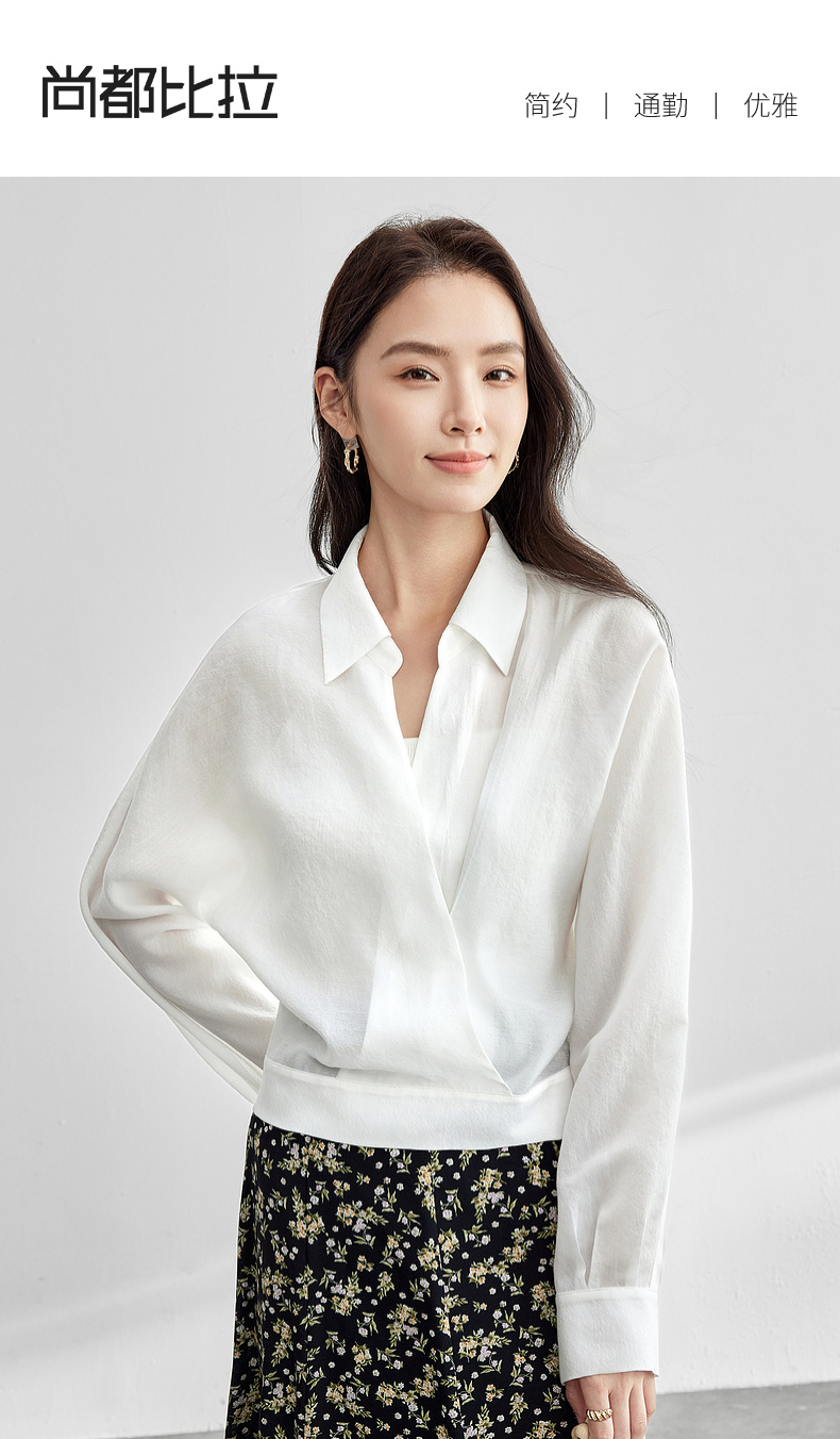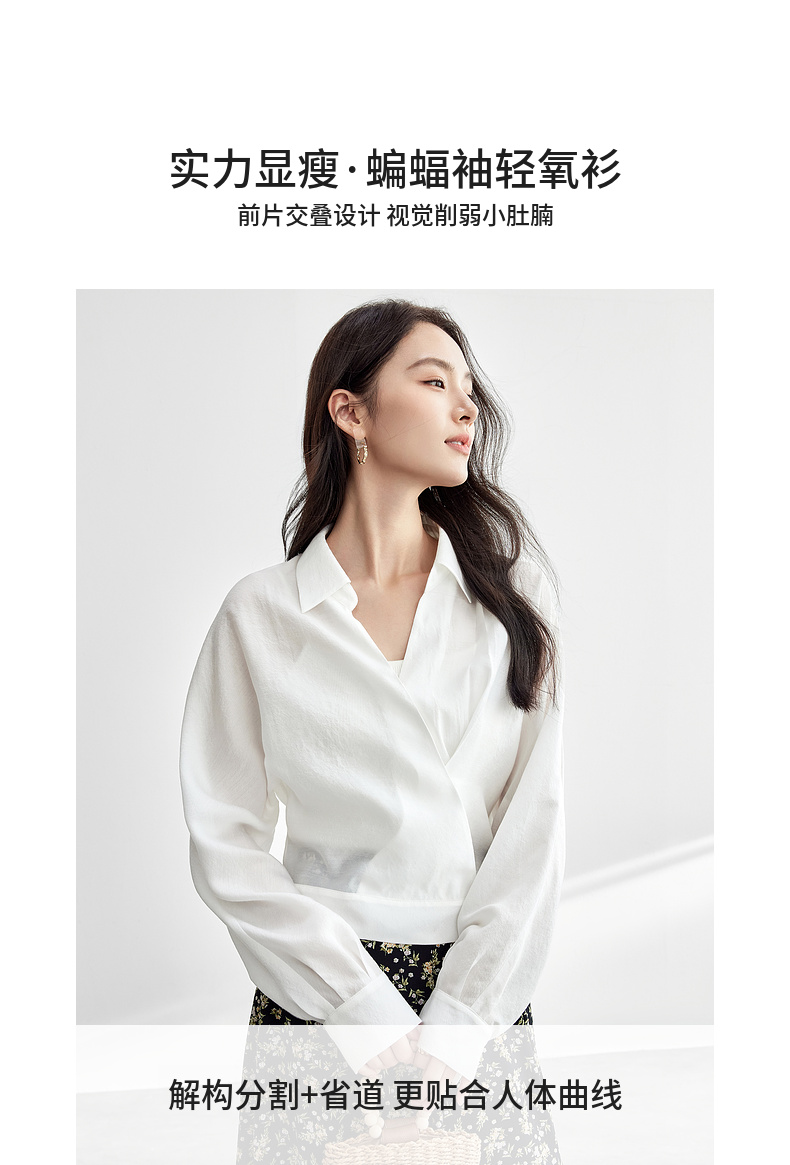 【内购】通勤休闲V型翻领交叠解构分割蝙蝠袖宽松显瘦薄衬衫-151C58339