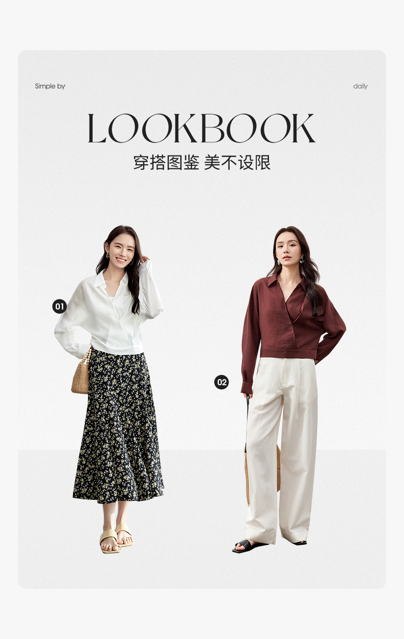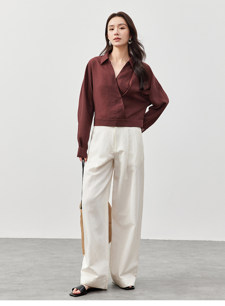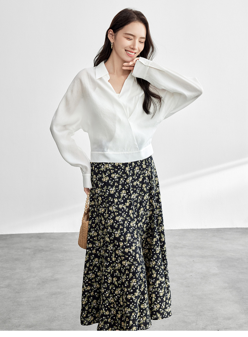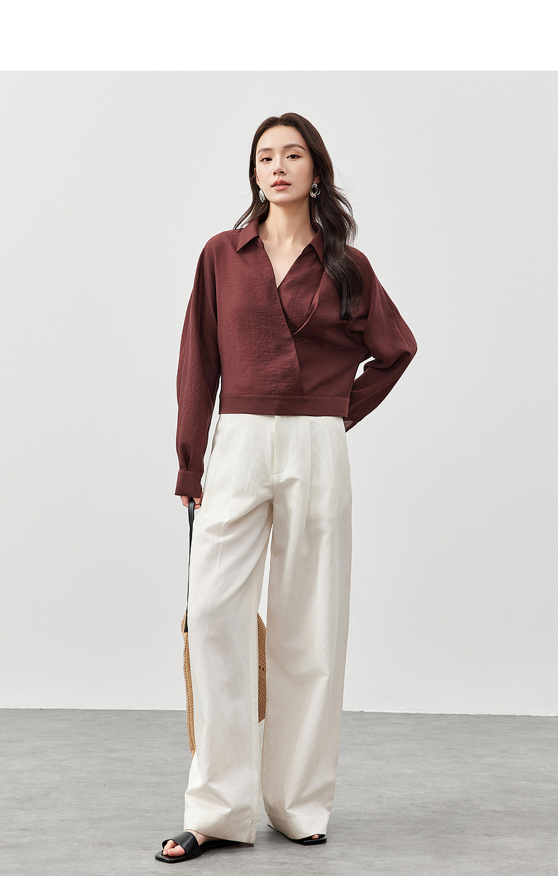 【内购】通勤休闲V型翻领交叠解构分割蝙蝠袖宽松显瘦薄衬衫-151C58339