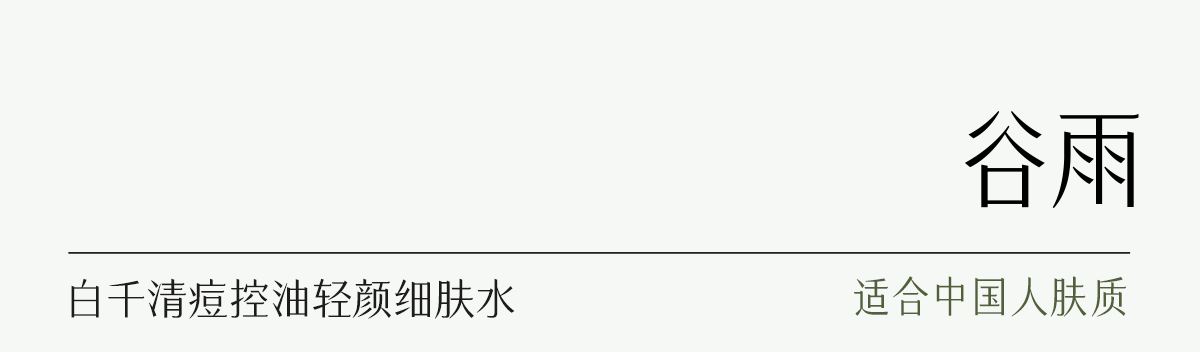 - 谷雨,更适合中国人肤质的植萃美白。专研中华珍稀美白植萃光甘草定,深入研究中国人肤质特点,打造中国女性独有的仙气白。