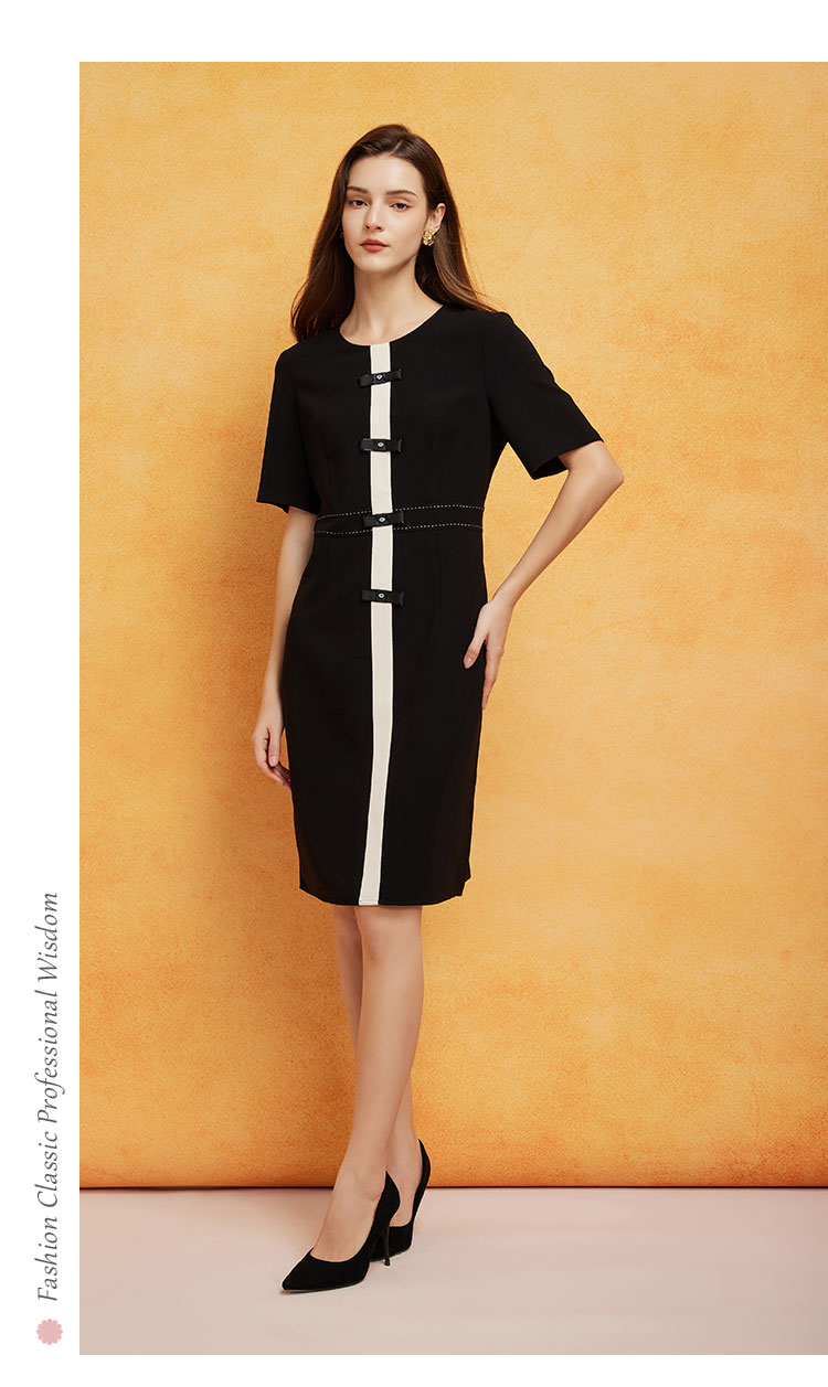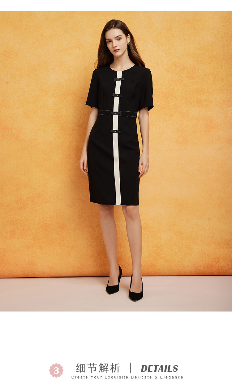PF8H9斯尔丽2024新款商场同款小香风立体蝴蝶结装饰通勤OL职业装连衣裙