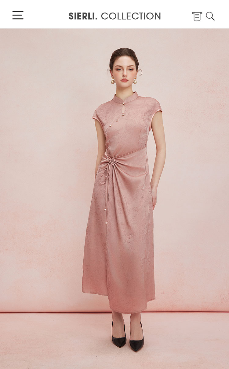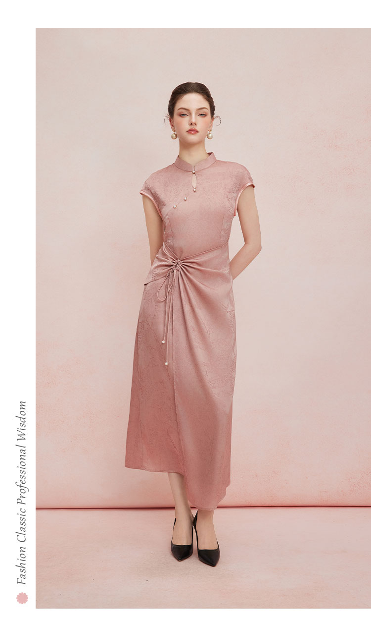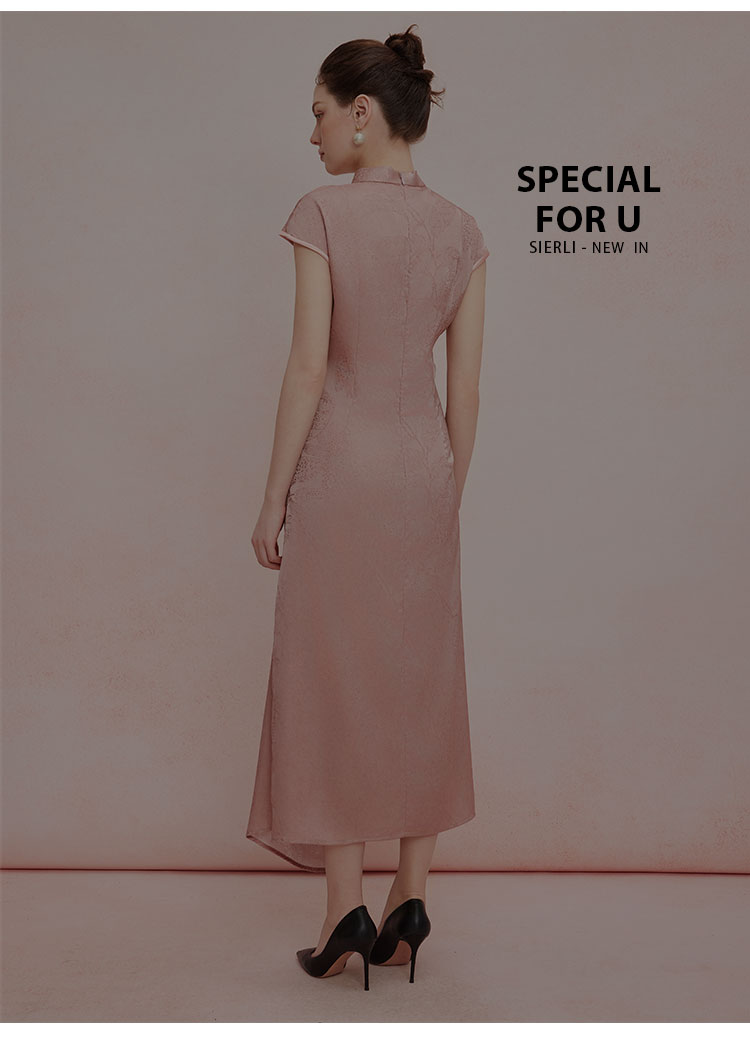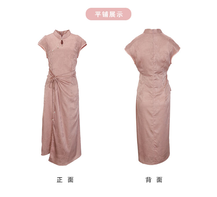 QF818斯尔丽2025夏季新款改良式腰部挡小肚腩设计小盖袖中长款旗袍