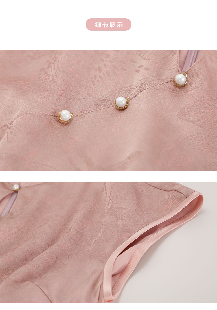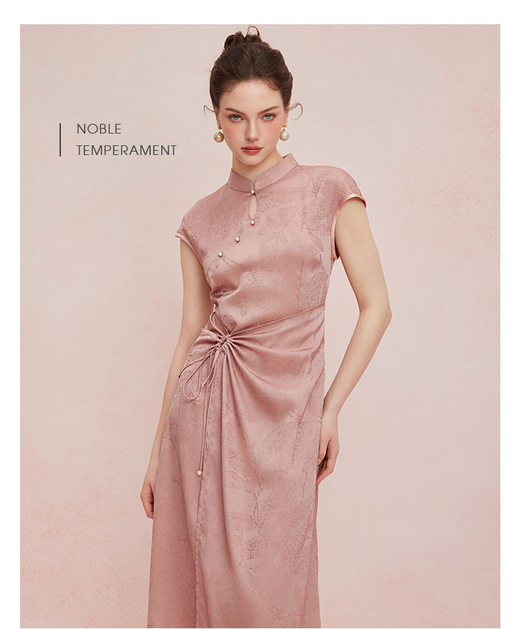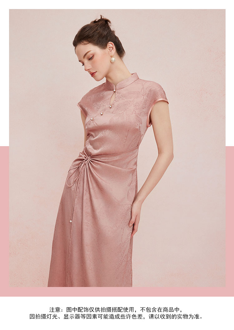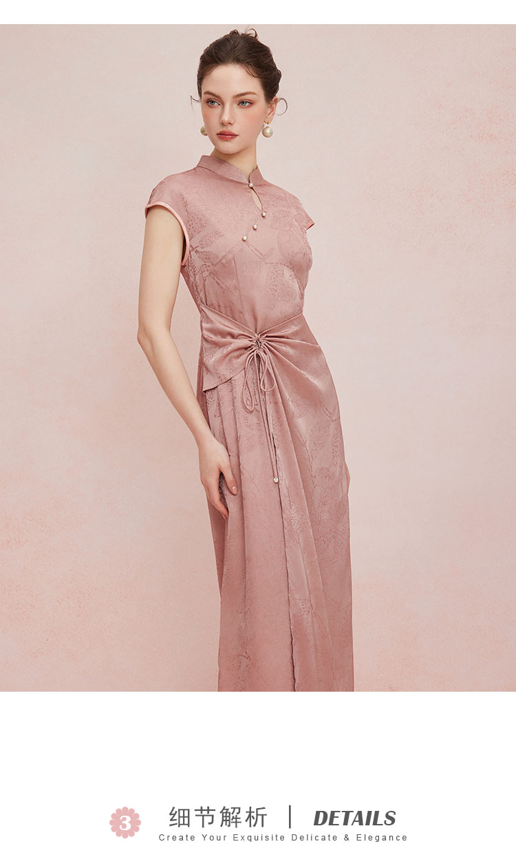 QF818斯尔丽2025夏季新款改良式腰部挡小肚腩设计小盖袖中长款旗袍