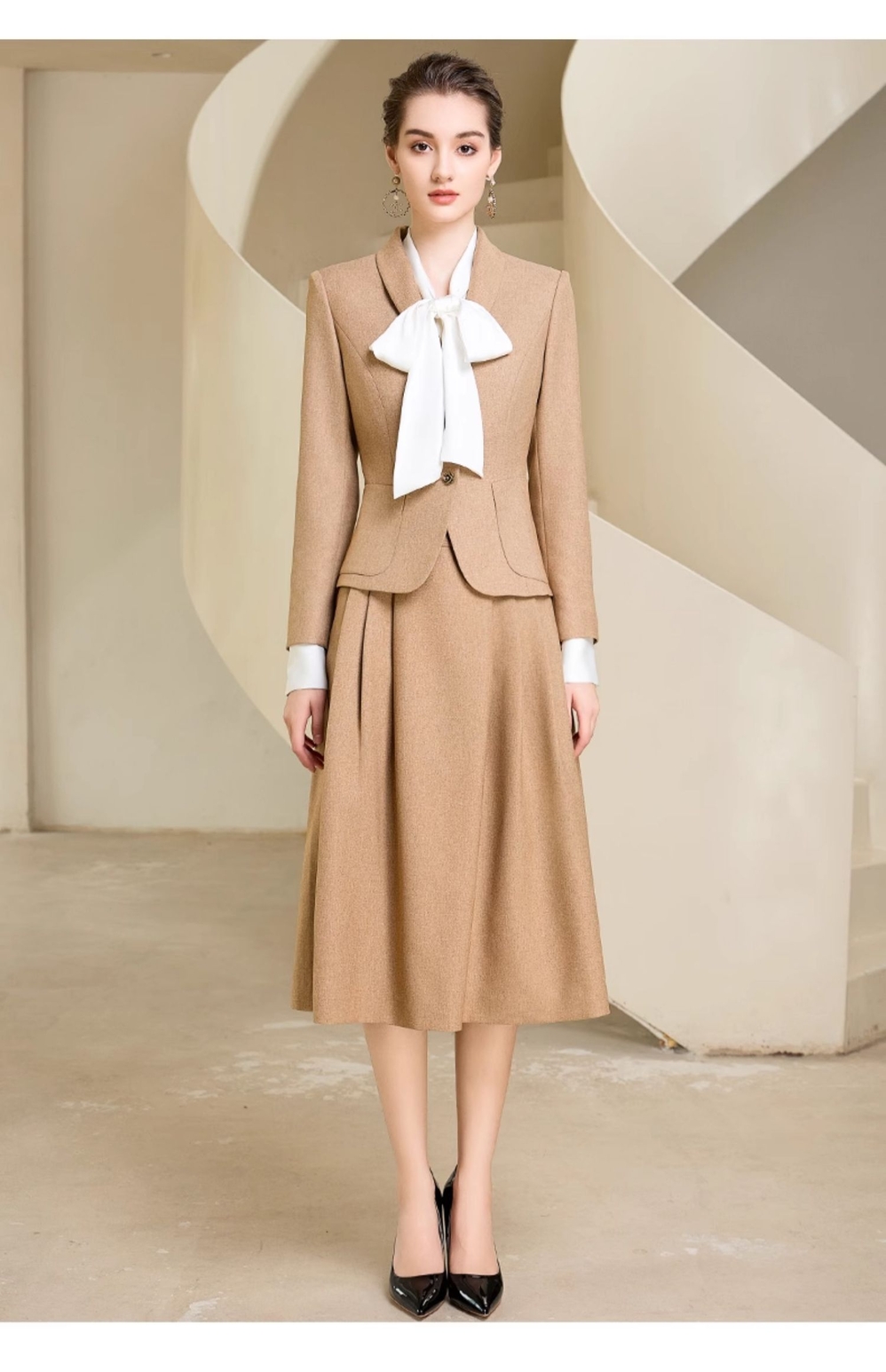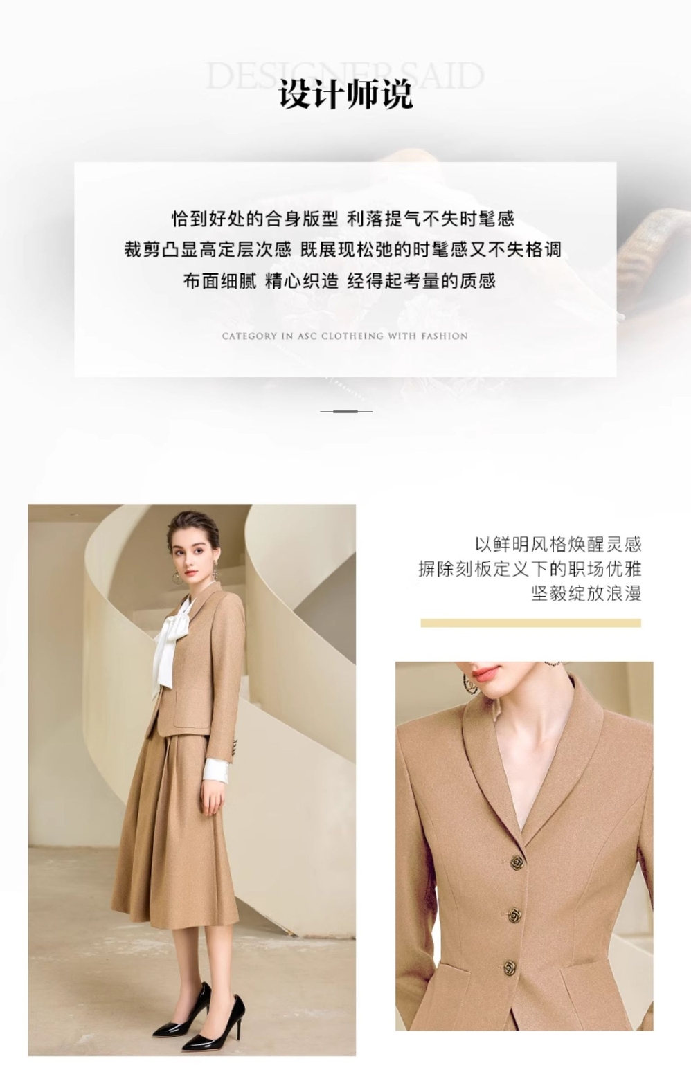 IWY/卡其色法式名媛西装套裙女时尚气质宴会主持工作服秋冬款职业裙装233017C1+S2