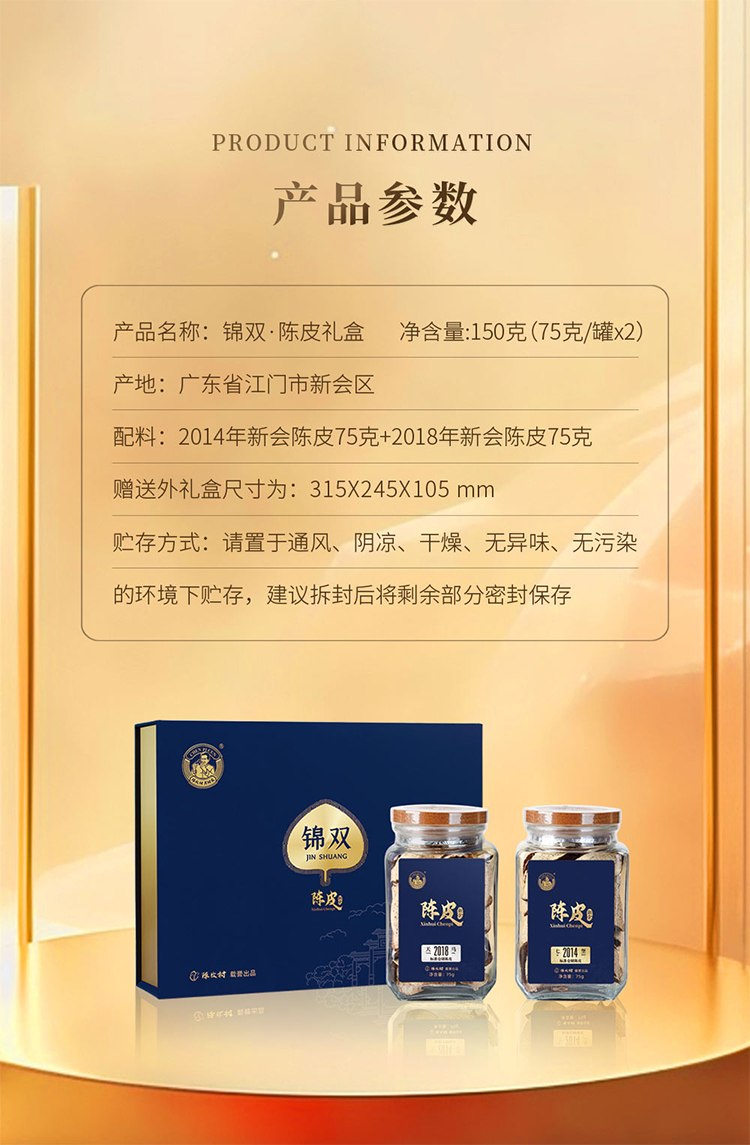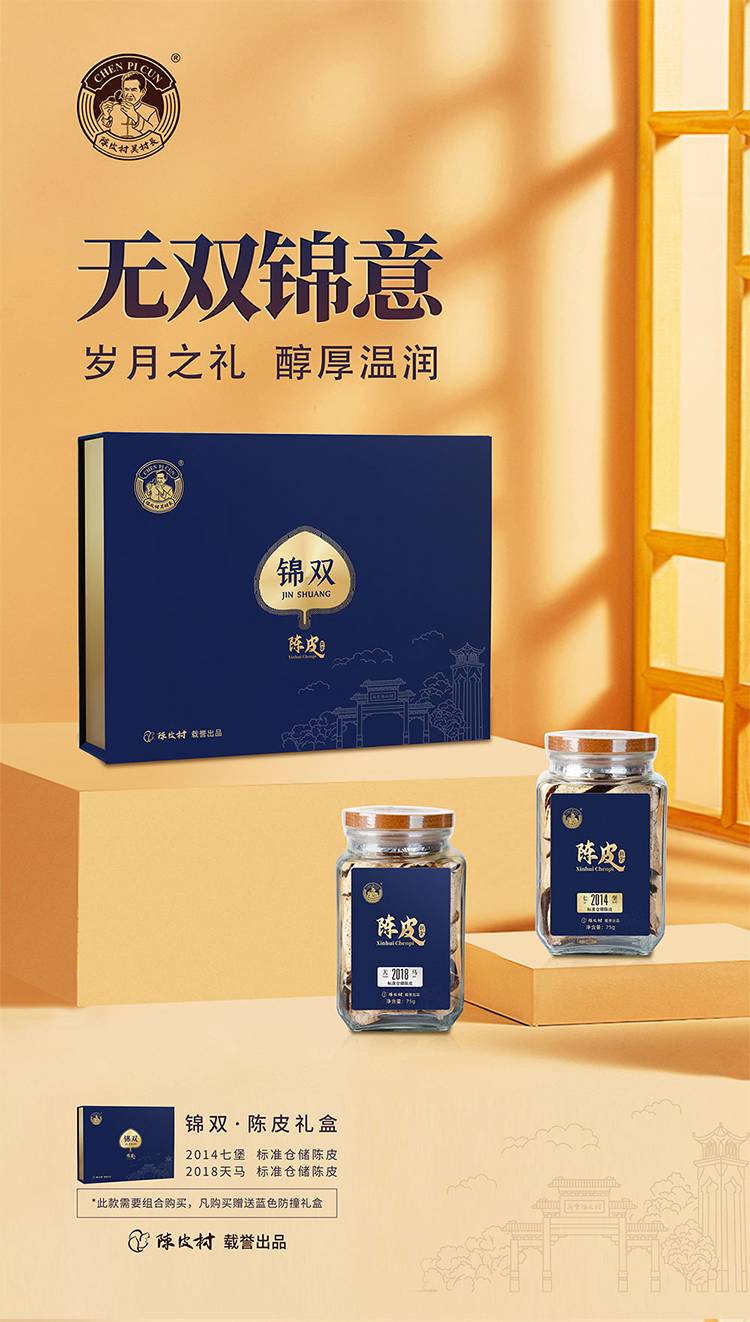 【无陈皮不秋天•“锦双”新会陈皮礼盒】“新会陈皮守护者”陈皮村吴村长 真产区、陈年份、真陈化 “一罐三码” (买10年陈送6年陈)拍两盒再减100元
