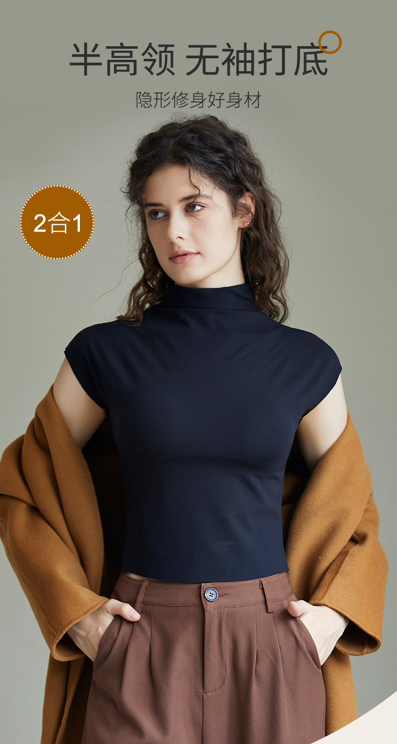 秋冬【短袖半高领保暖背心】免穿文胸 可外穿 时尚百搭 打底内衣女