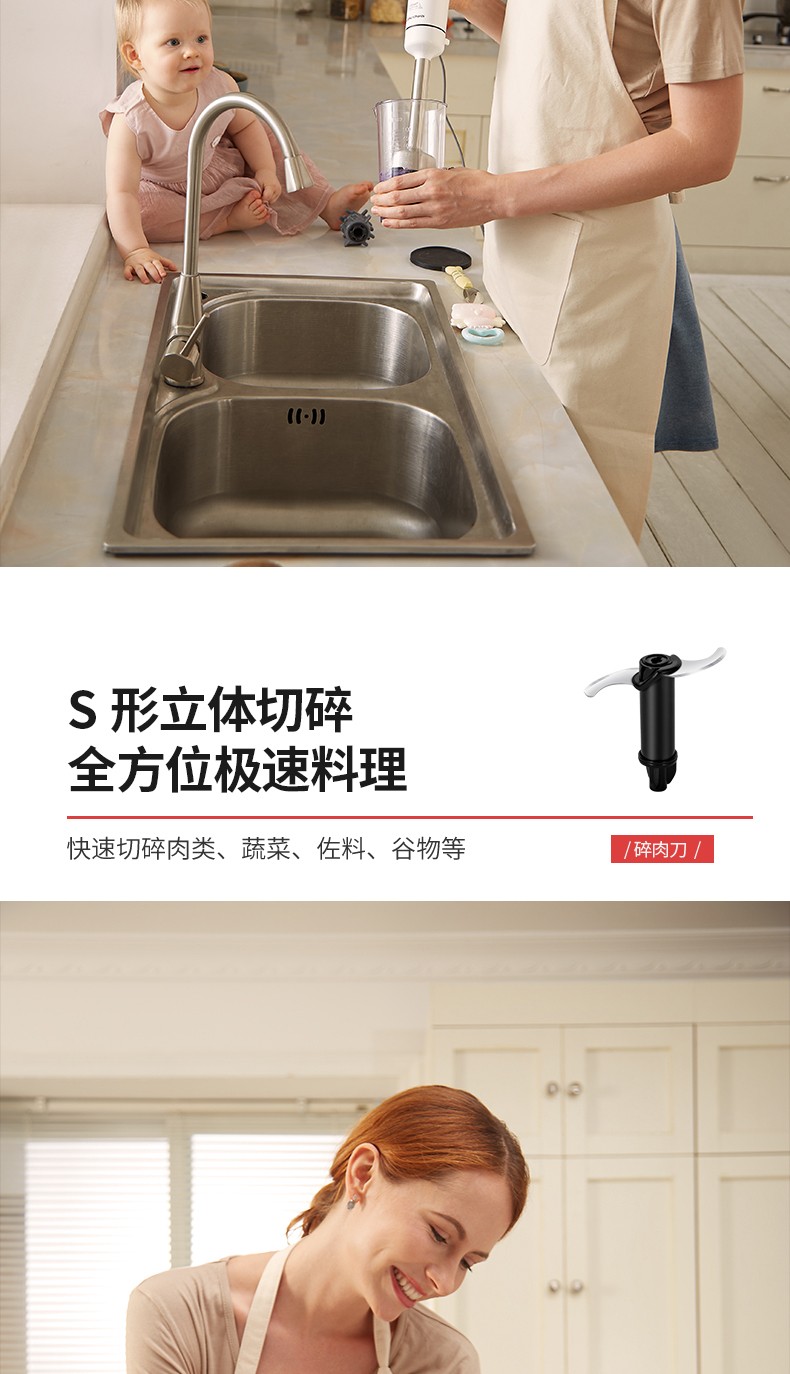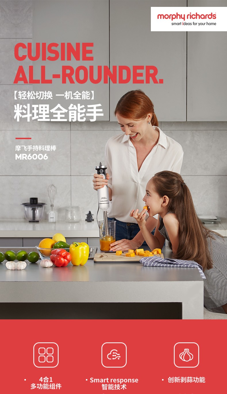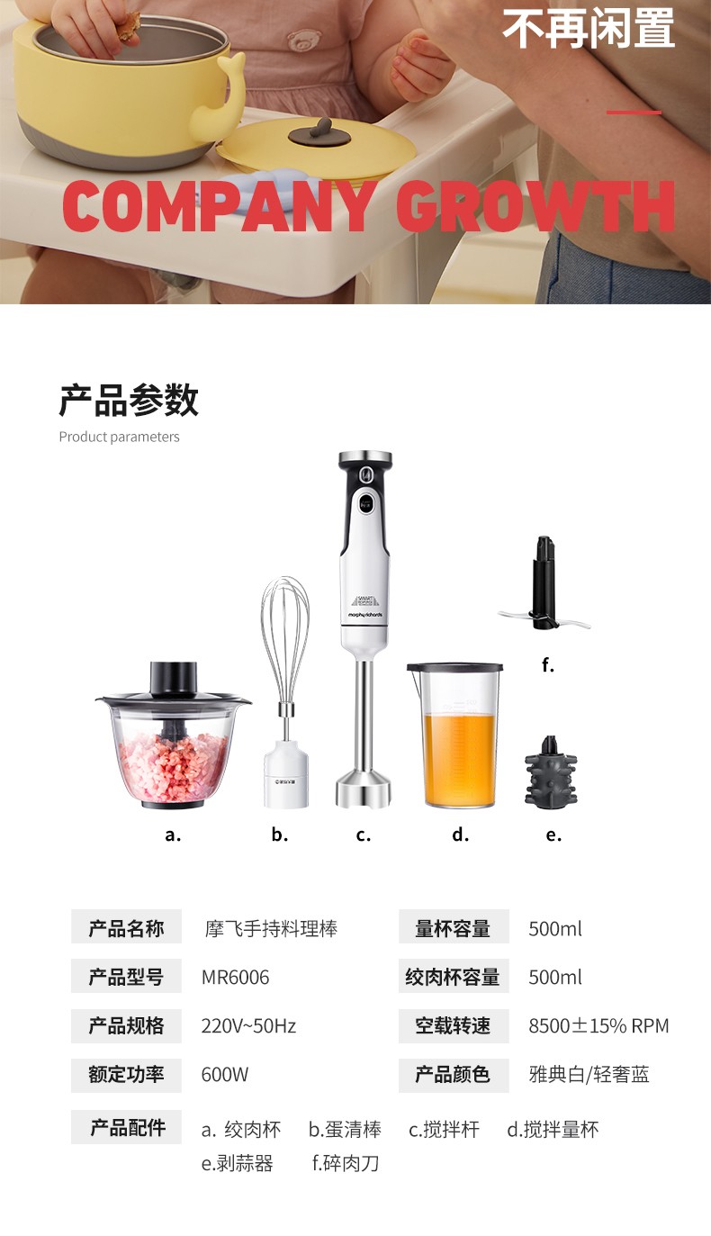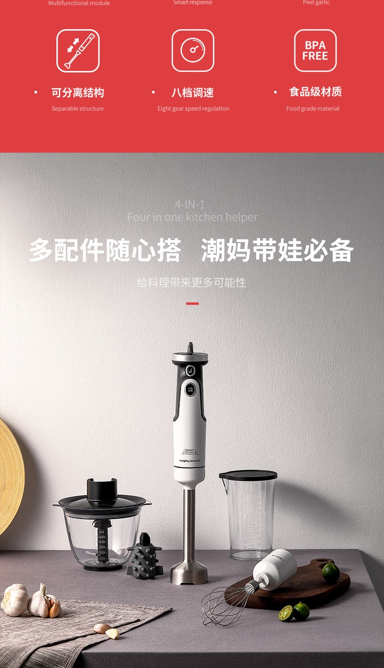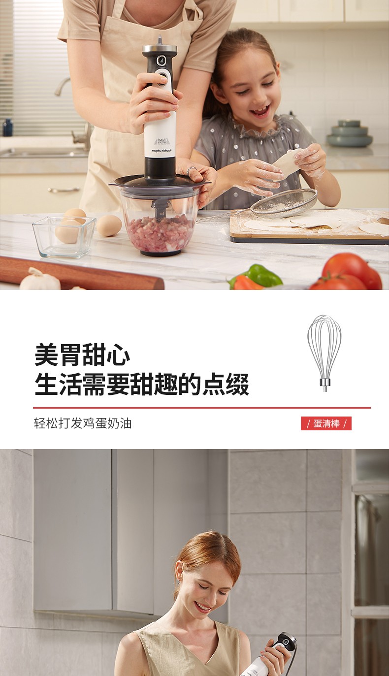 【授权商品】摩飞电器(MORPHY RICHARDS)手持家用辅食搅拌机绞肉粉碎机MR6006 典雅白
