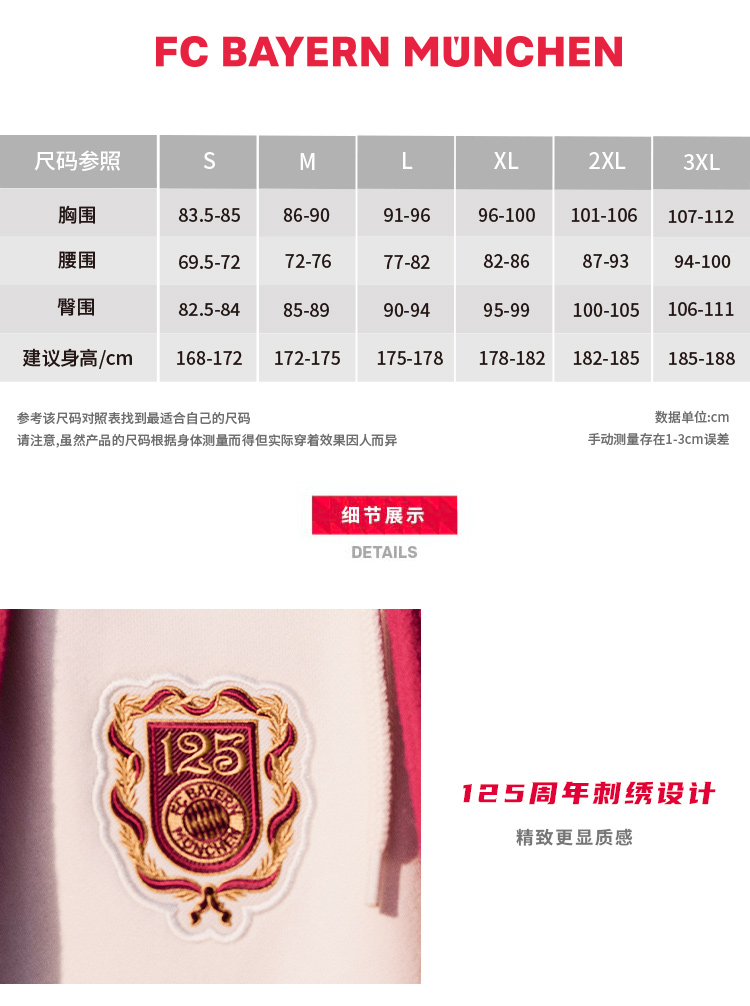 【官网同款】拜仁慕尼黑足球俱乐部 | 125周年连帽男保暖卫衣纪念款
