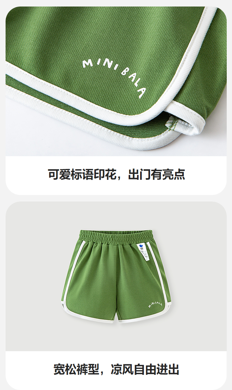 迷你巴拉夏季男童女童吸湿速干弹力透气宽松短裤2025新款