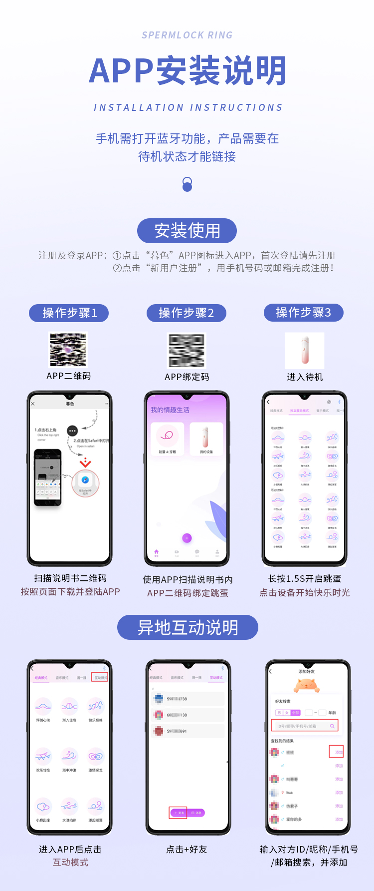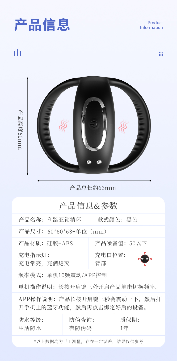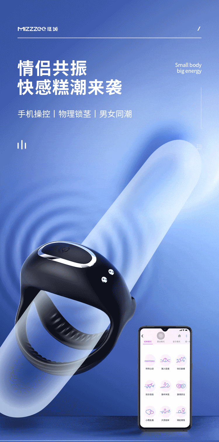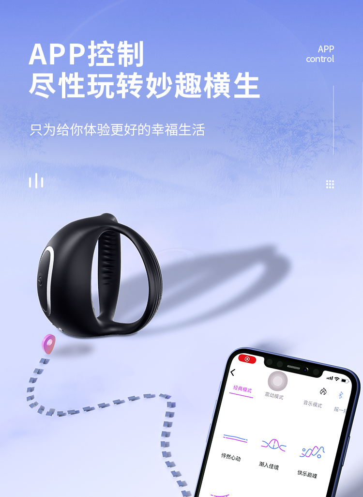 谜姬 利路亚锁精套环 APP款 远程遥控男用 夫妻情侣男女房事共用充电 电动震动环 共振套环成人用品 情趣性用品