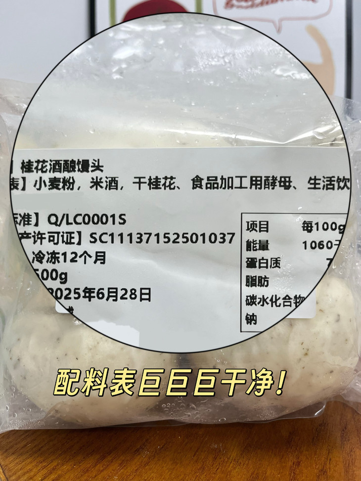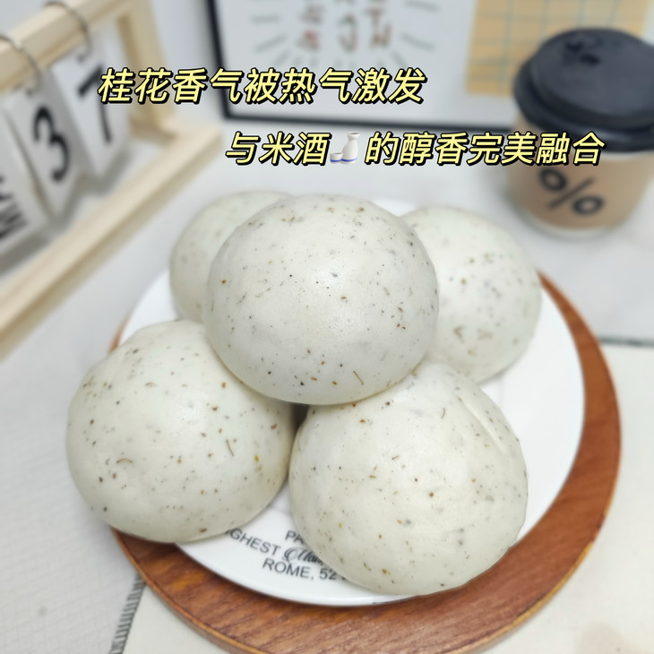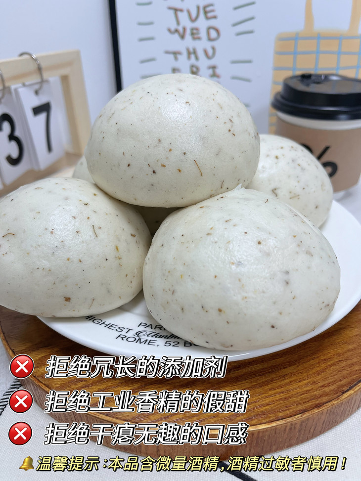 看得见的真材实料!配料表干净到“发指”! ‼️配料表就是我们的承诺书!只有:优质小麦粉、天然干桂花、醇香米酒、生活饮用水、食品加工用酵母没了!真的没了! ‼️0添加!0防腐!0色素!0香精!拒绝一切不必要的化学添加,回归食物本真味道,让你吃的超级安心! 💞干桂花点睛之笔:精选优质干桂花,在揉面时融入面团。蒸制过程中,桂花香气被热气激发,与米酒的醇香完美融合。 咬一口🥰,淡淡的桂花香萦绕齿间,仿佛置身秋日江南的桂花树下,清新雅致,回味悠长。