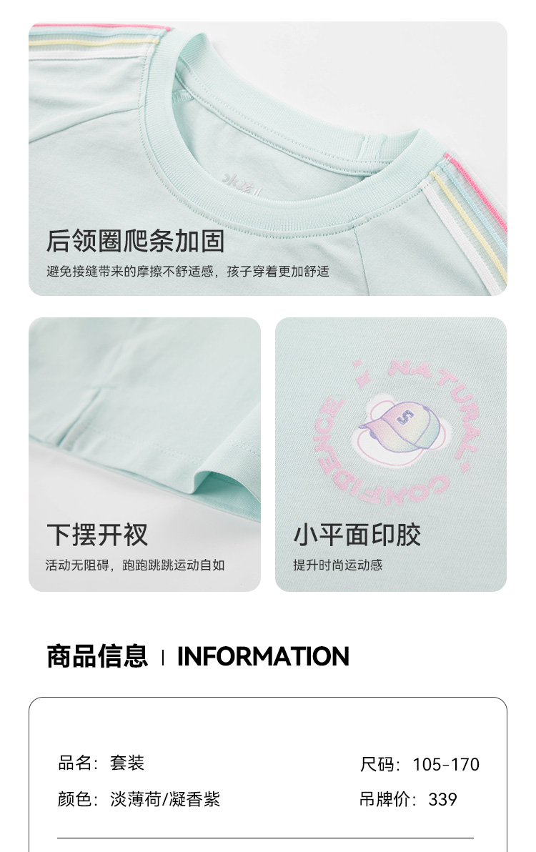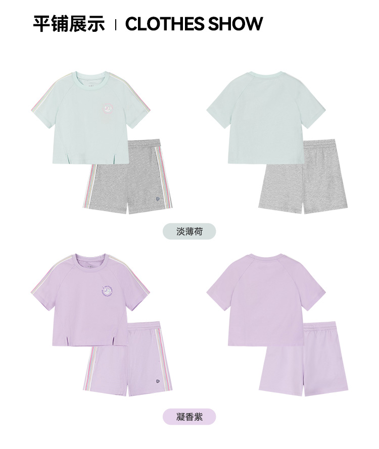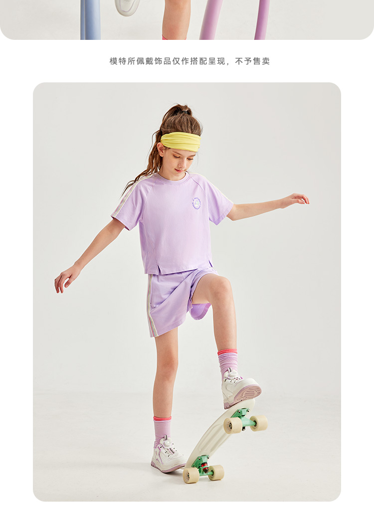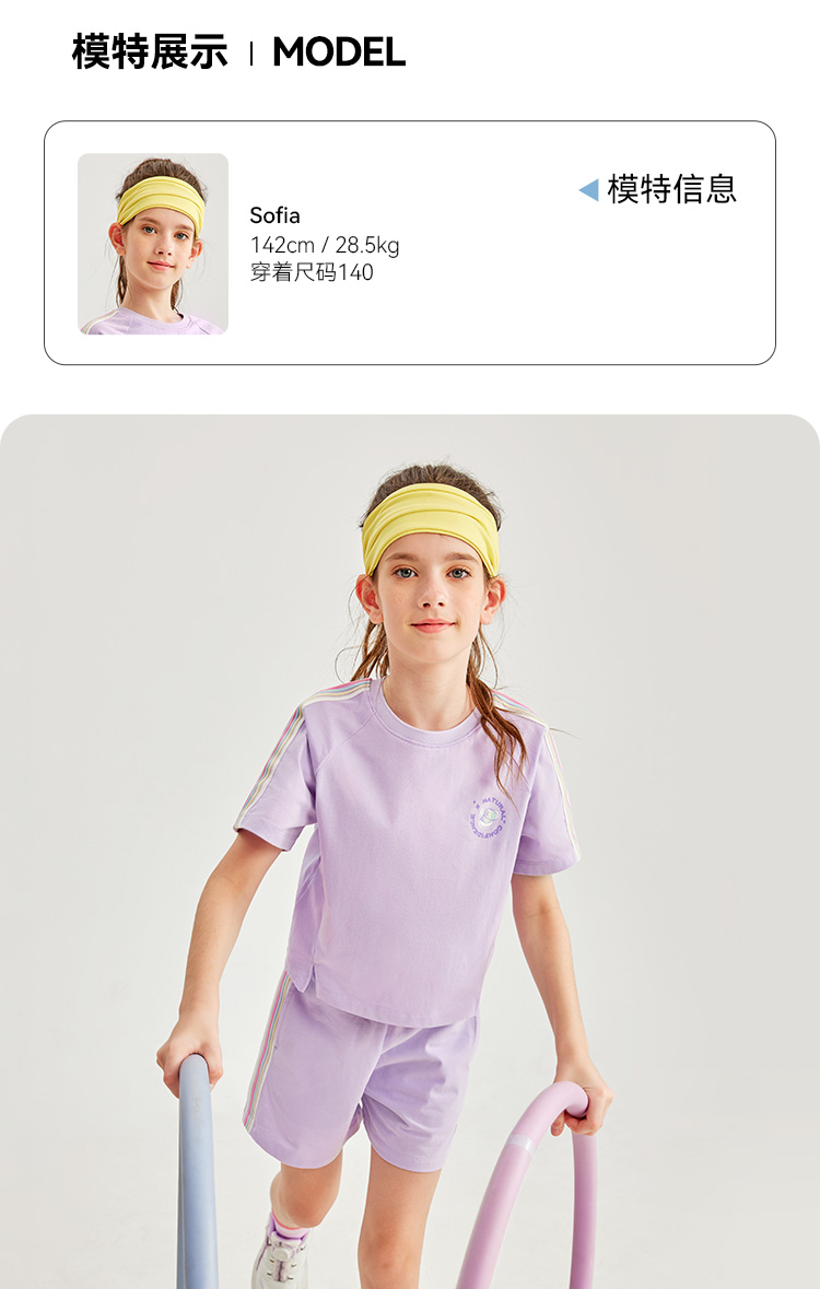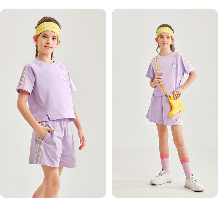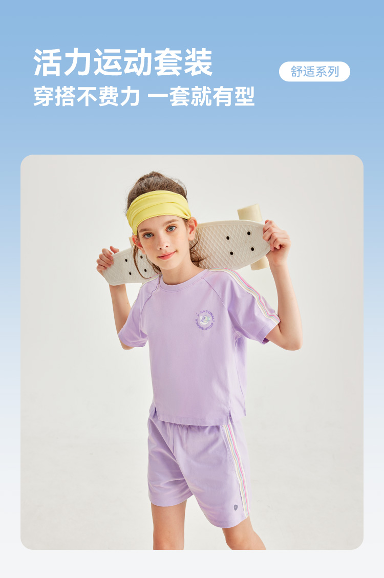 水孩儿童装夏季新款女童时尚运动套装儿童舒适纯棉短袖T恤简约纯色短裤
