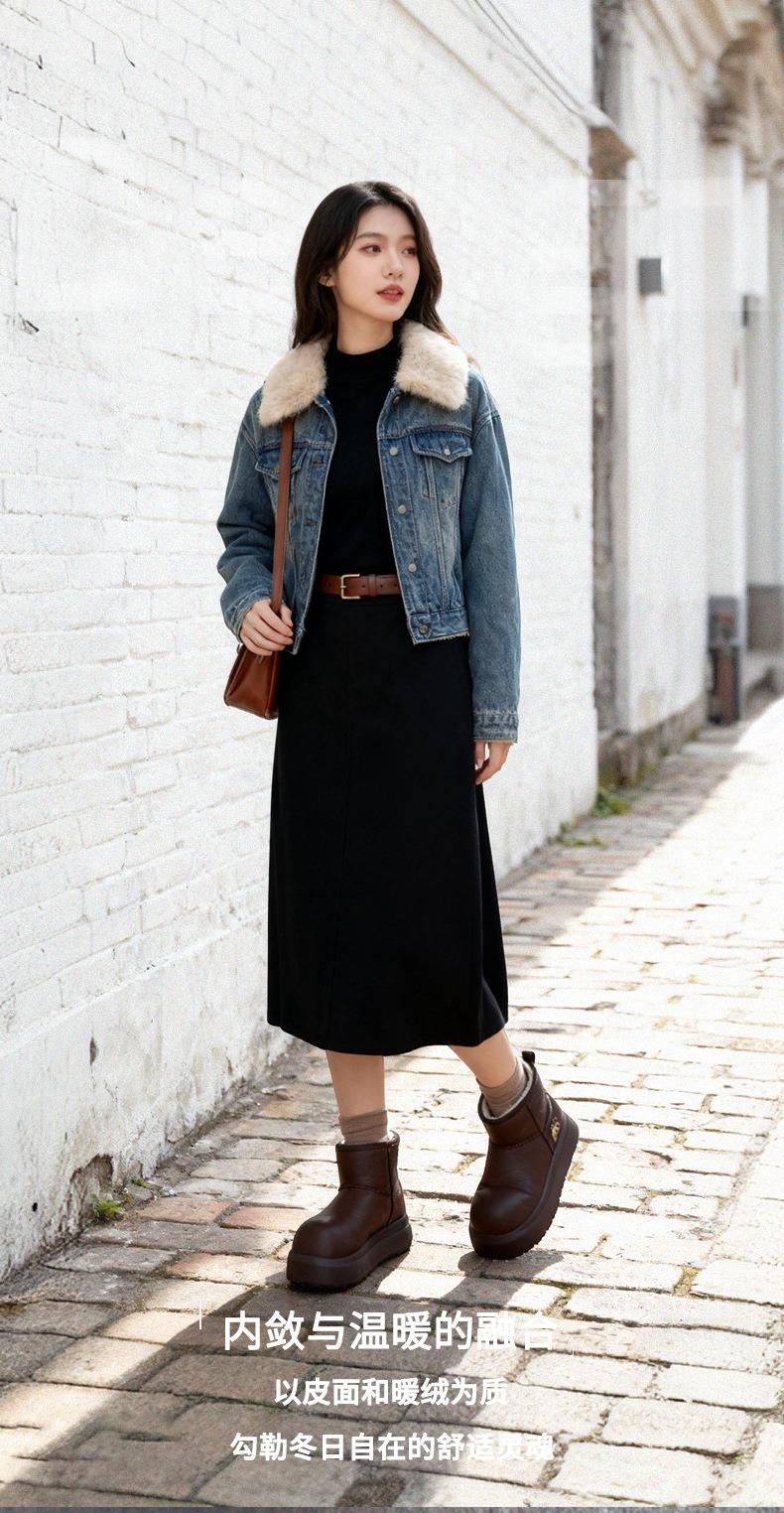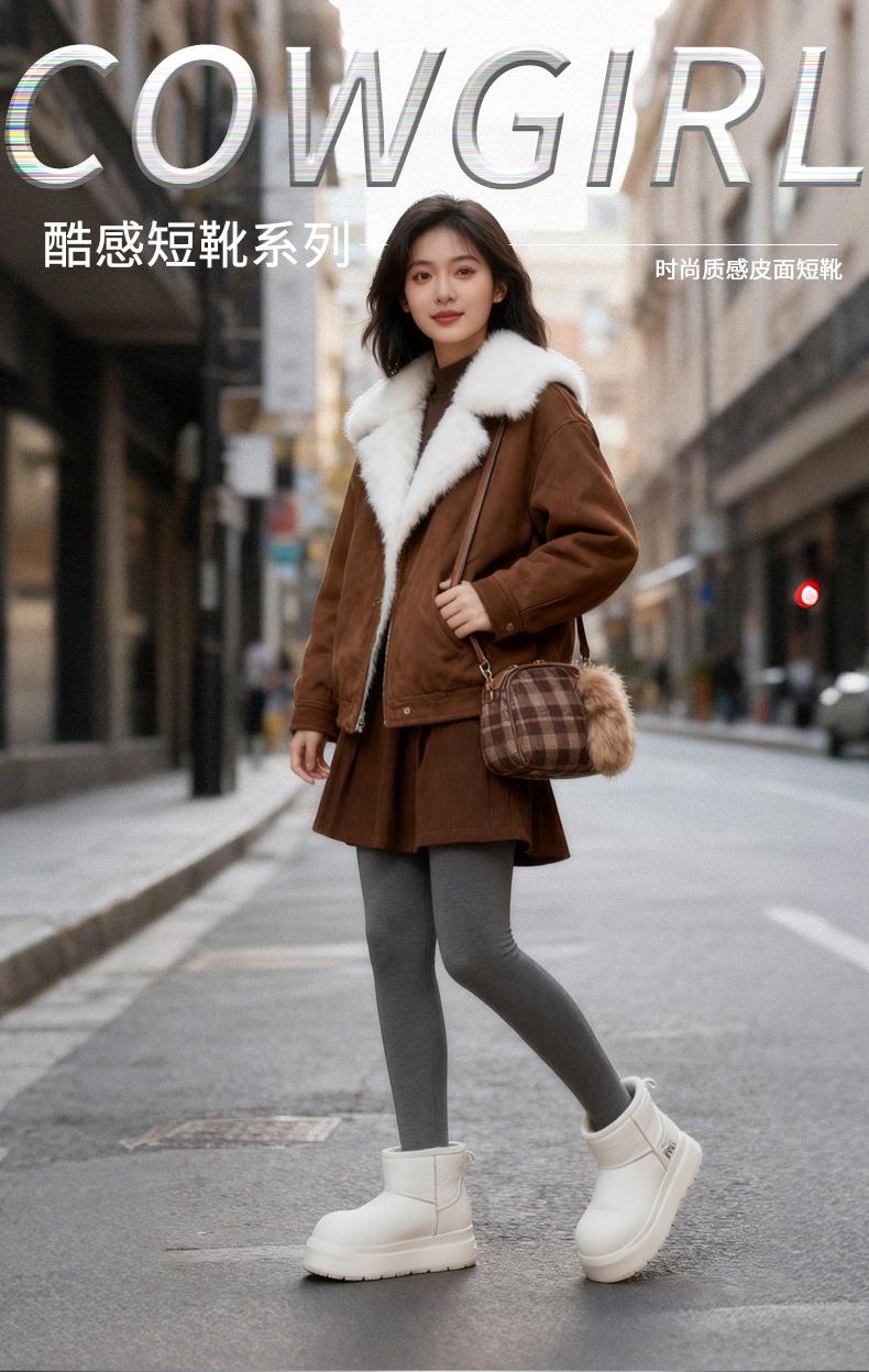 发泡底内增高7cm真皮卡皮巴拉雪地靴女2025冬季新款棉鞋厚底女靴