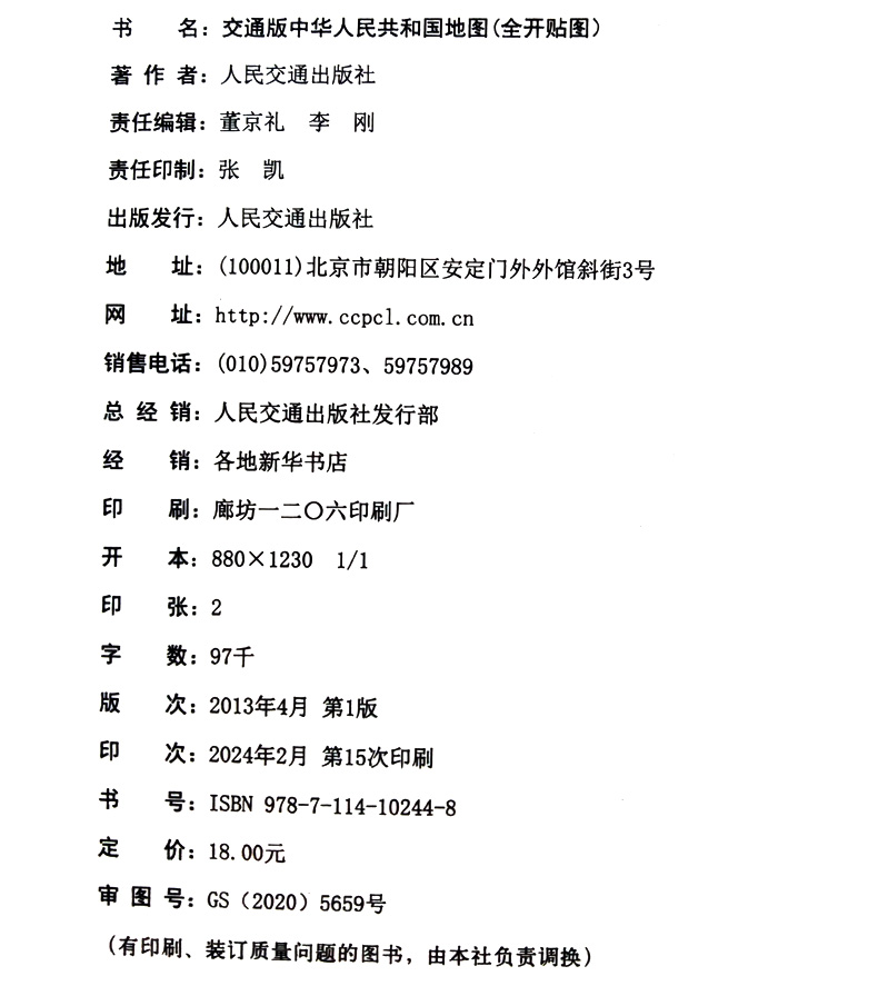 书名:中华人民共和国地图(全开精装贴图)(2024版)