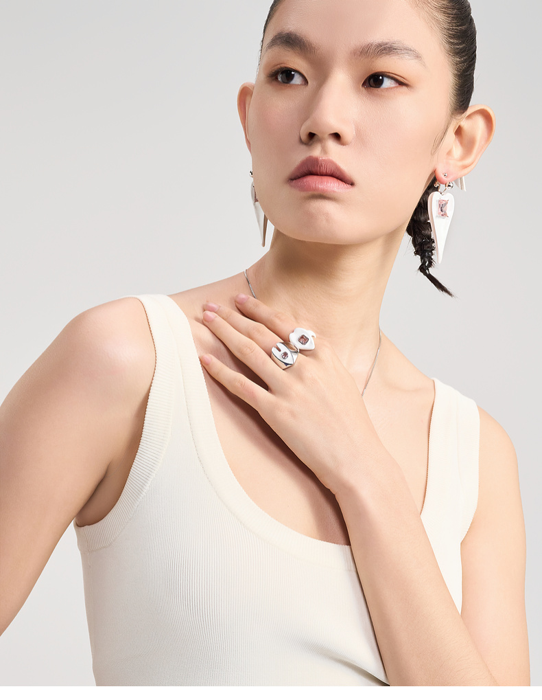 lost in echo2024夏季新款原创设计手工冷珐琅彩色锆石戒指指环