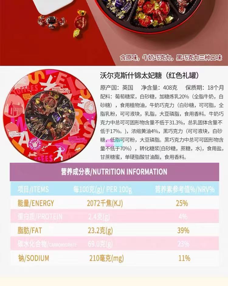 沃尔克斯什锦太妃糖(红色礼罐)408g