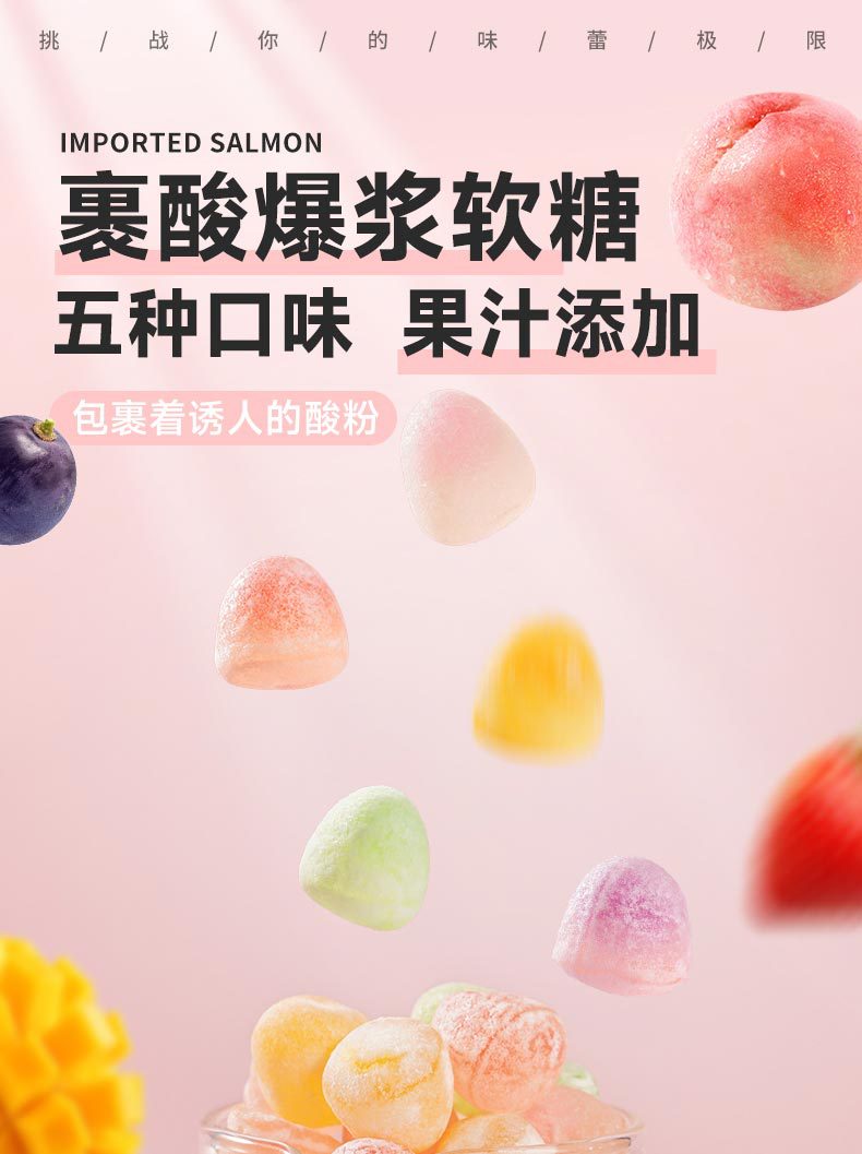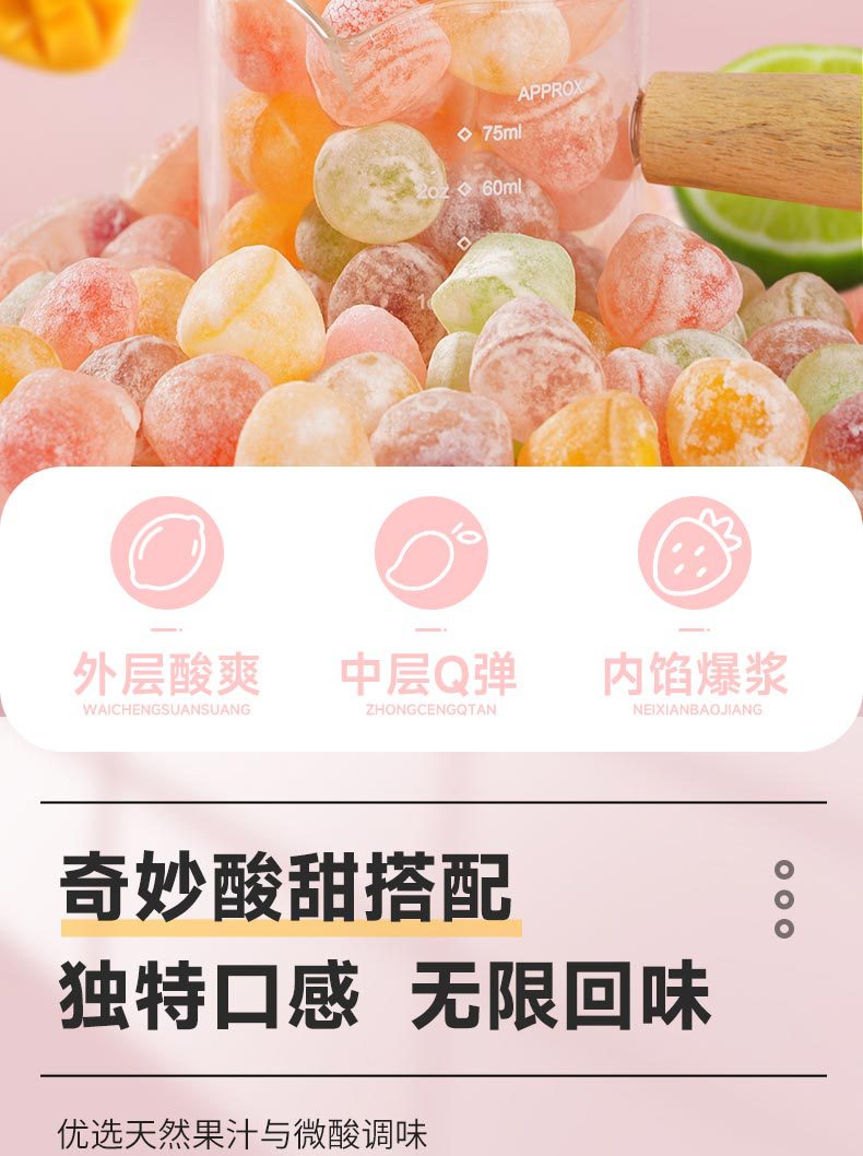【13.9到手60颗❗裹酸爆浆软糖】Q弹美味好吃不腻,口感细腻醇正,粒粒饱满有营养丰富,果汁软糖各种软糖L