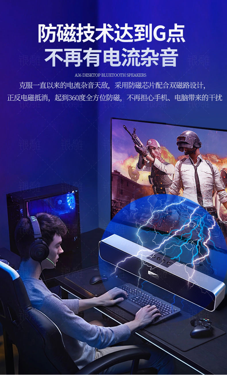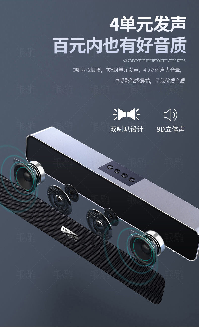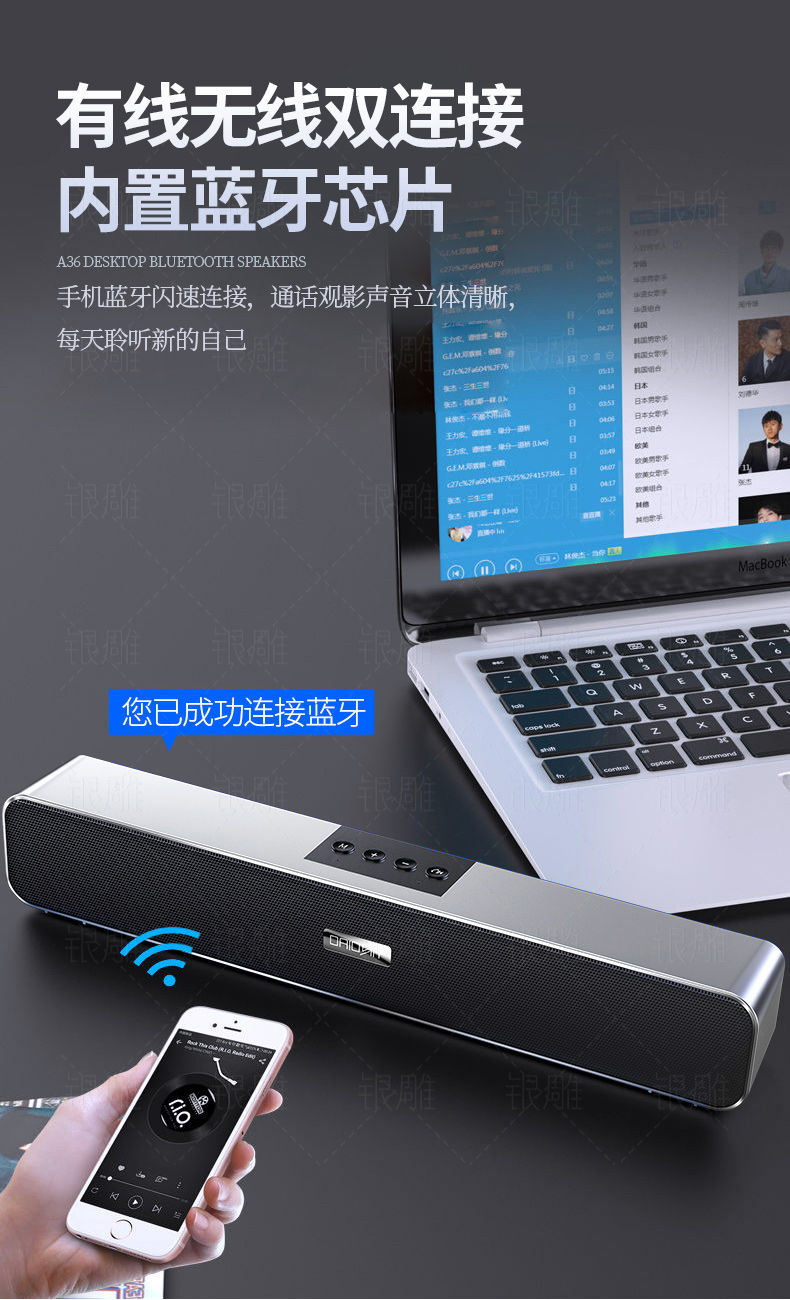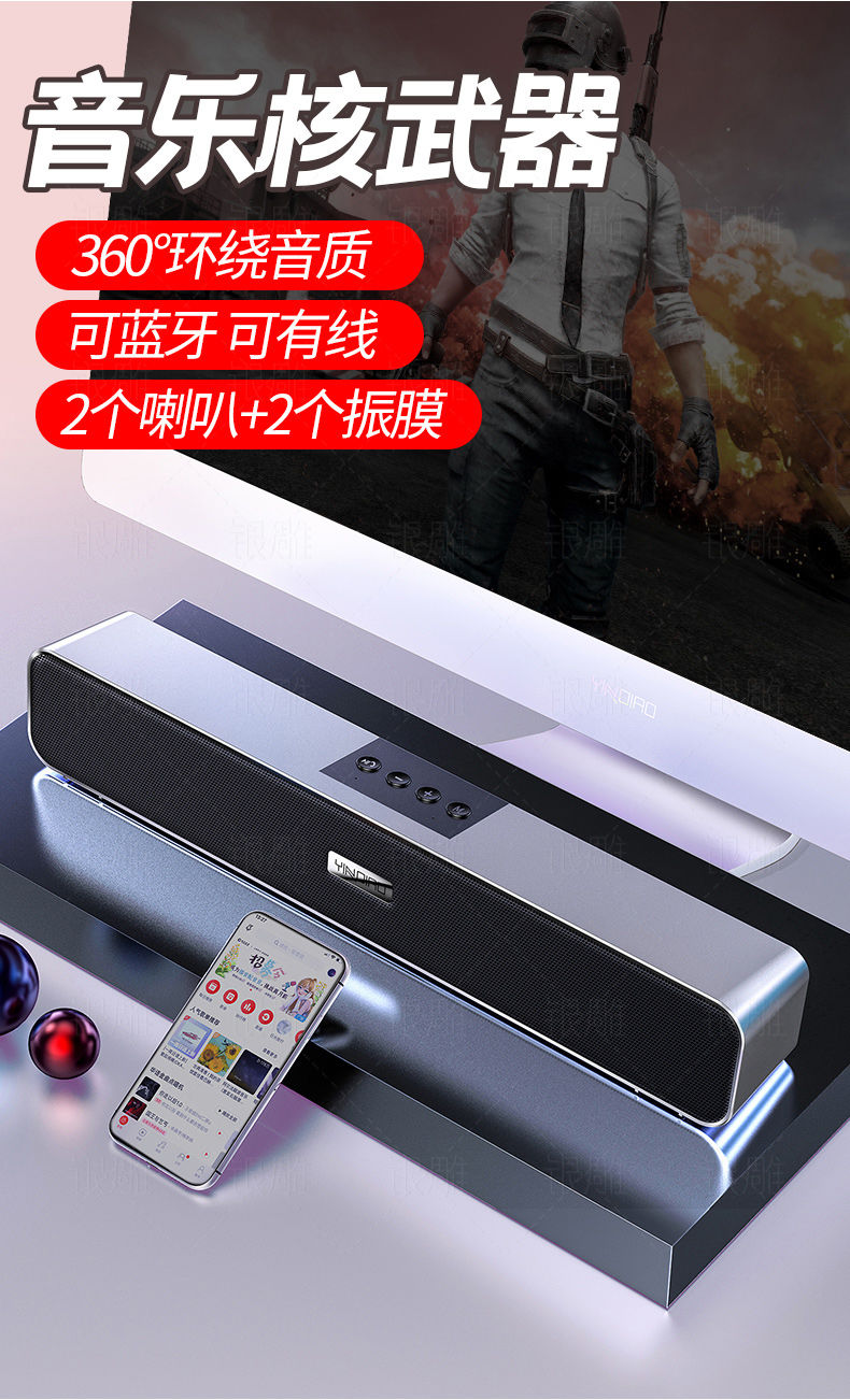 【银雕多媒体电脑音响】笔记本蓝牙桌面长条影音电器重低音炮