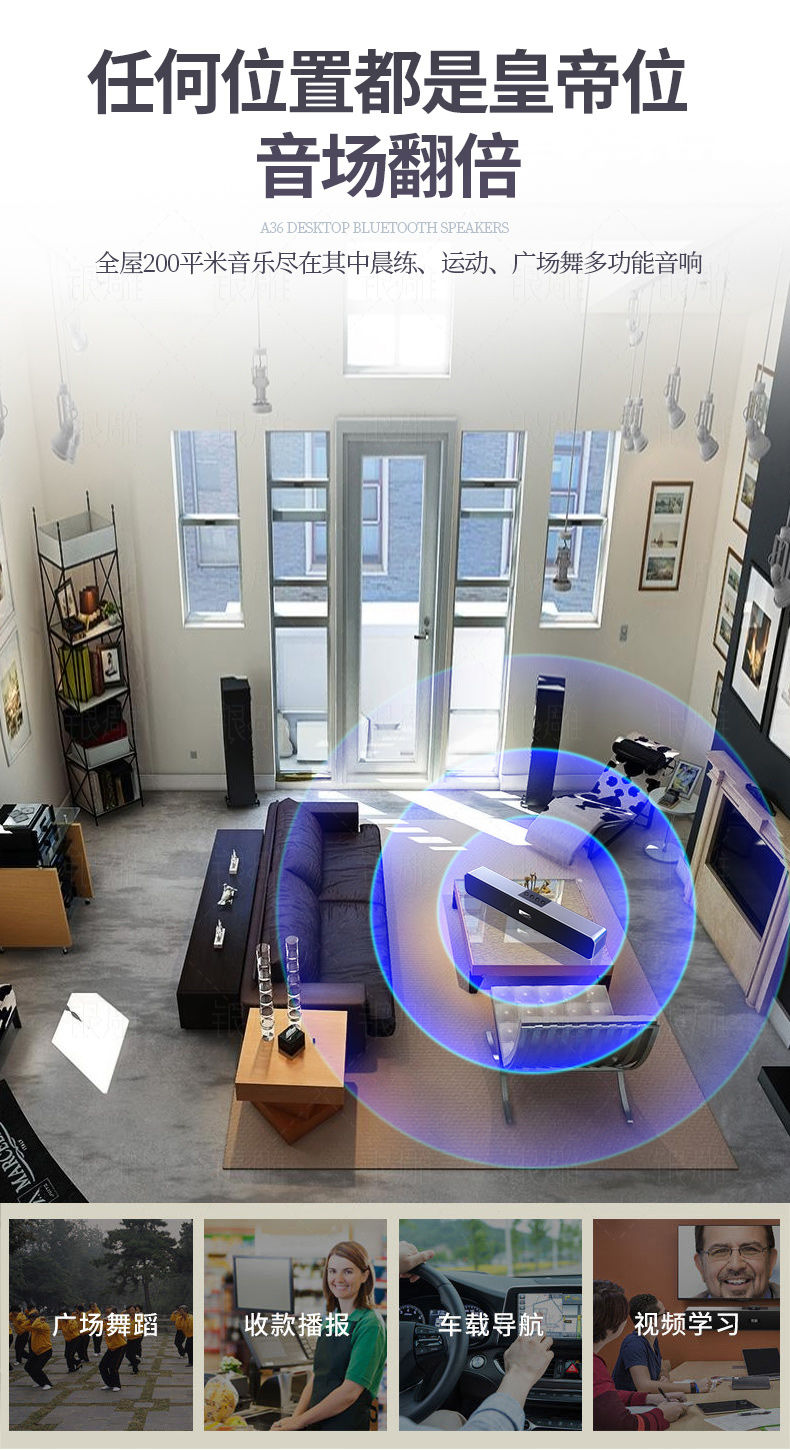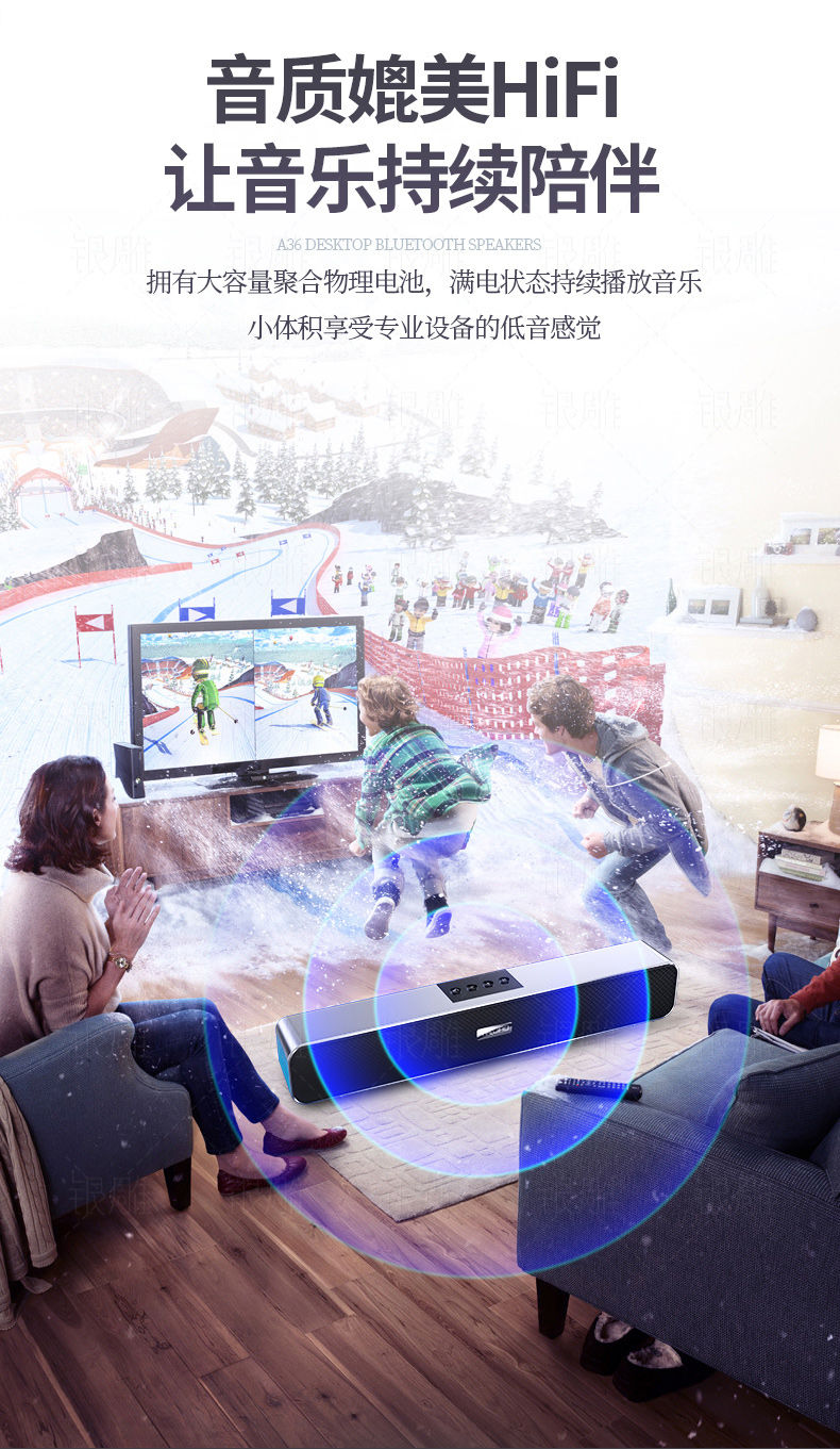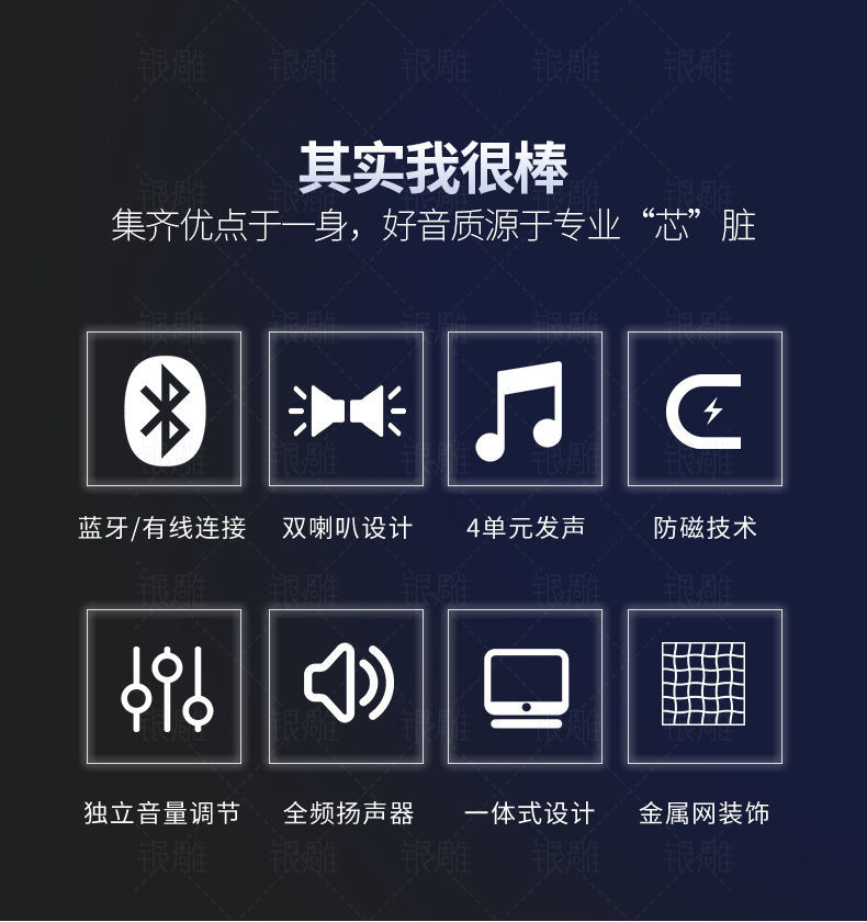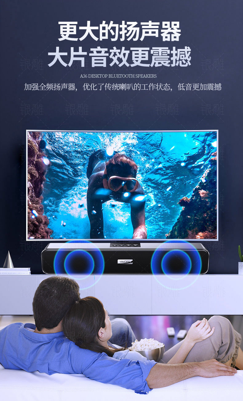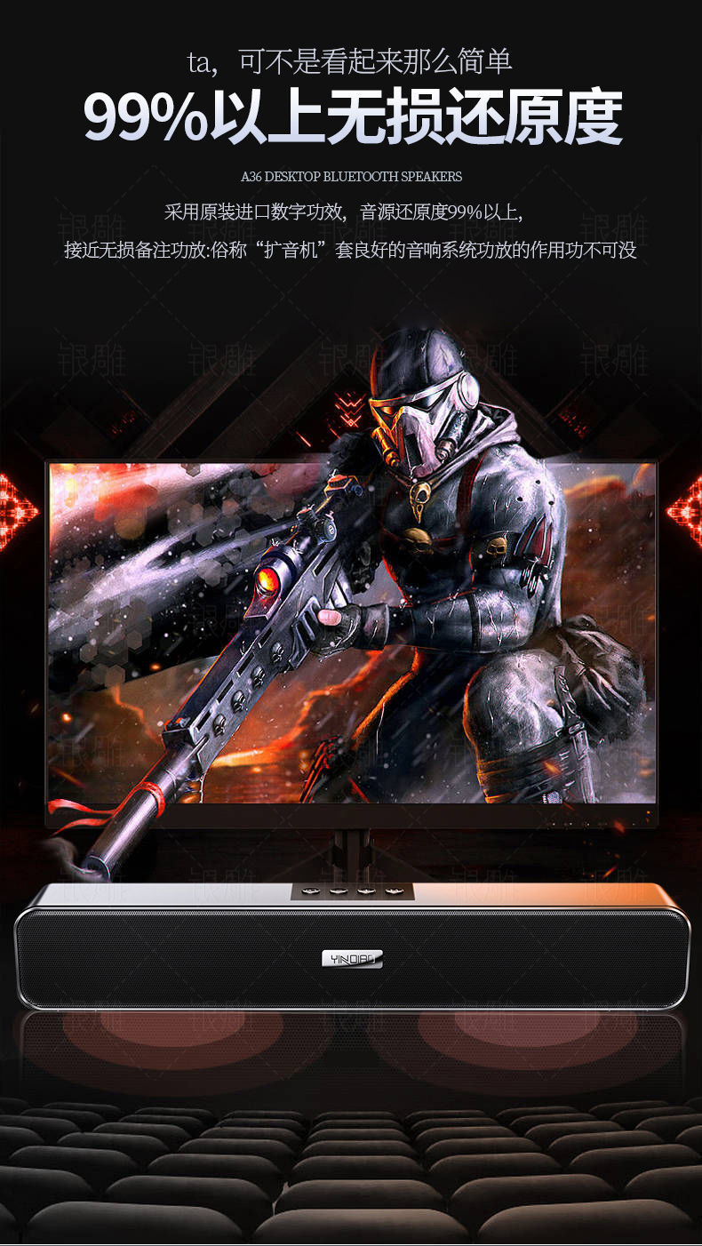 【银雕多媒体电脑音响】笔记本蓝牙桌面长条影音电器重低音炮