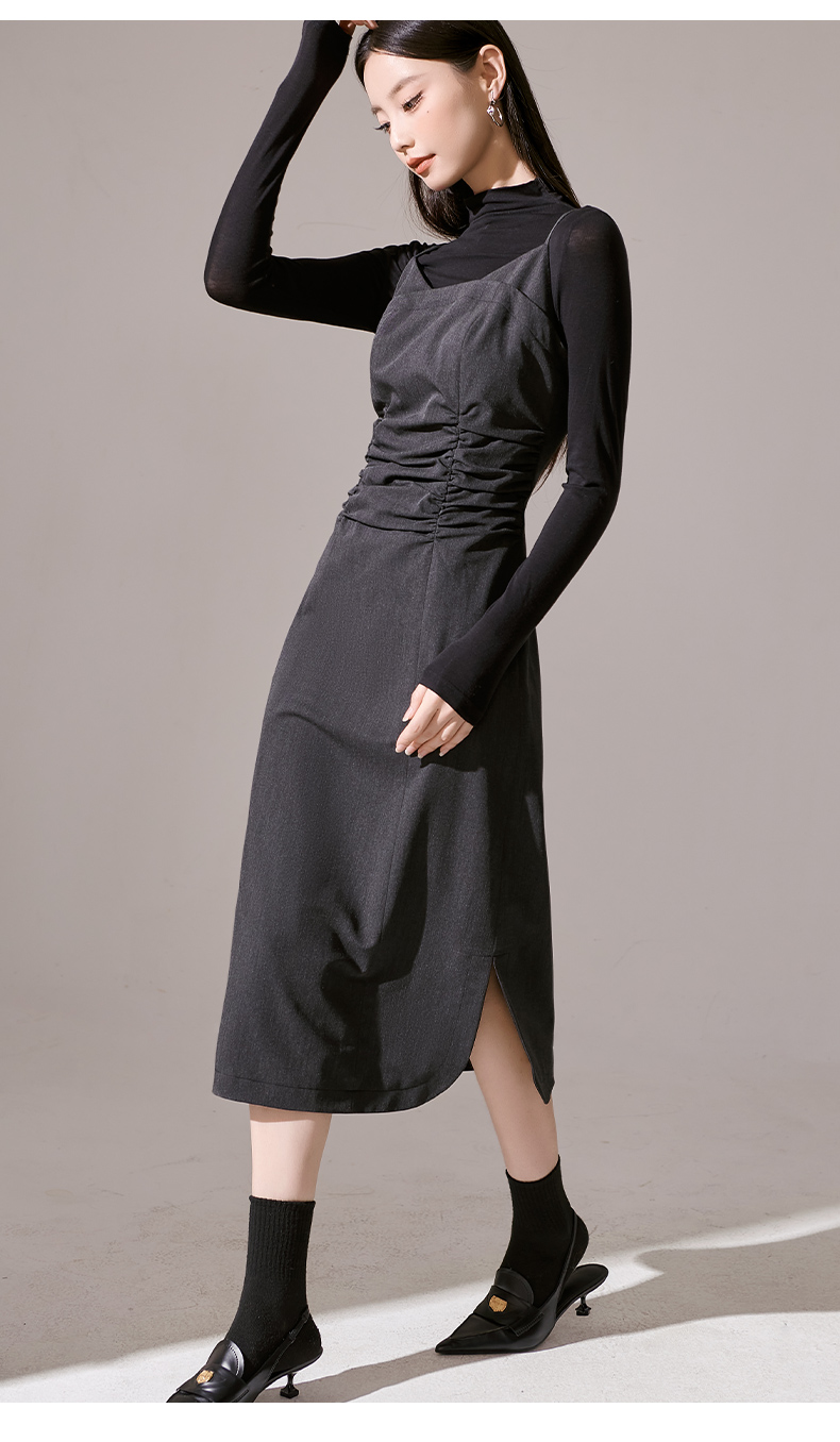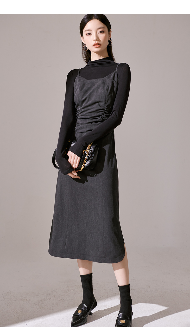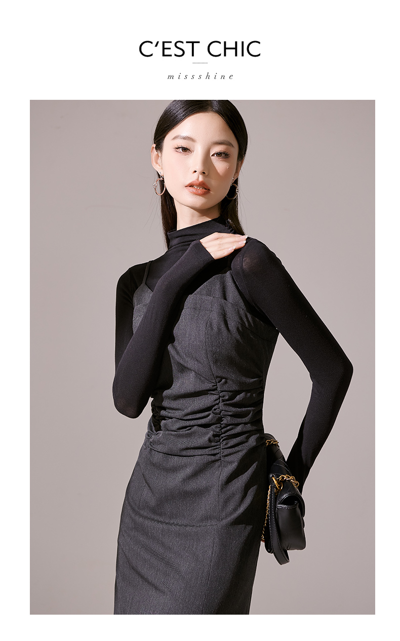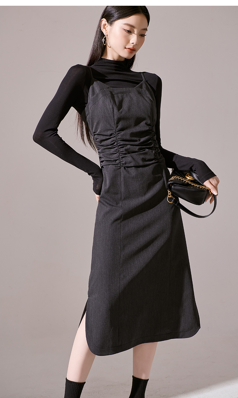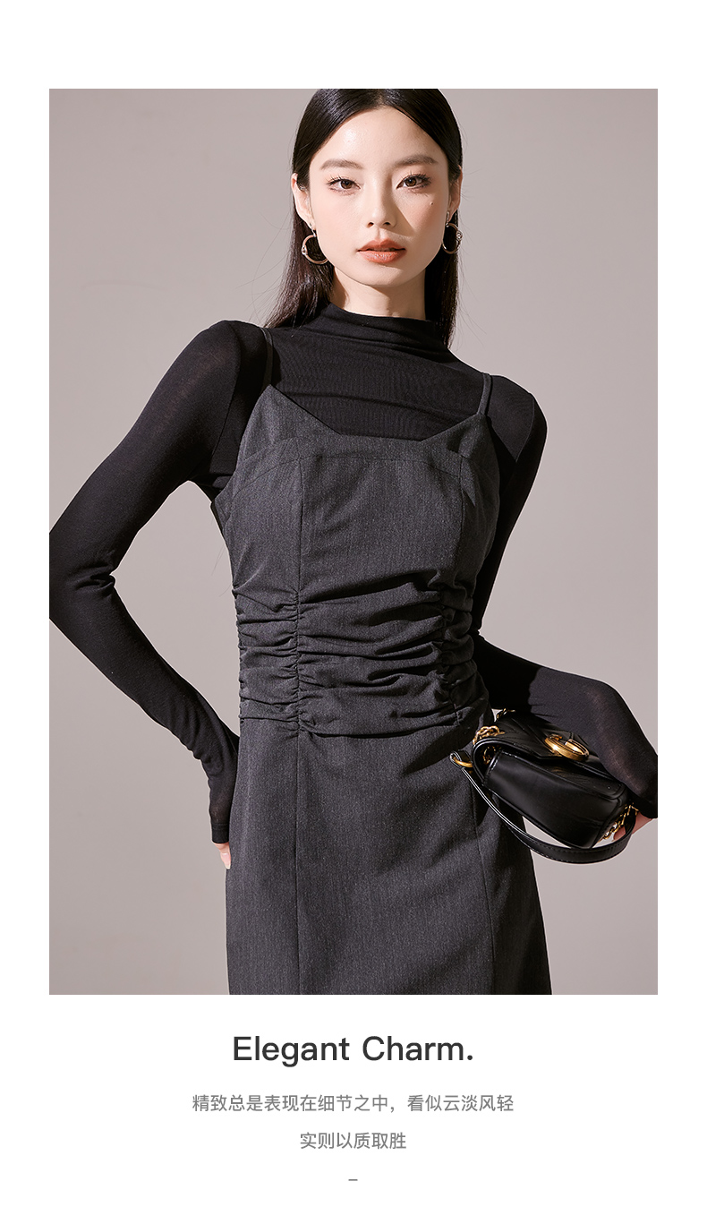 剩S/M/L 芳外新款简约风通勤连衣裙韩版修身吊带裙女8I23CL1132