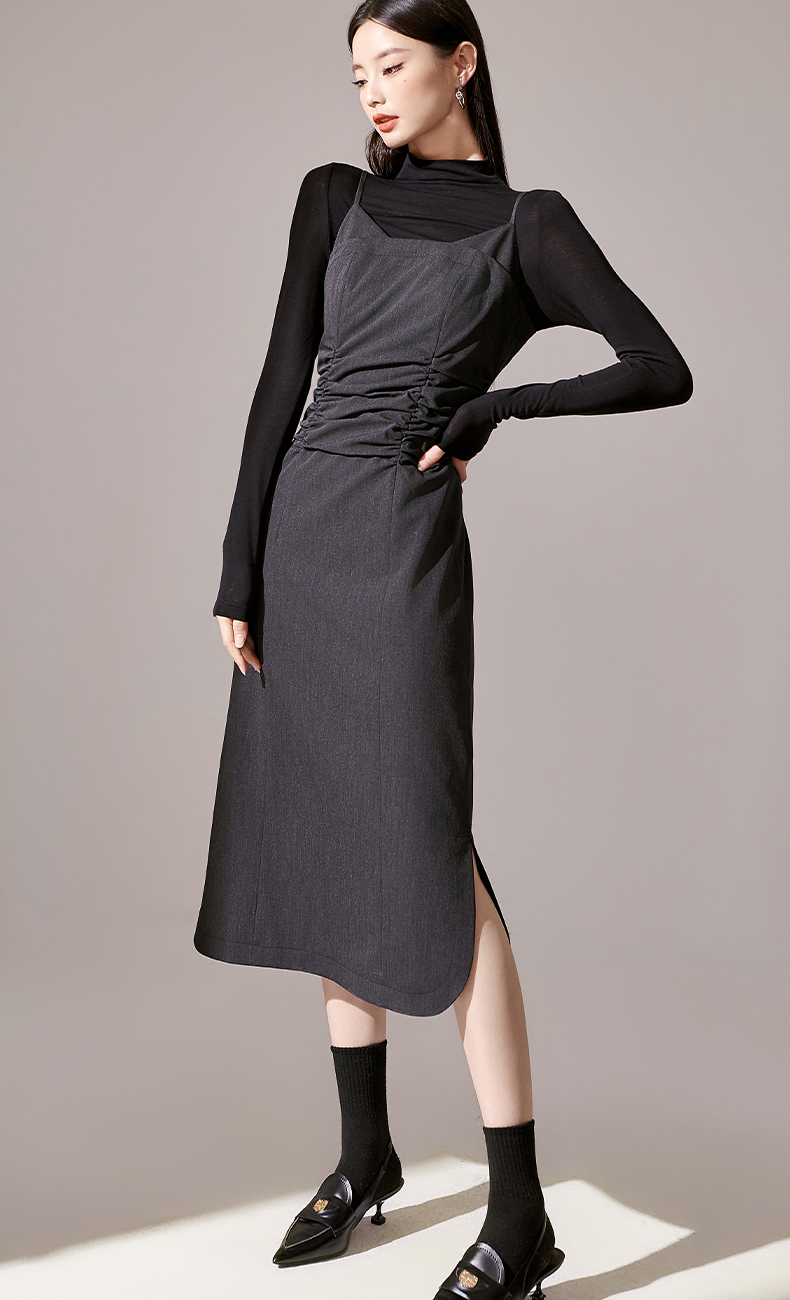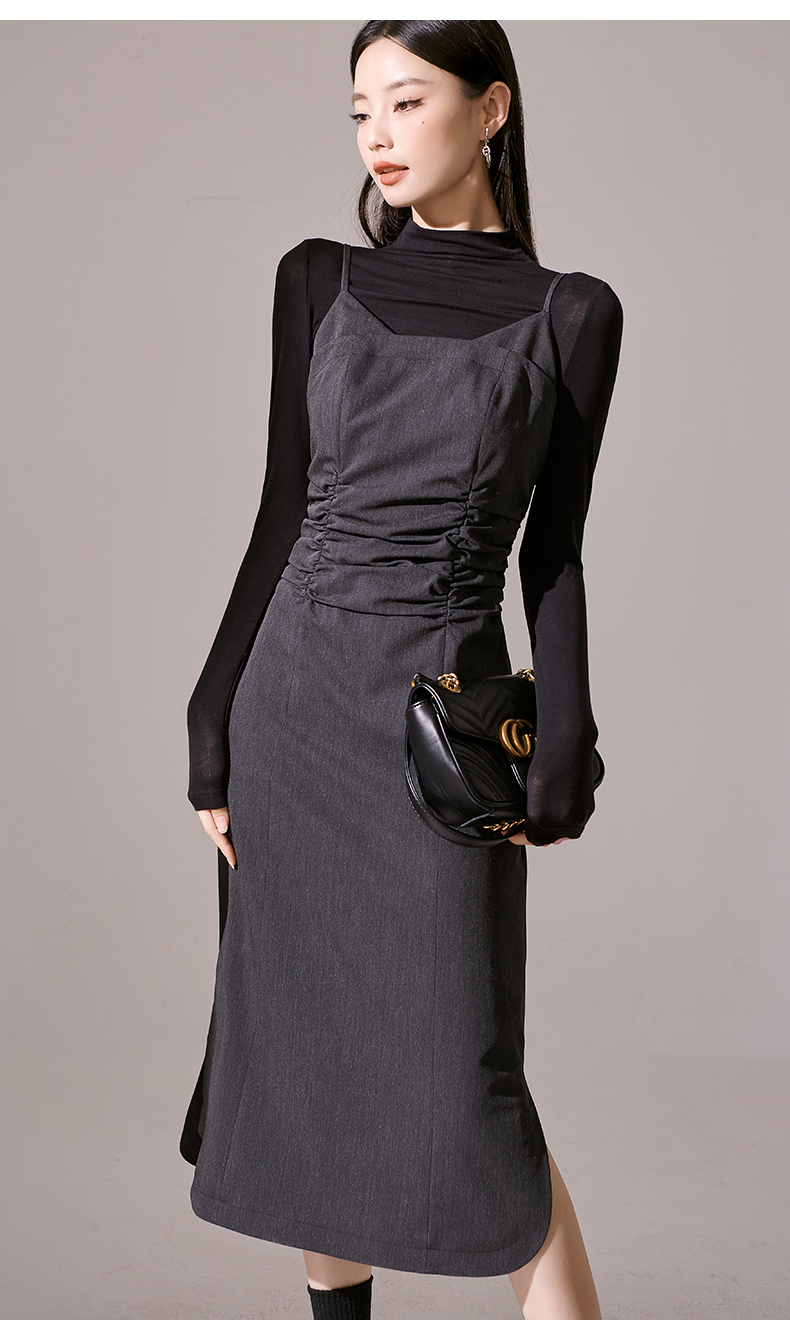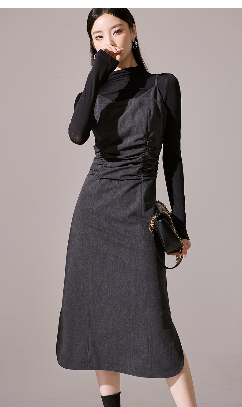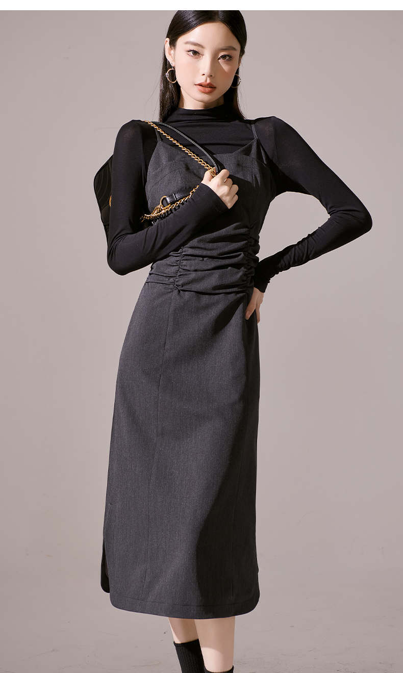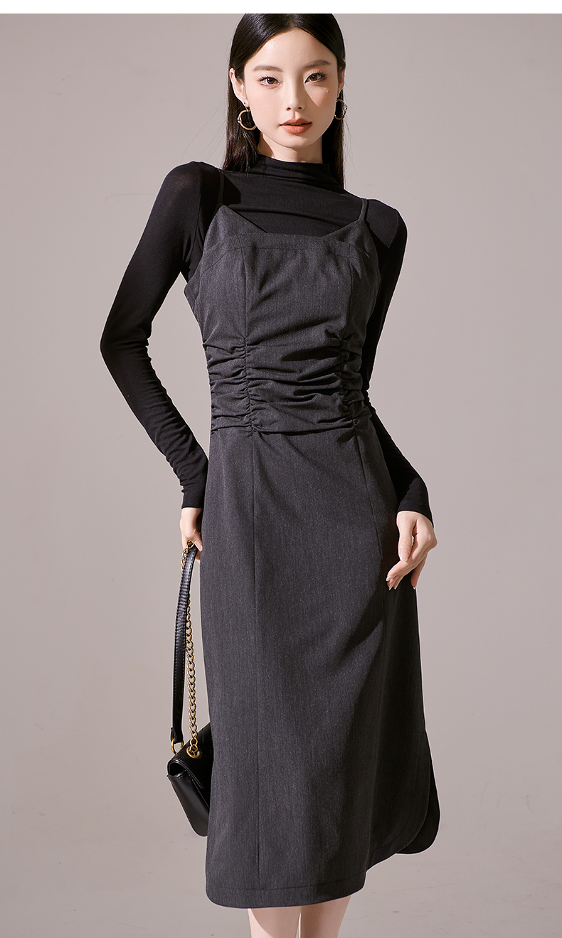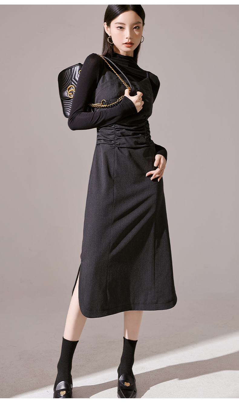 剩S/M/L 芳外新款简约风通勤连衣裙韩版修身吊带裙女8I23CL1132
