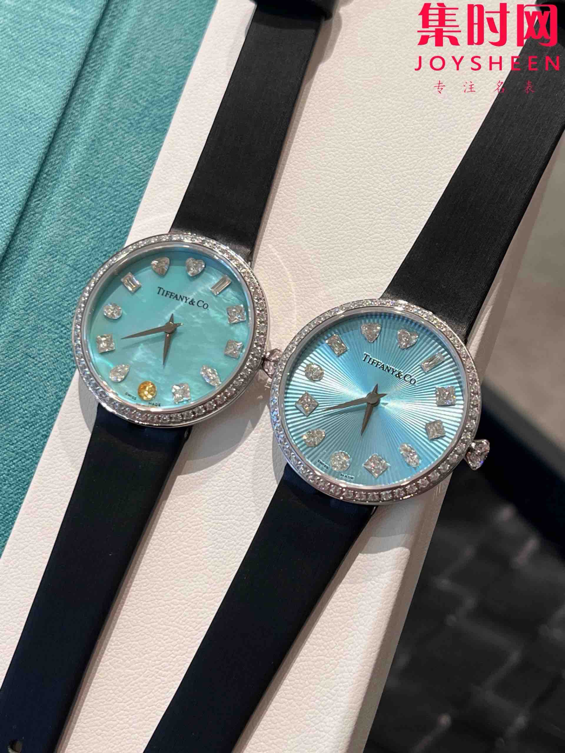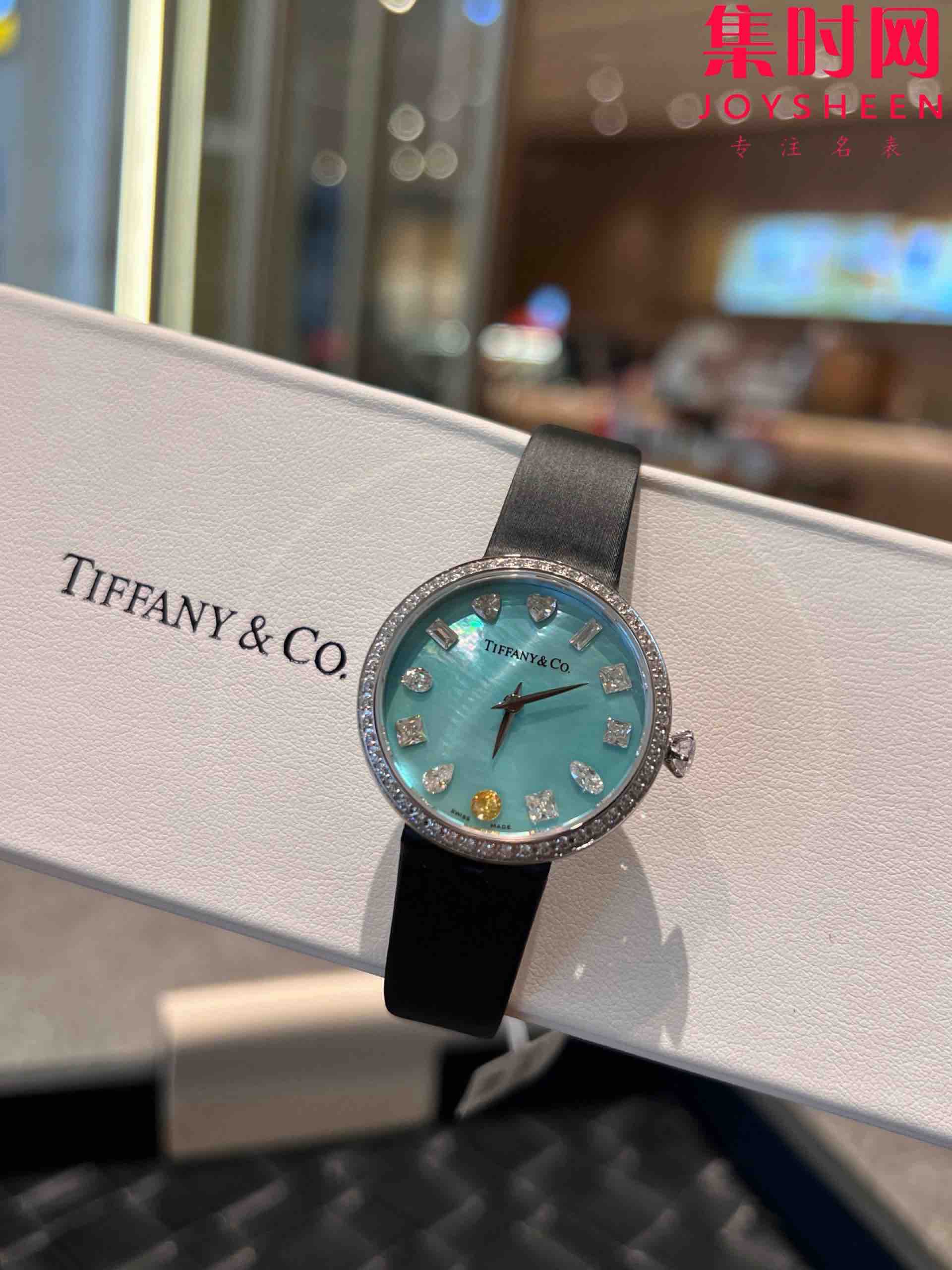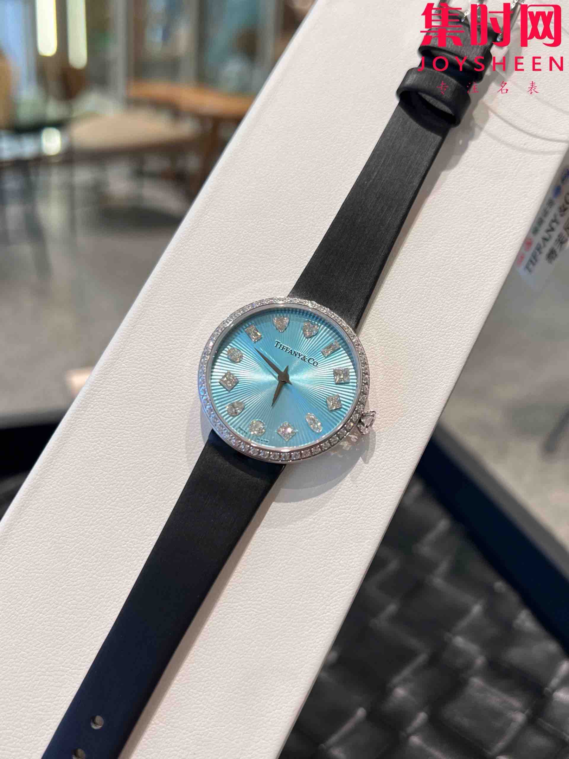 蒂芙尼新款 无始无终 唯有此时此刻 这款女士腕表的表盘设计灵感源自20世纪六七十年代的一系列蒂芙尼复古广告,每个时标分别镶嵌一颗采用不同切割方式的钻石,圆形漆层表盘点缀有12颗钻石,一次拥有所有精美切割形状的女士奢华手表 高强度蓝宝石玻璃镜面 搭配全新进口石英机芯 表壳尺寸32mm