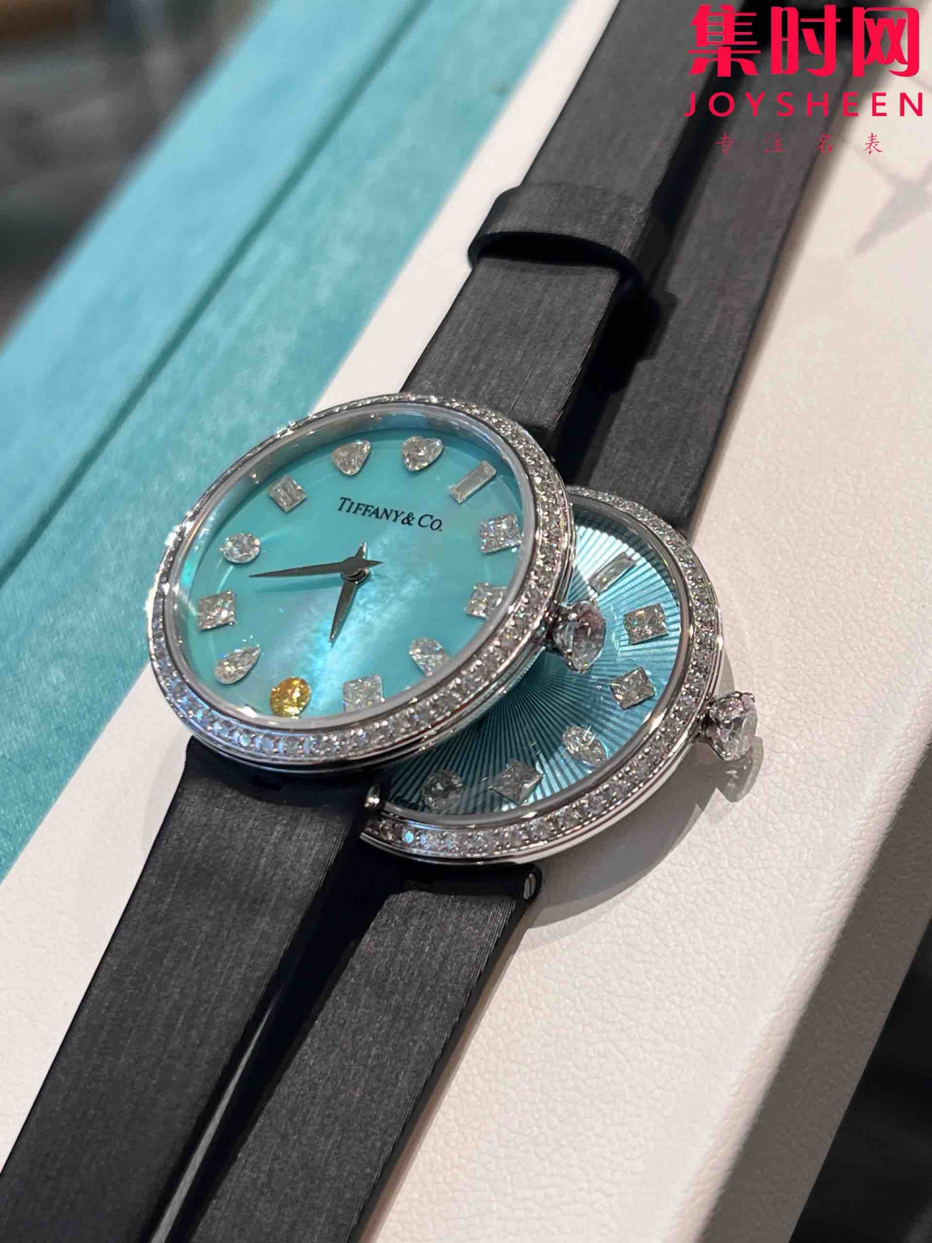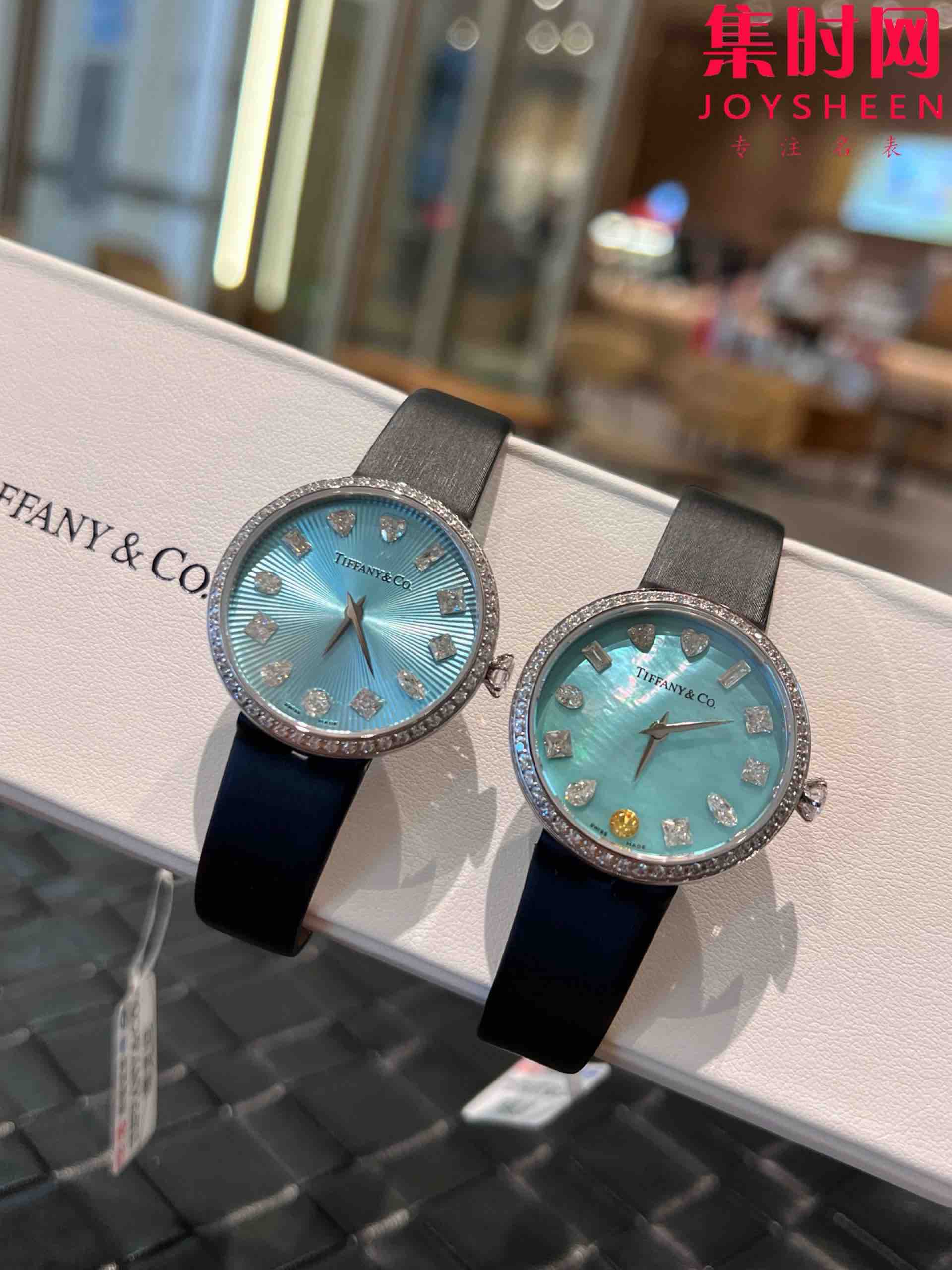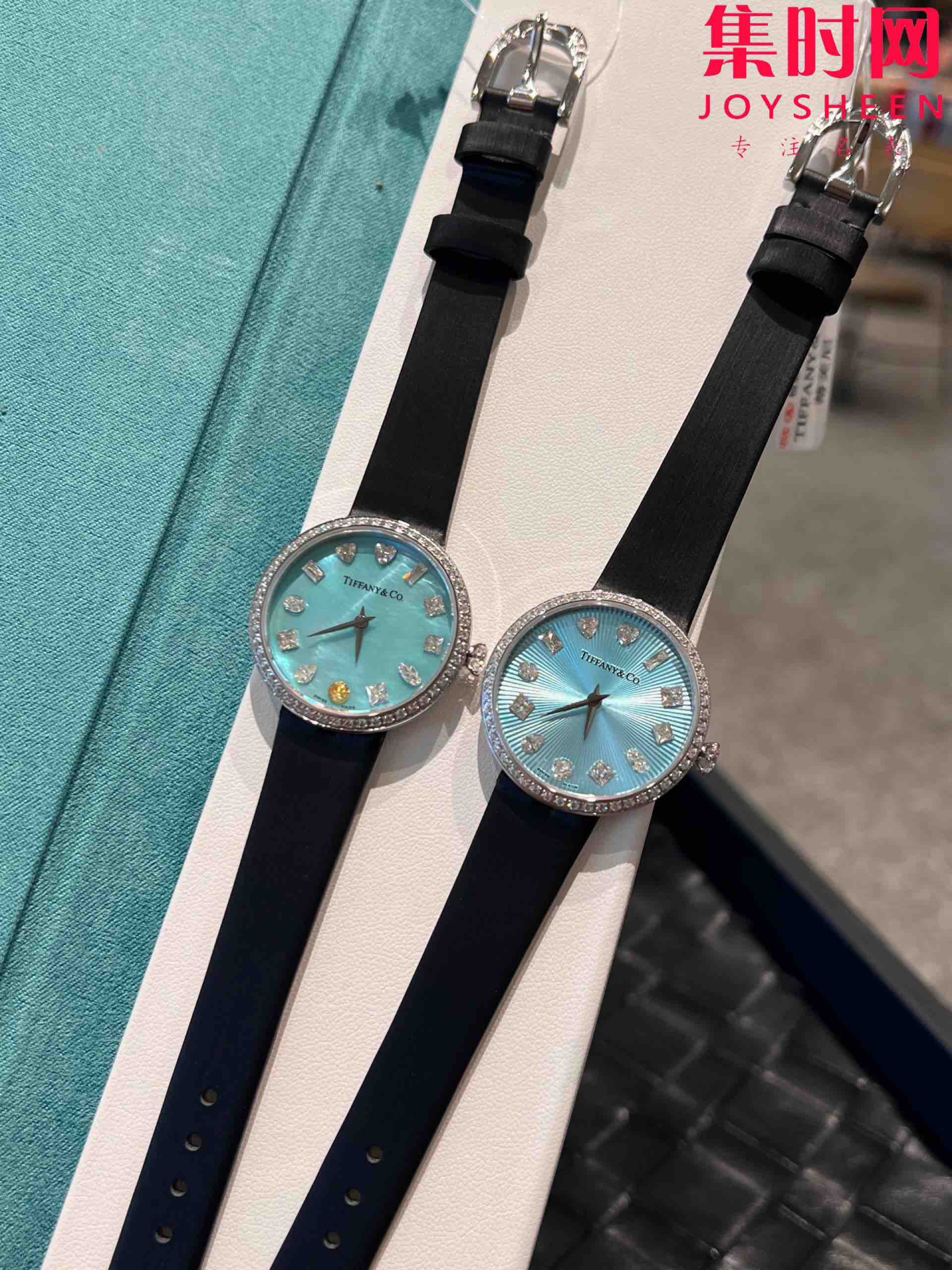 蒂芙尼新款 无始无终 唯有此时此刻 这款女士腕表的表盘设计灵感源自20世纪六七十年代的一系列蒂芙尼复古广告,每个时标分别镶嵌一颗采用不同切割方式的钻石,圆形漆层表盘点缀有12颗钻石,一次拥有所有精美切割形状的女士奢华手表 高强度蓝宝石玻璃镜面 搭配全新进口石英机芯 表壳尺寸32mm