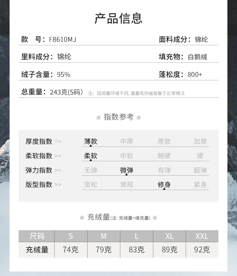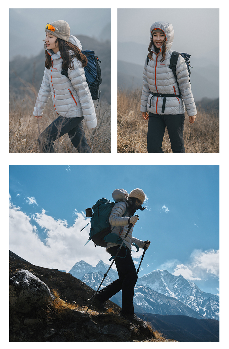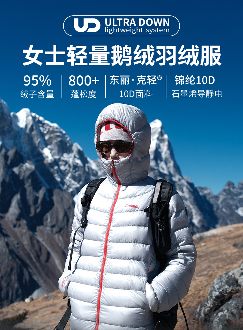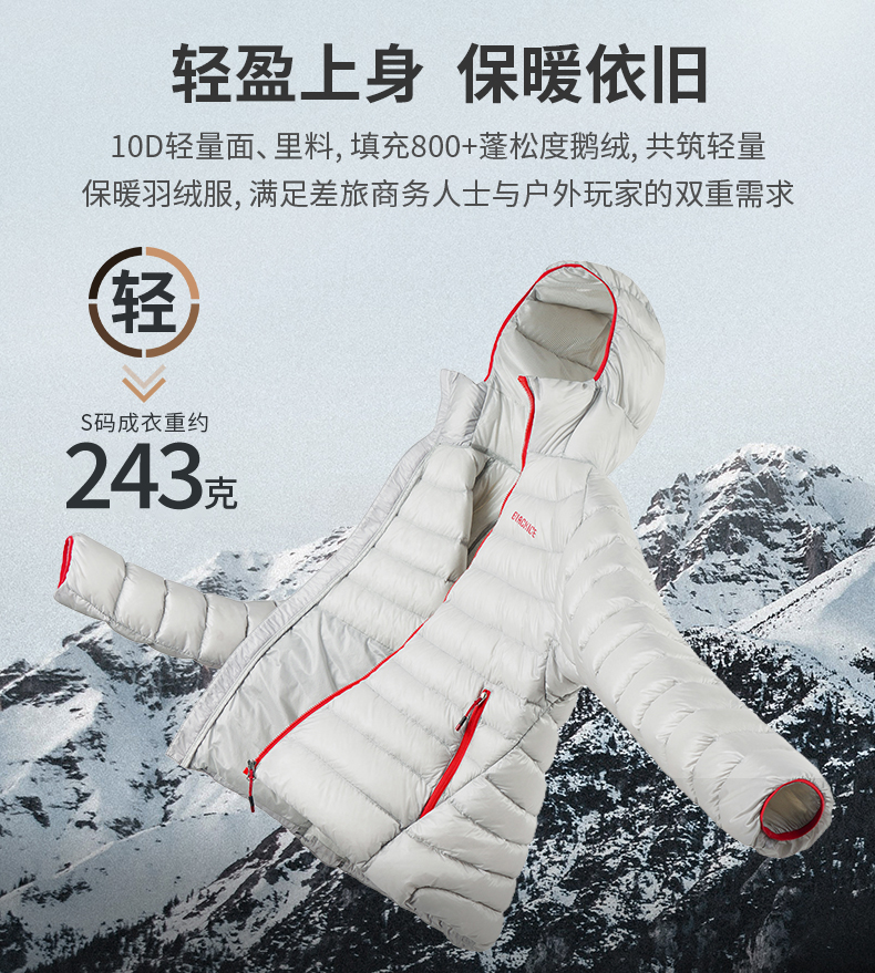 秋冬新款黑冰800蓬户外连帽保暖鹅绒轻薄排骨羽绒服女款F8610
