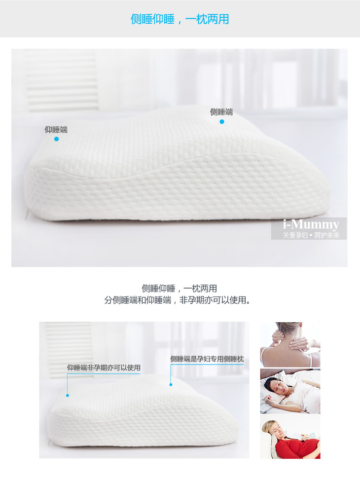 i-Mummy孕妇侧睡枕头慢回弹记忆棉护颈枕舒适透气枕头侧卧孕妇枕