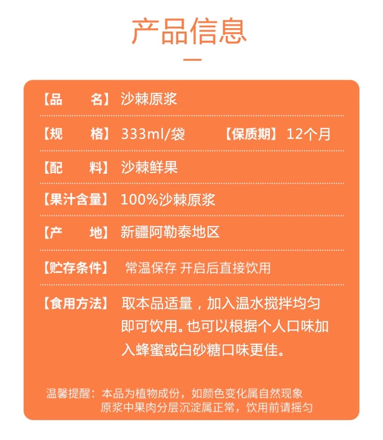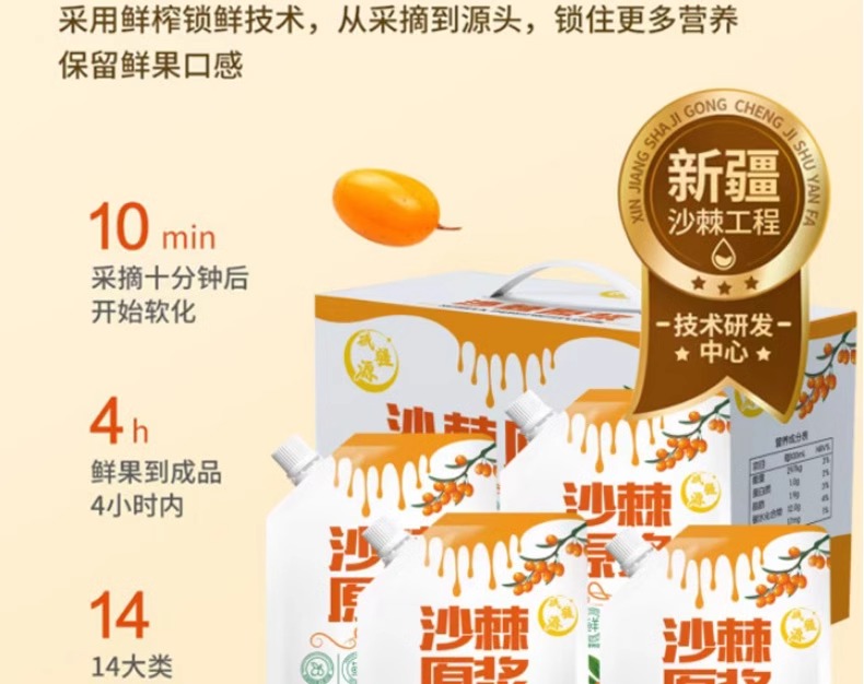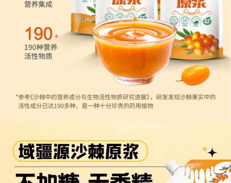 【严选】新疆域疆源沙棘原浆礼盒装 6袋/333ml (厂家直发)