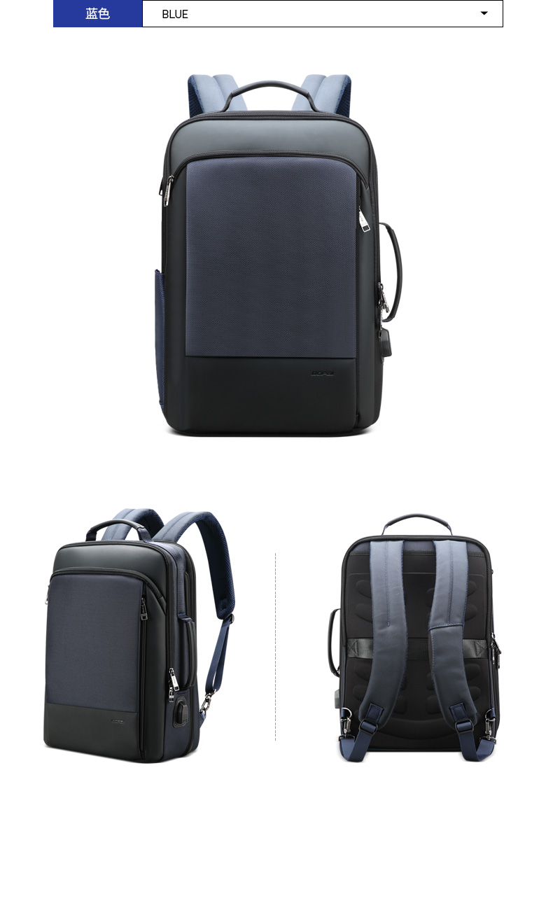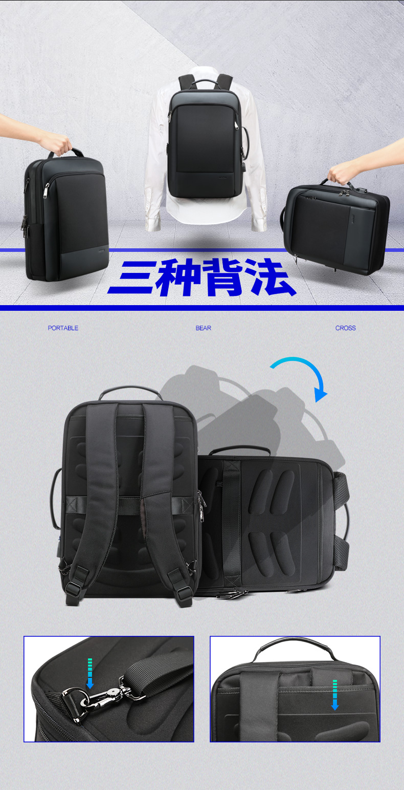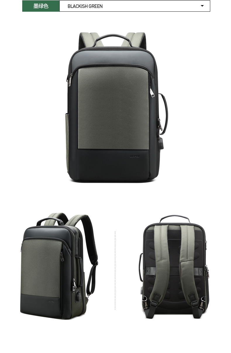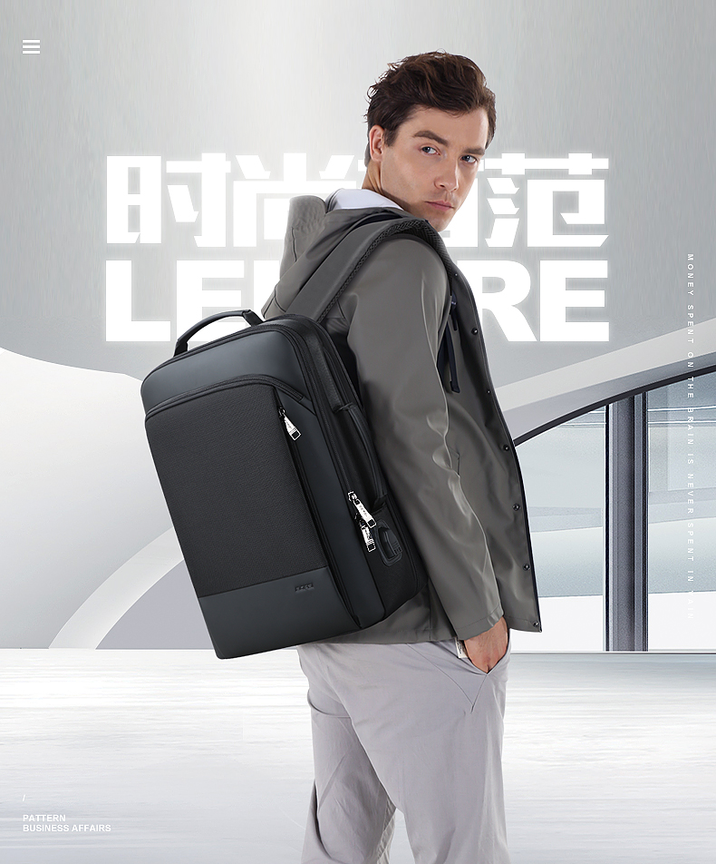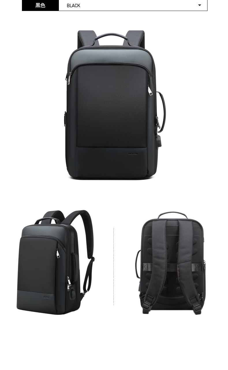 博牌Bopai商务双肩包 背包男充电防盗15英寸电脑包 多功能出差帆布旅行包韩版 黑色61-07311