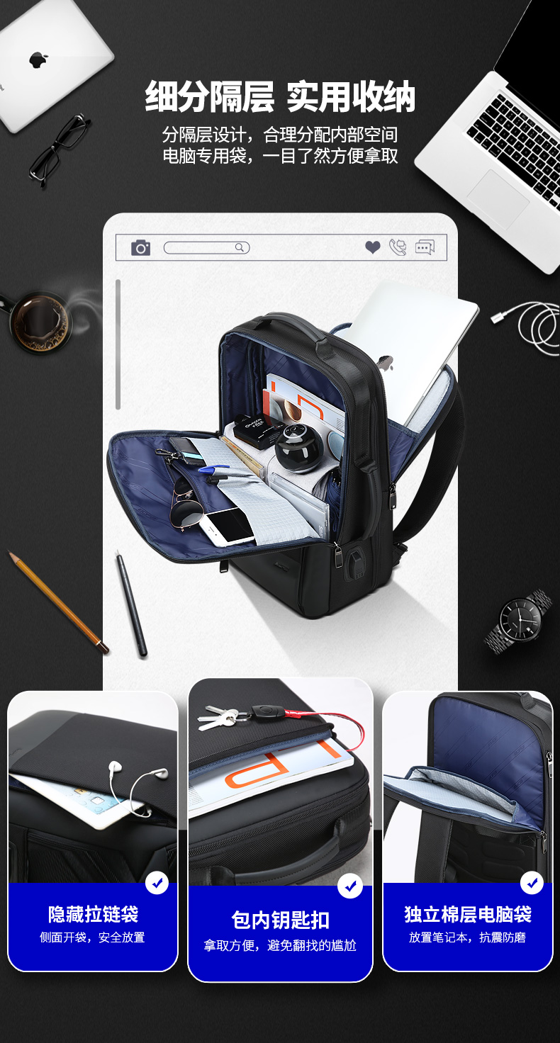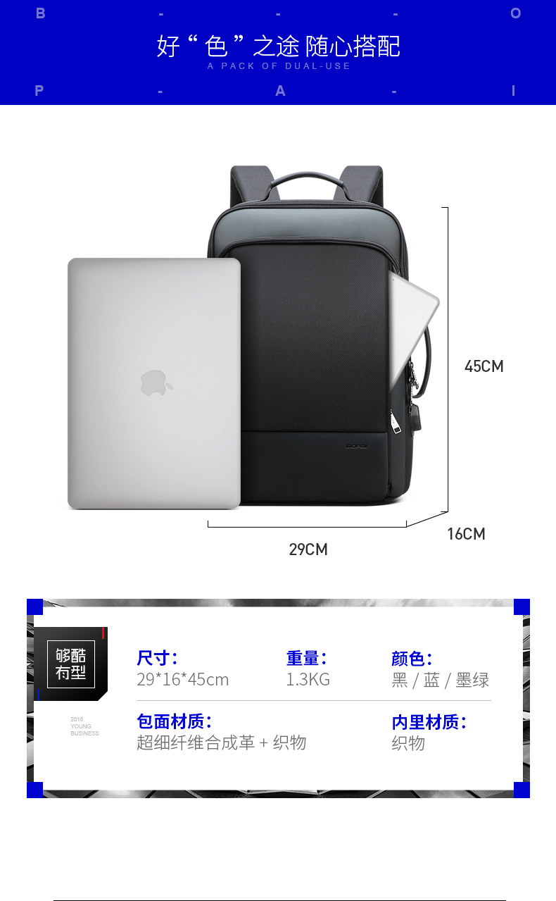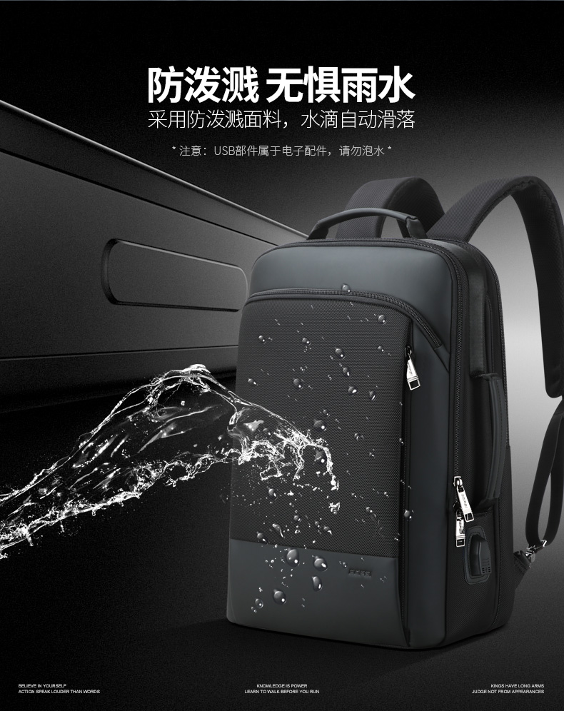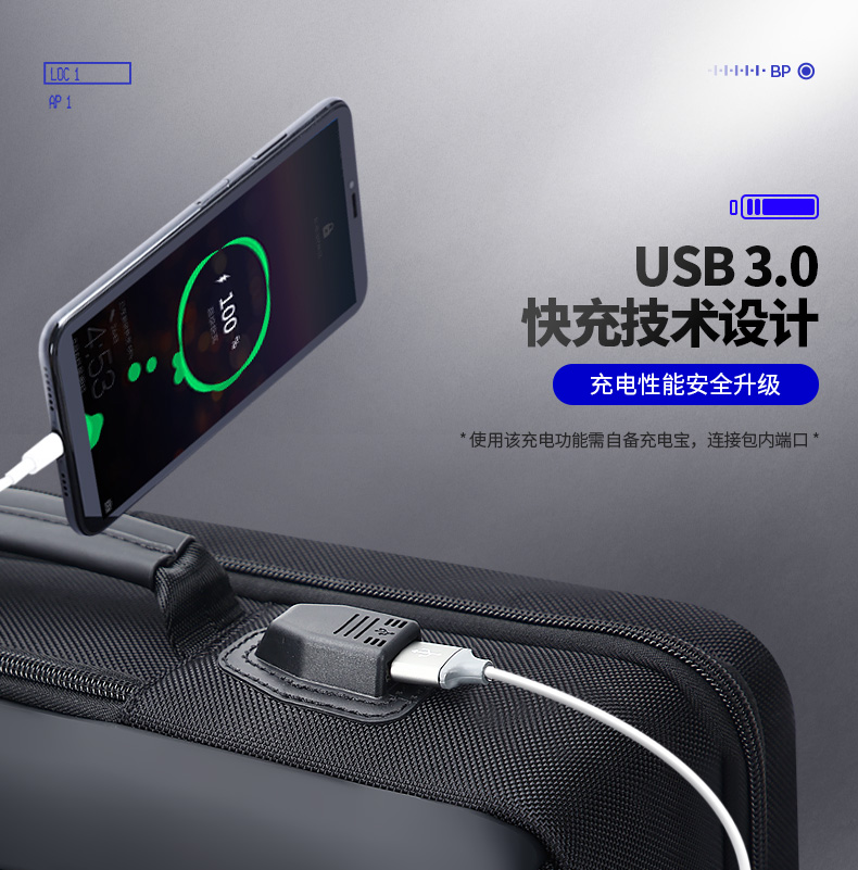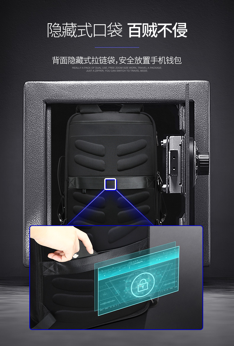 博牌Bopai商务双肩包 背包男充电防盗15英寸电脑包 多功能出差帆布旅行包韩版 黑色61-07311
